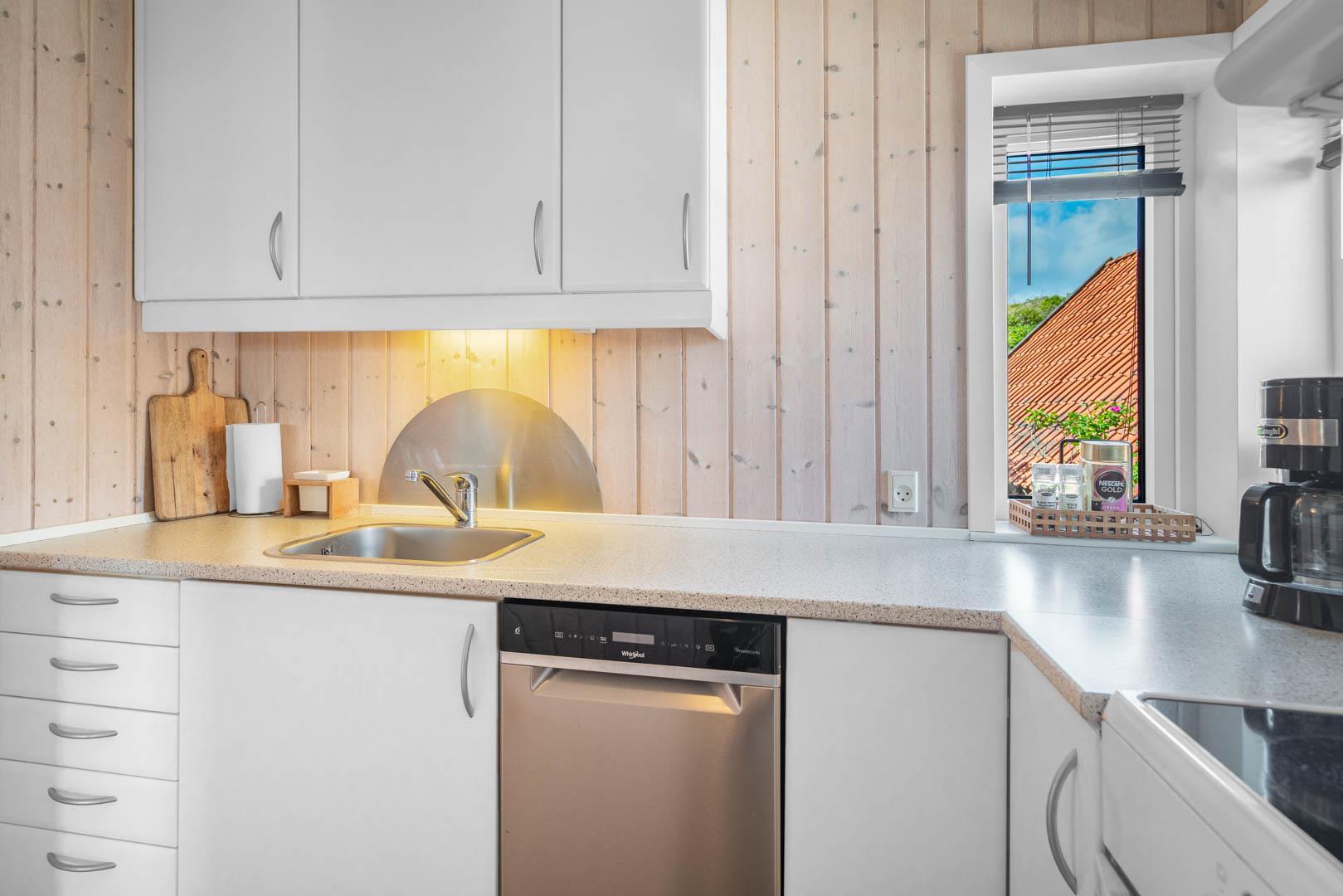 En charmerende perle, centralt beliggende i Henne Strand. Sommerhuset fremstår overalt lyst og venligt. Huset er indrettet med køkken- alrum, stue med brændeovn, bad og soverum i 1. plan.Fra stuen skøn udsigt over klitter og Henne Strand. I underetagen er der et soveværelse med udgang til terrasse. Der er mulighed for opkobling til Chromecast, desuden er der en bluetooth højtaler til rådighed.
