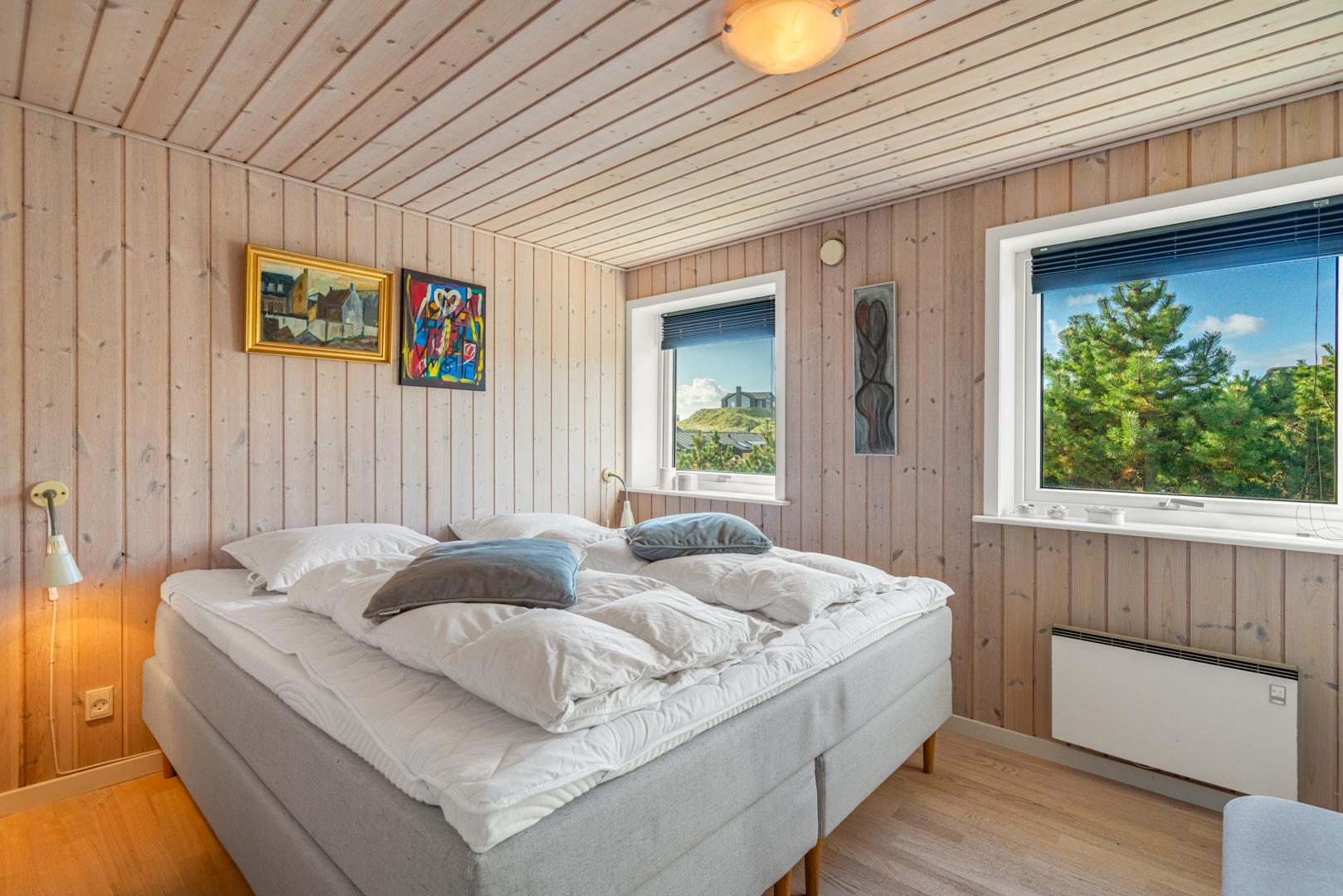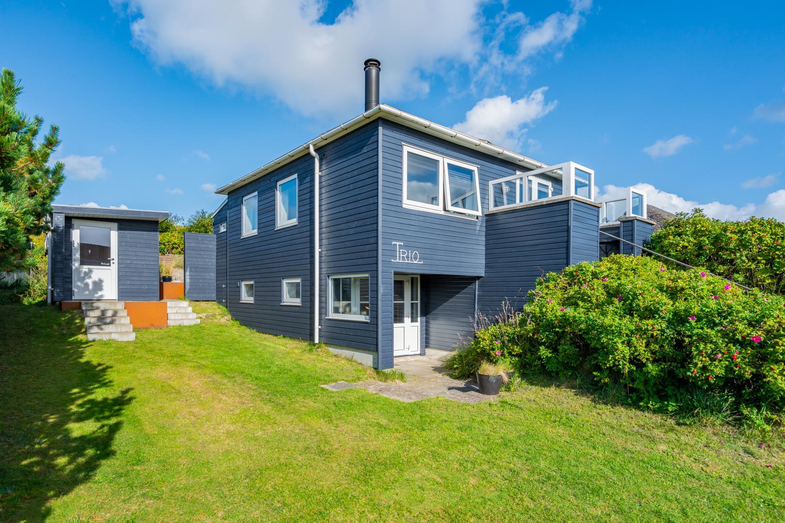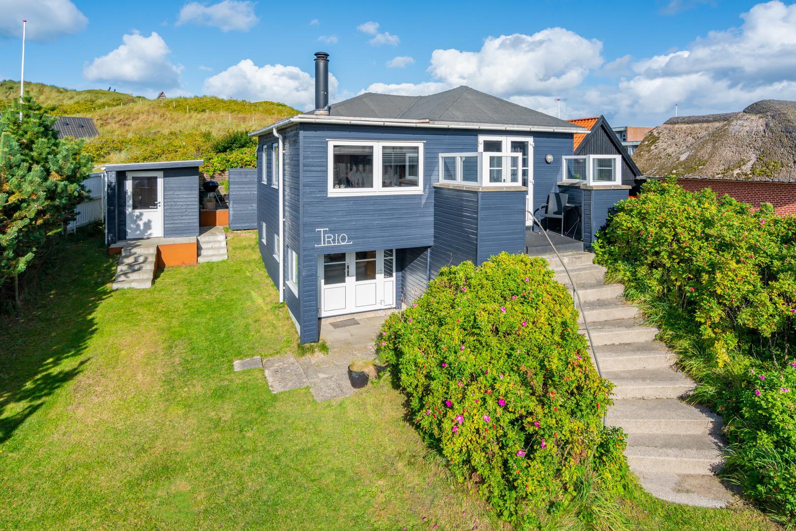 Lyst og venligt sommerhus i Henne Strand med udsigt til klitter og tæt på stranden.