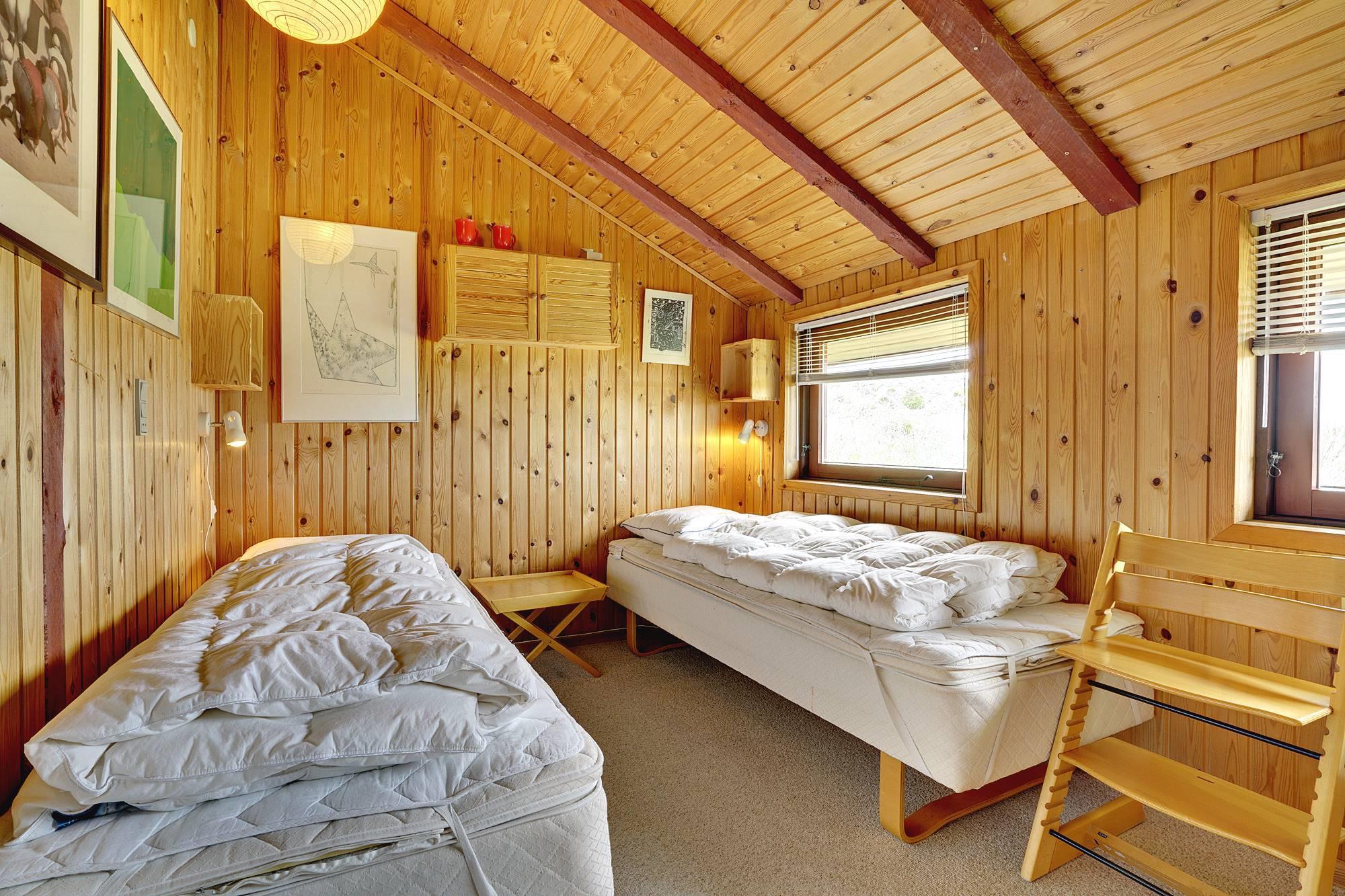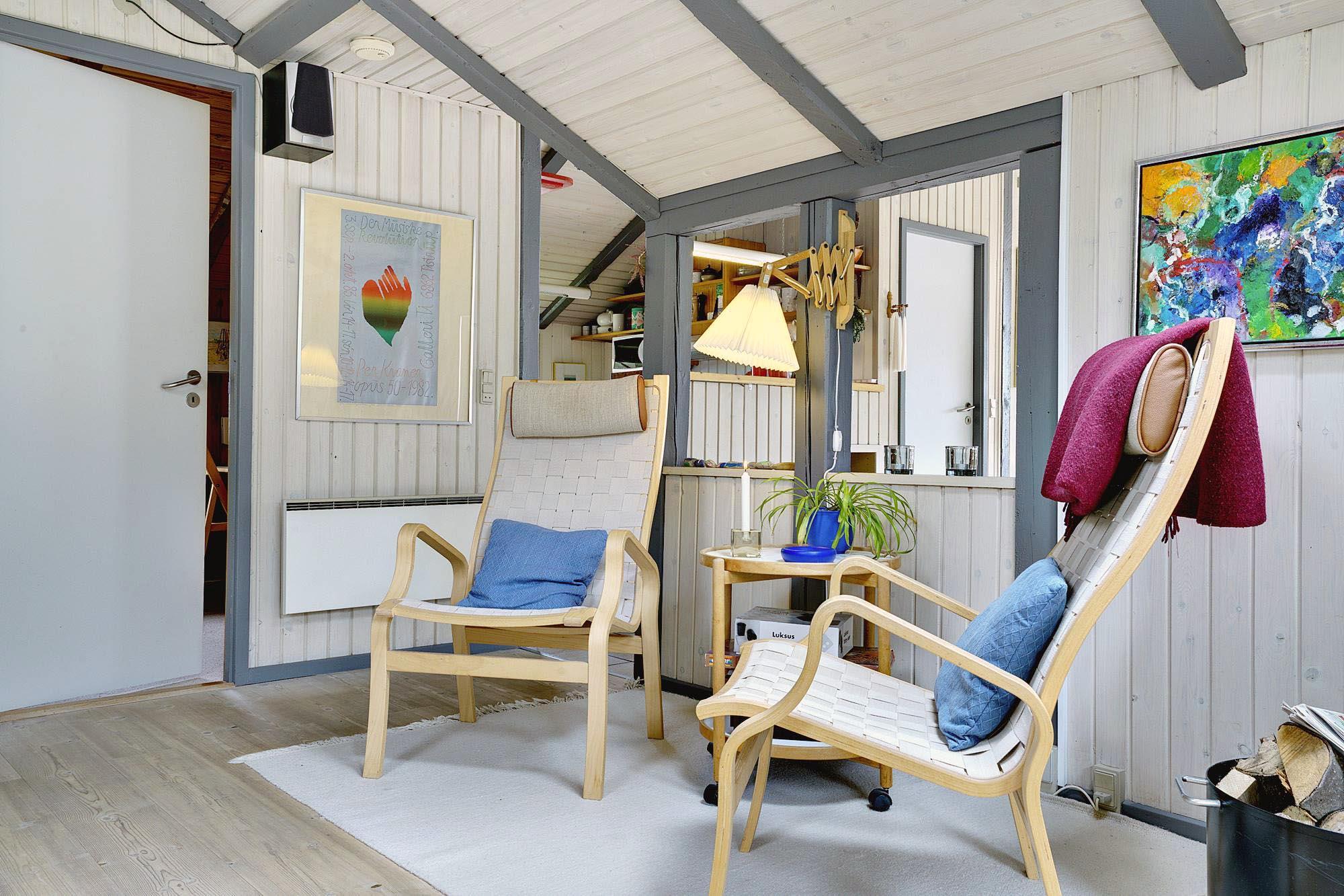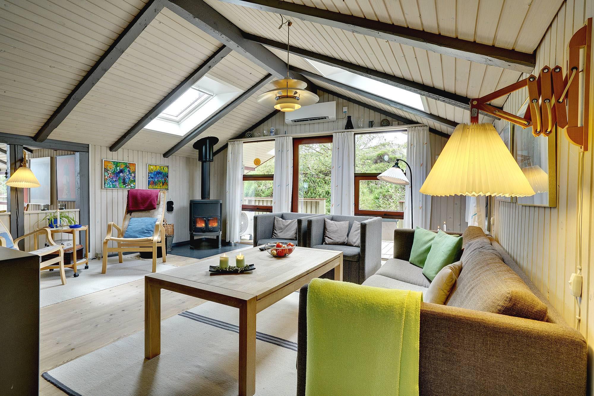 Ein sehr gepflegtes, älteres Ferienhaus, das auf eine Anhöhe gelegen ist. Das Haus verfügt über 3 gute Schlafzimmern, die alle mit guten Schränken ausgestattet sind, und über eine sehr gut ausgestattet Küche. Ein schönes, großes Wohnzimmer wovon man Zugang zu einer zum Teil überdachten Terrasse hat. Das Bad hat einen neuen Fliesenboden, eine neue Duschkabine und eine grosse Sauna.