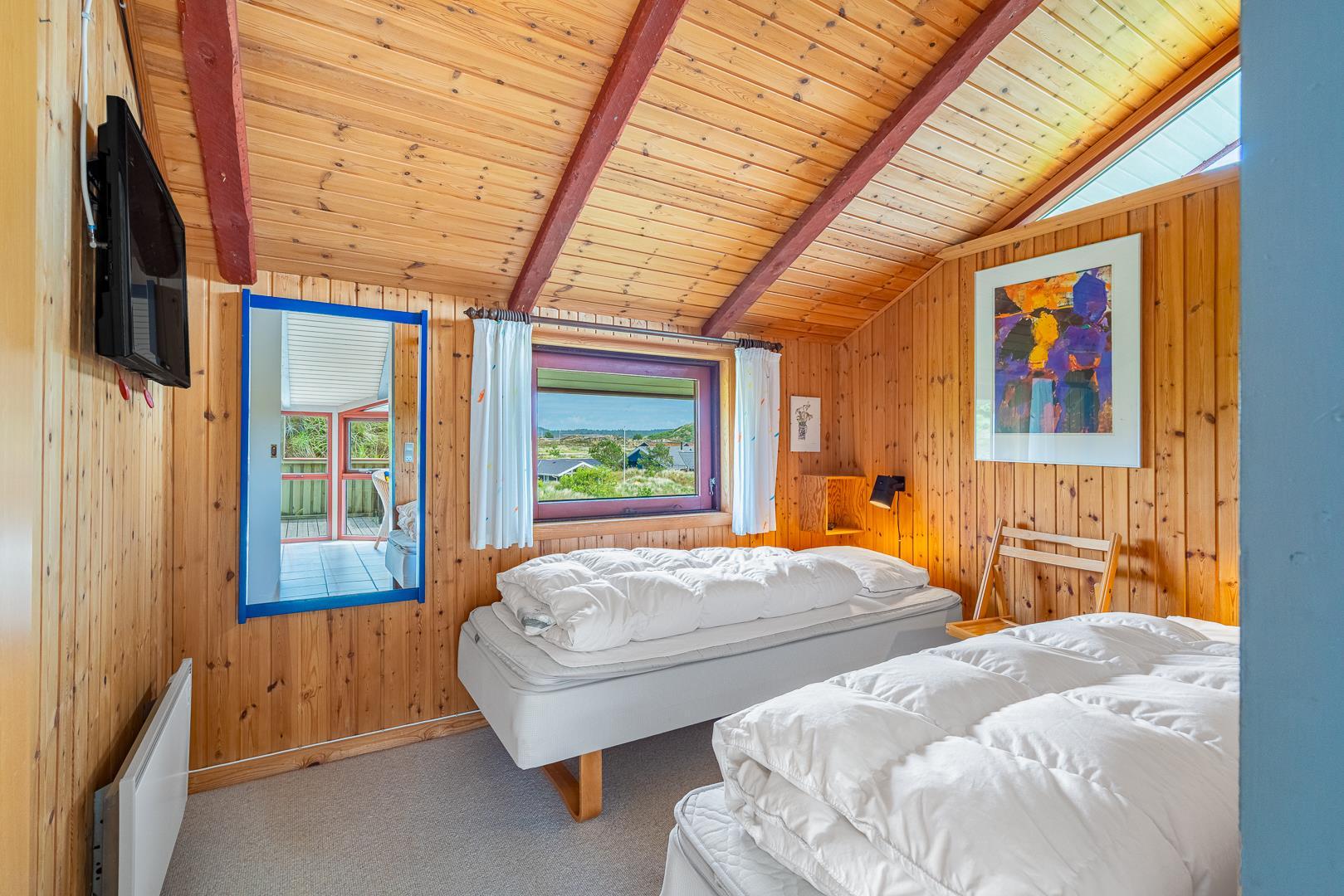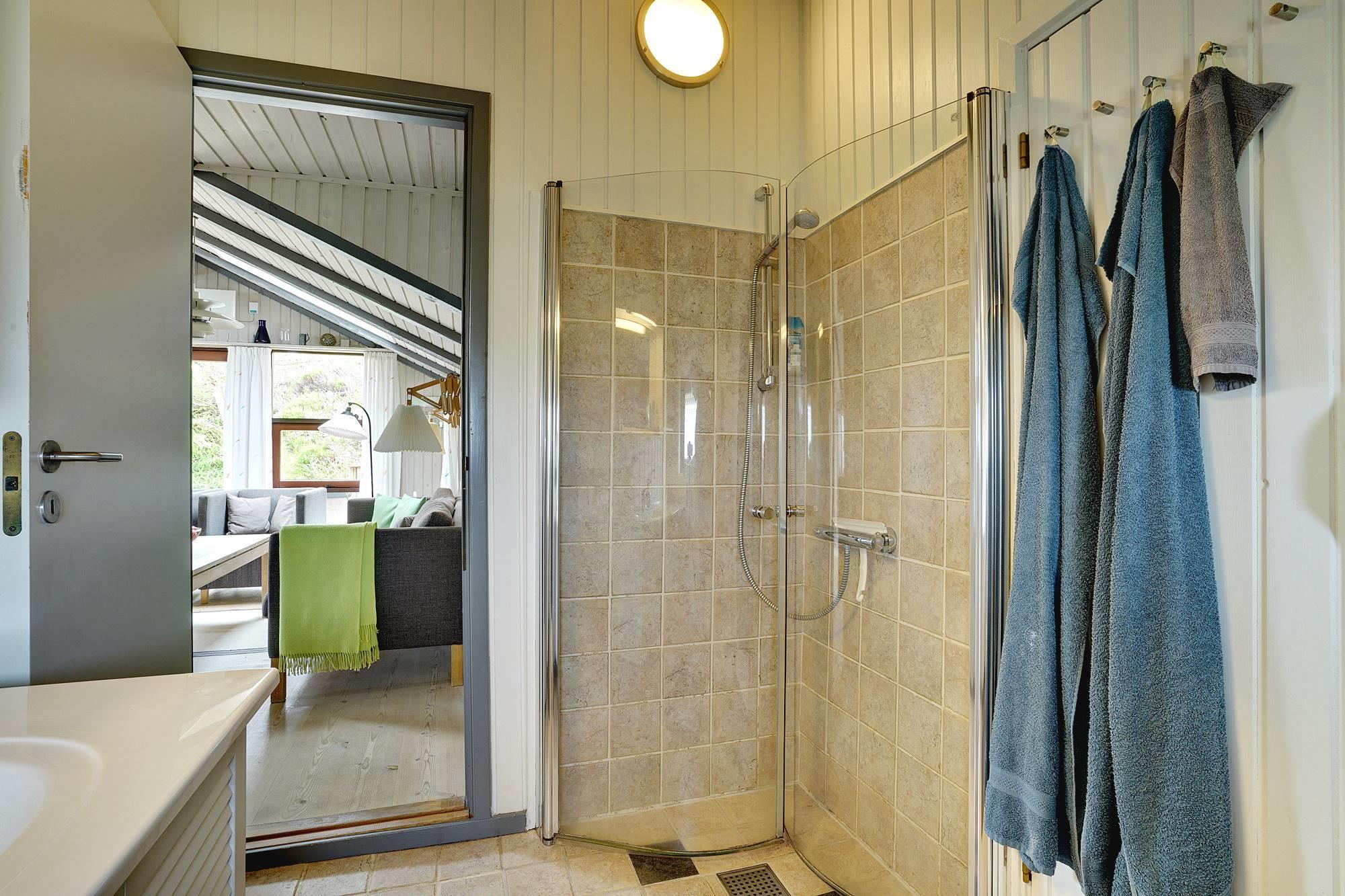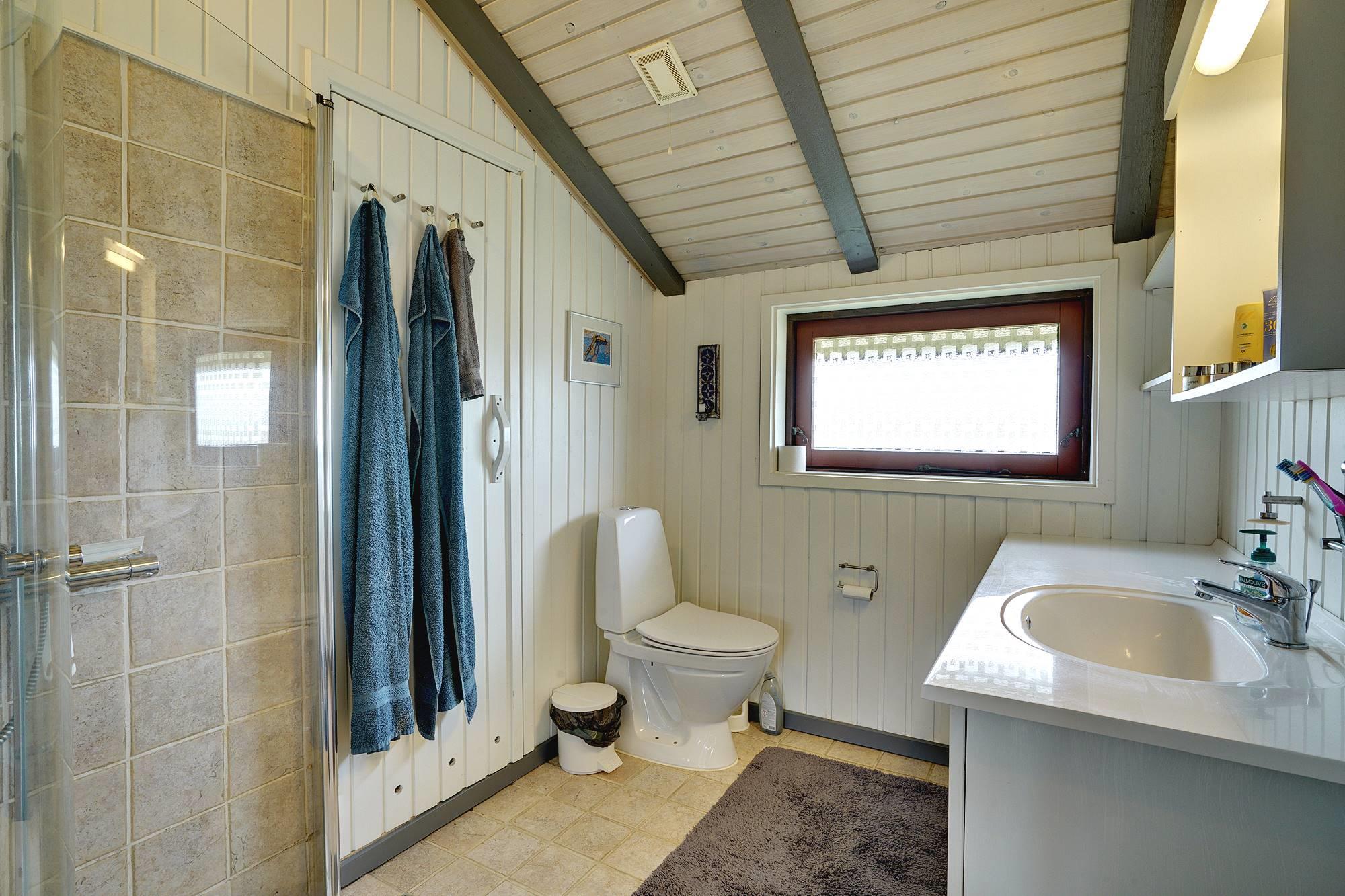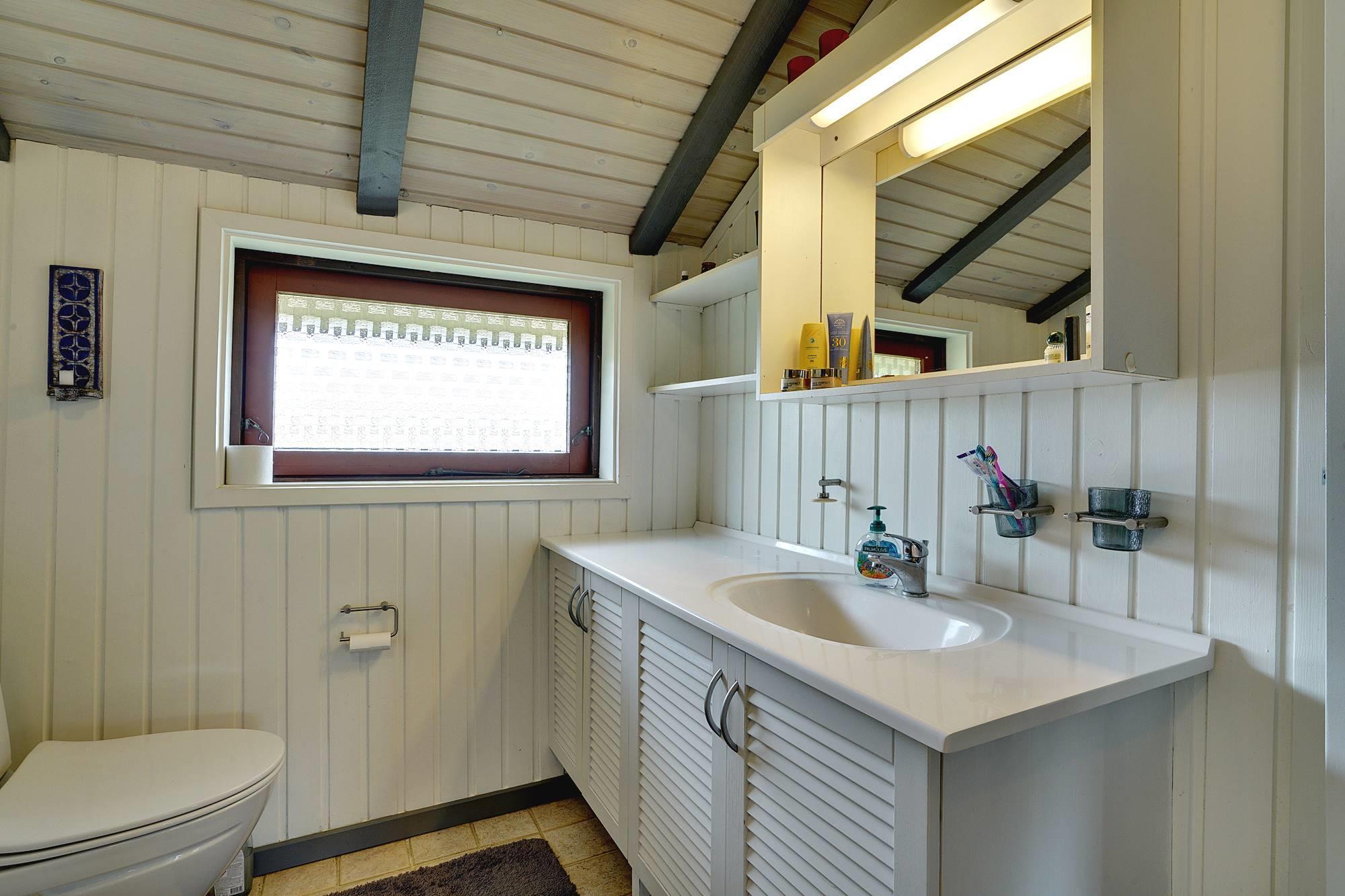 Ein sehr gepflegtes, älteres Ferienhaus, das auf eine Anhöhe gelegen ist. Das Haus verfügt über 3 gute Schlafzimmern, die alle mit guten Schränken ausgestattet sind, und über eine sehr gut ausgestattet Küche. Ein schönes, großes Wohnzimmer wovon man Zugang zu einer zum Teil überdachten Terrasse hat. Das Bad hat einen neuen Fliesenboden, eine neue Duschkabine und eine grosse Sauna.