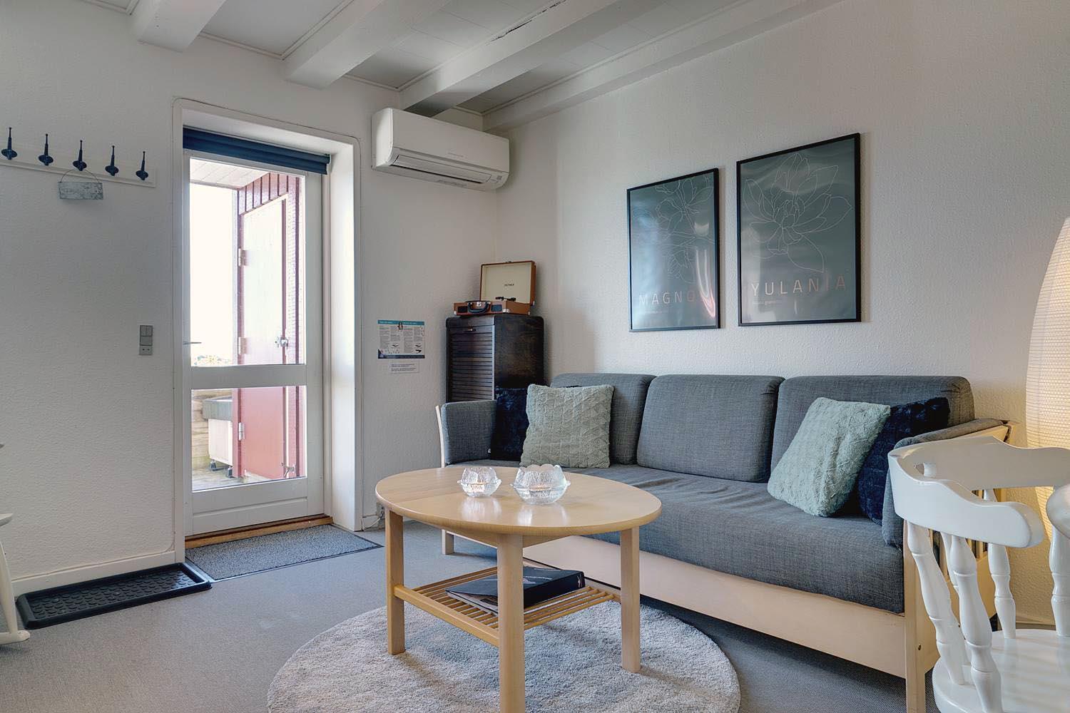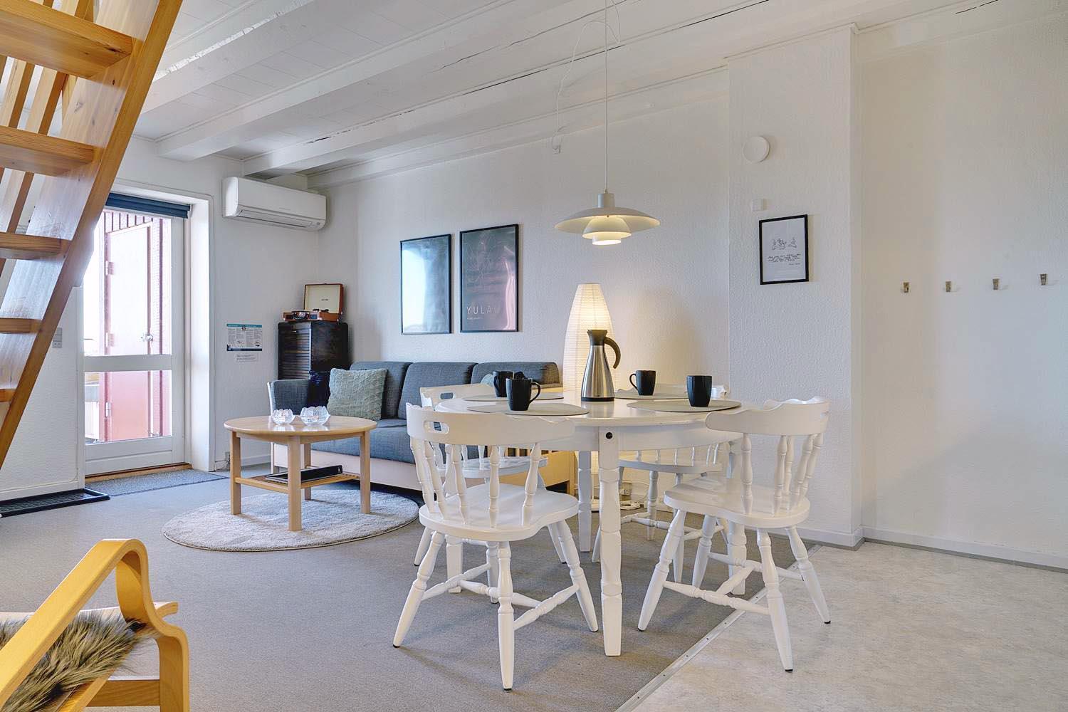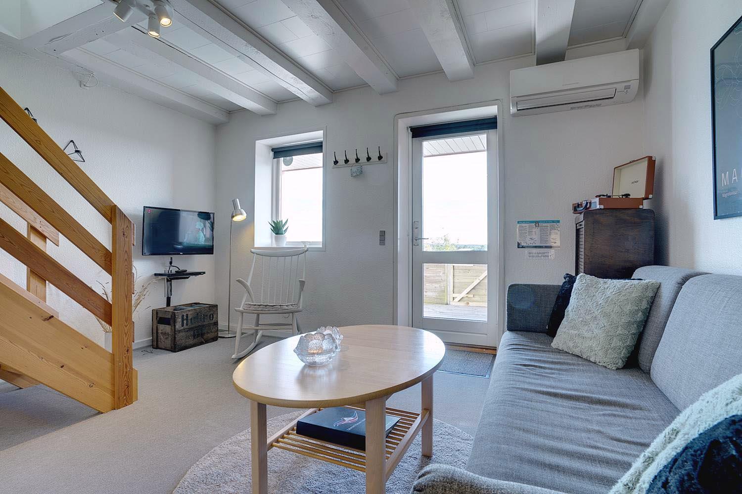Lejligheden er fordelt over to etager og byder på gode, komfortable møbler i stuen, som indbyder til afslapning efter en dag i naturen.