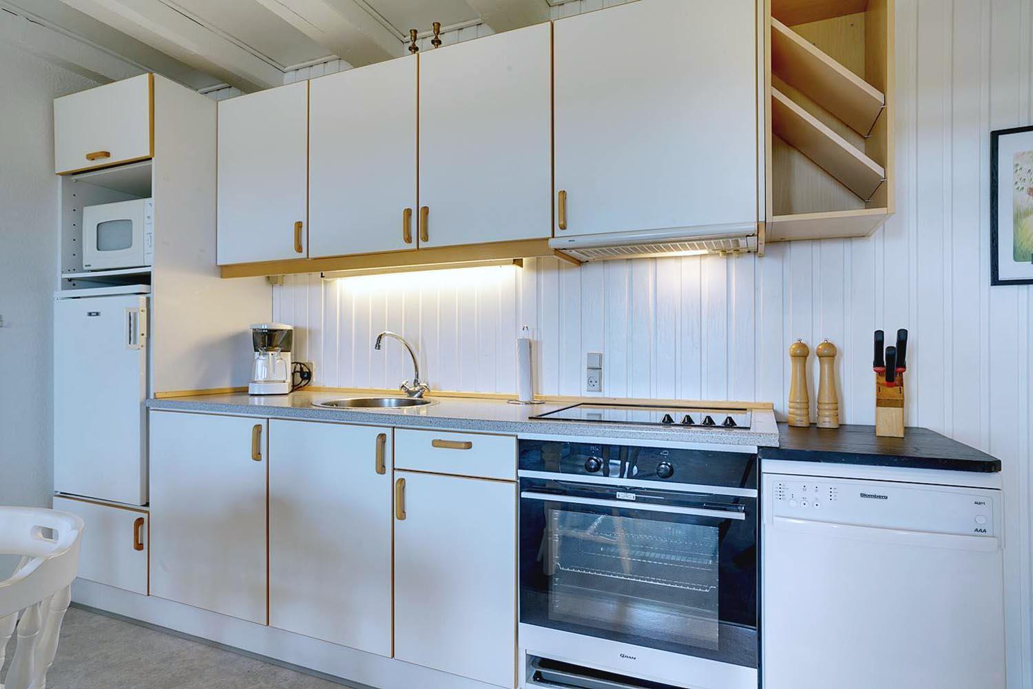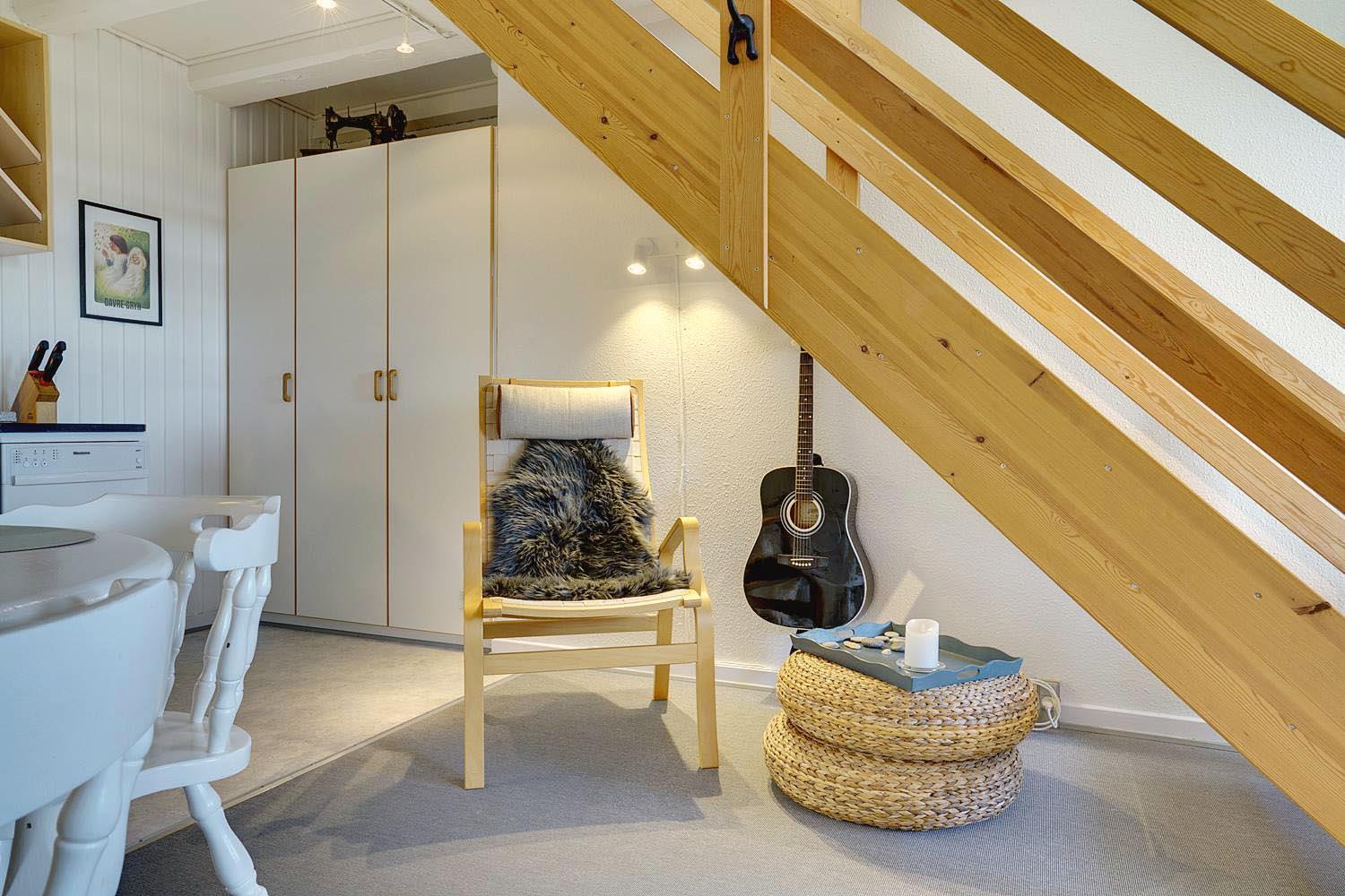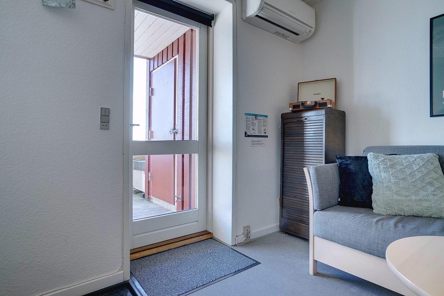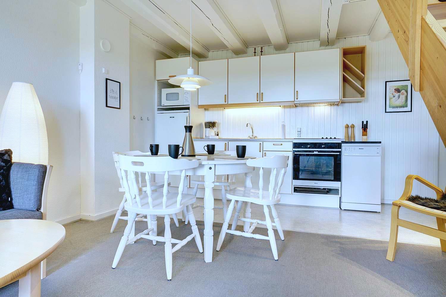 Lejligheden er fordelt over to etager og byder på gode, komfortable møbler i stuen, som indbyder til afslapning efter en dag i naturen.
