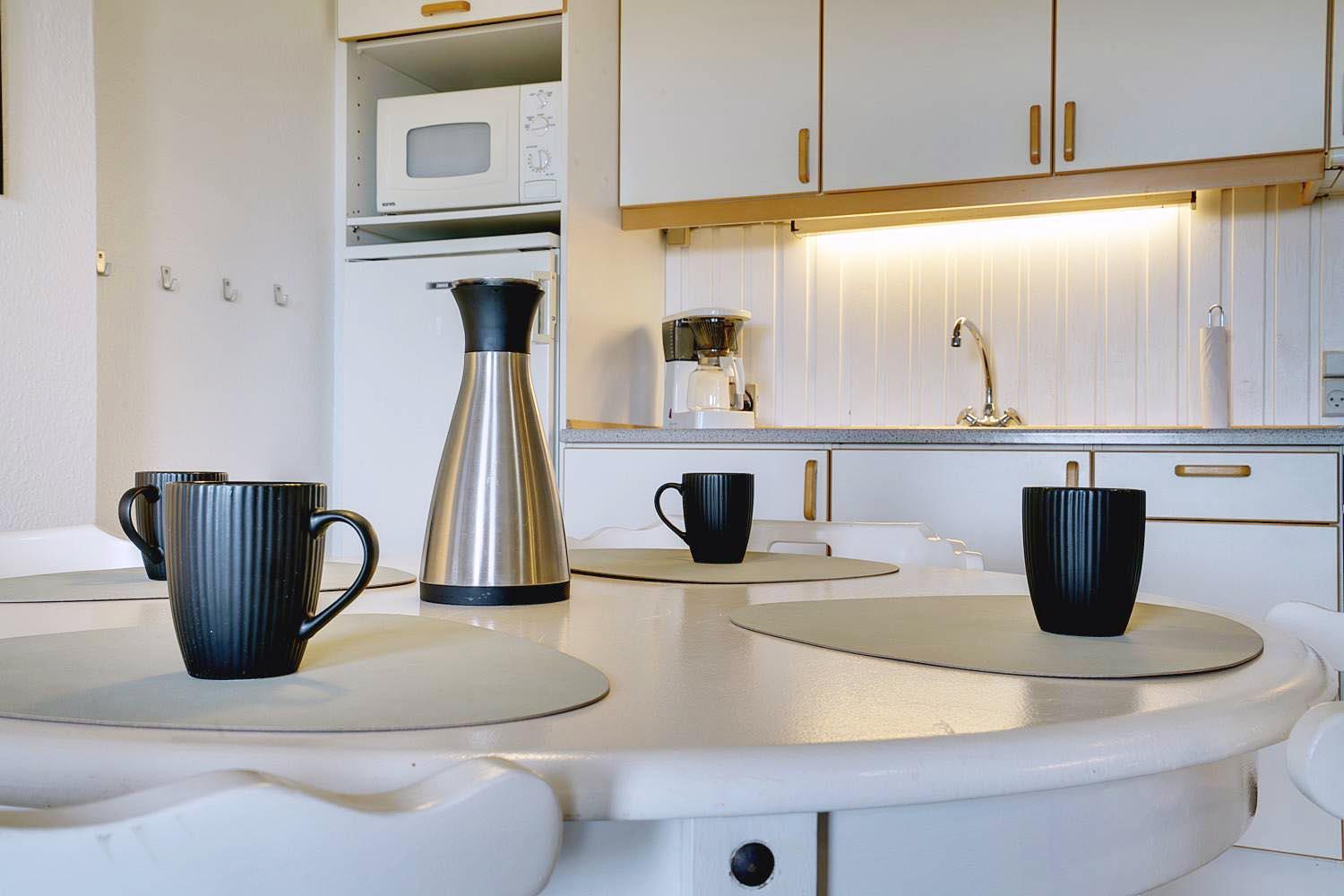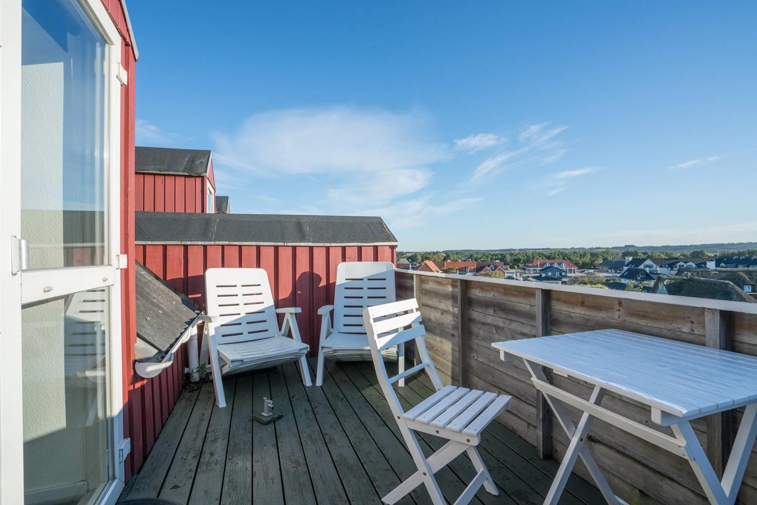 Nyd solen og den friske havluft på den delvist lukkede terrasse eller tag kaffen med op på balkonen. På fællesområdet findes der vaskemaskine og tørretumbler til fri afbenyttelse.