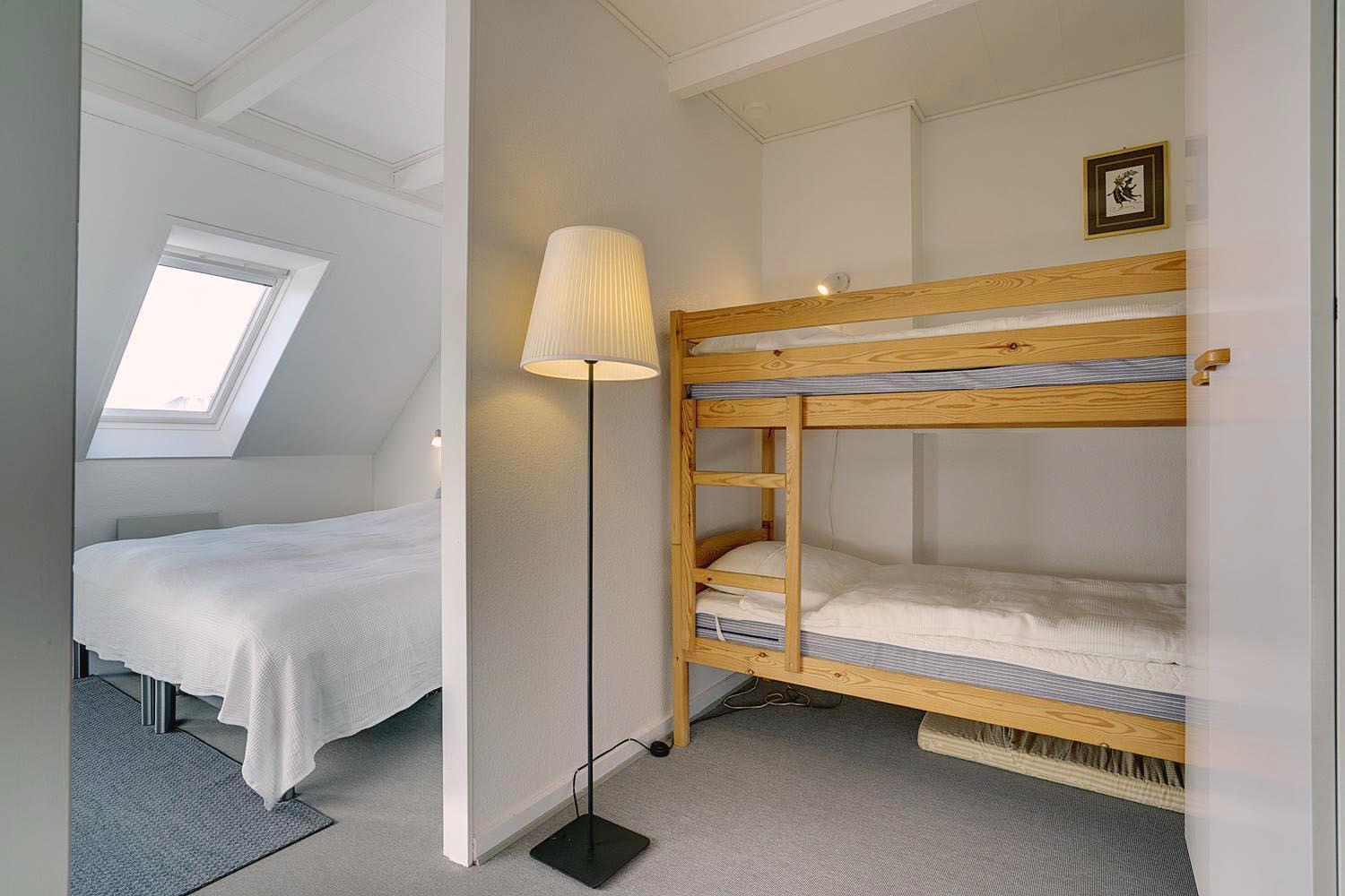 Sengestørrelse: 1 dobbeltseng med 2 madrasser 90 x 200 cm + 1 køjeseng 70 x 200 cm