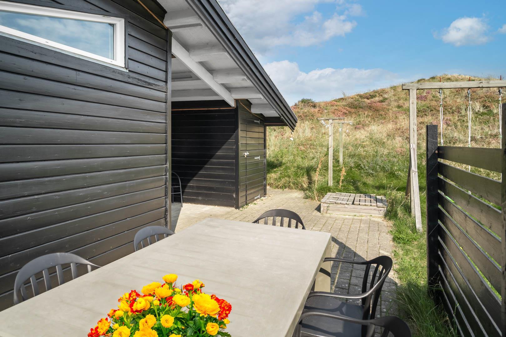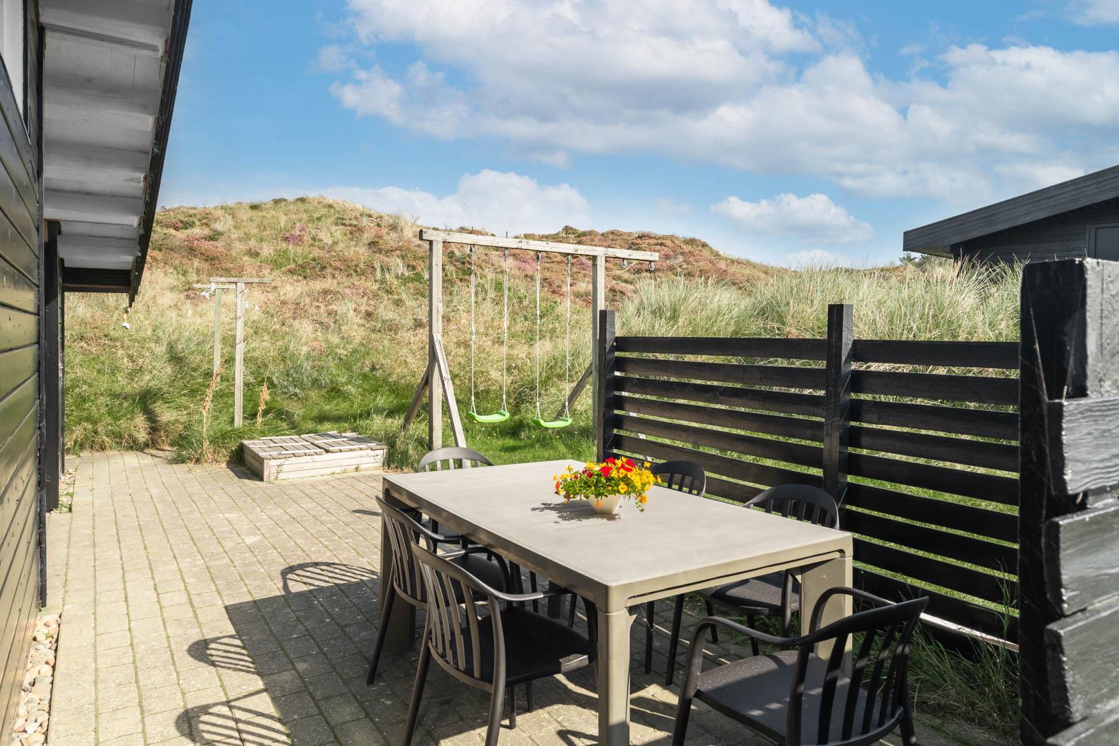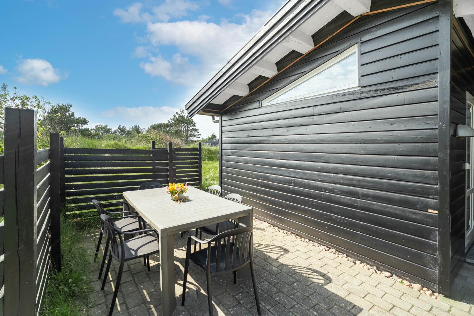 Dette dejlige, lyse, velpassede, total renoveret(2021) bjælkehus ligger på en flot klitgrund i rolige omgivelser. Den hyggelige stue er smagfuld og personlig indrettet og har udgang til dejlige syd og vestvendte terrasser og udsigt over den flotte lyngklædte naturgrund. Køkkenet er i åben forbindelse med stuen, - herfra er der udgang til morgenterrassen og det lyngklædte landskab. De 2 store soveværelser har begge udgang til terrasser. Det ene soveværelse har direkte udgang til overdækket østvendt terrasse. Husets depotrum rummer gode afsætningsmuligheder. I 2021 er huset tilbygget/renoveret - så der fremover er 2 badeværelser og 3 store soverum med dobbeltsenge. Alle senge er dobbeltsenge med boxmadrasser Et rigtigt dejligt feriehus, hvor rammerne er tilstede for en god ferie hele året. IKKE rygerhus.
