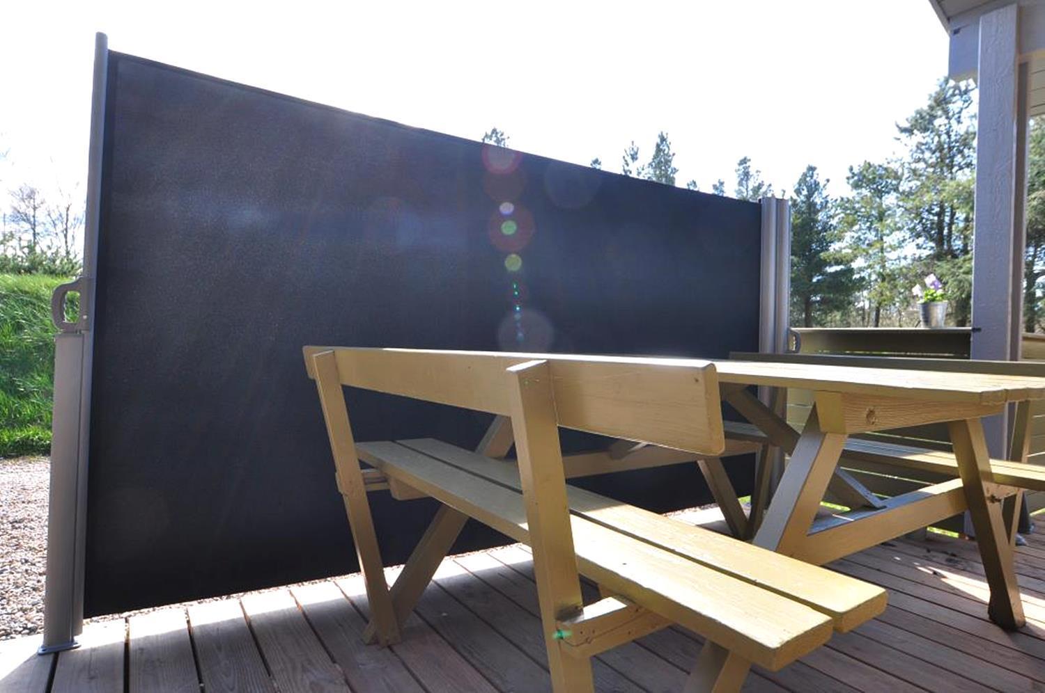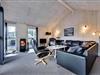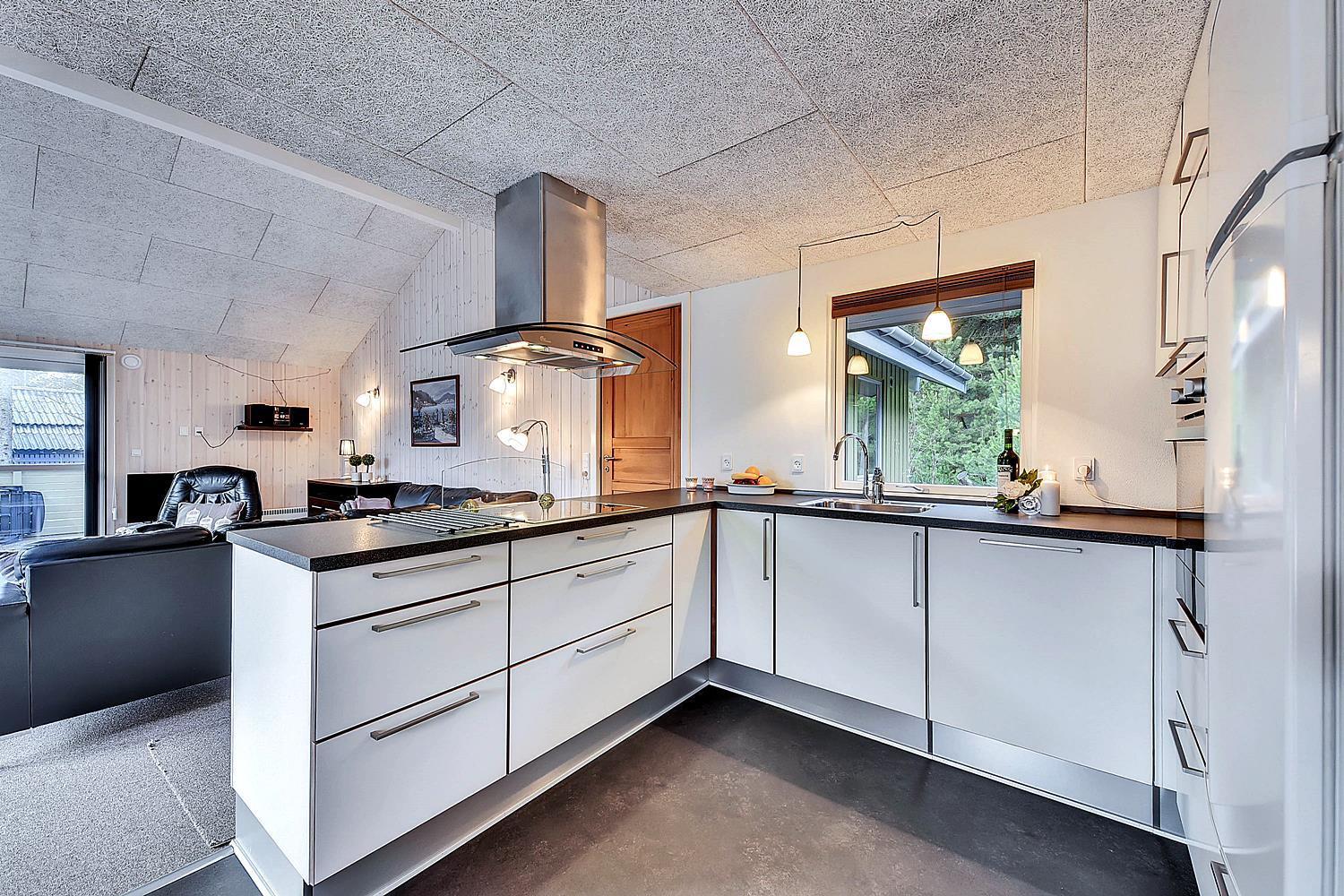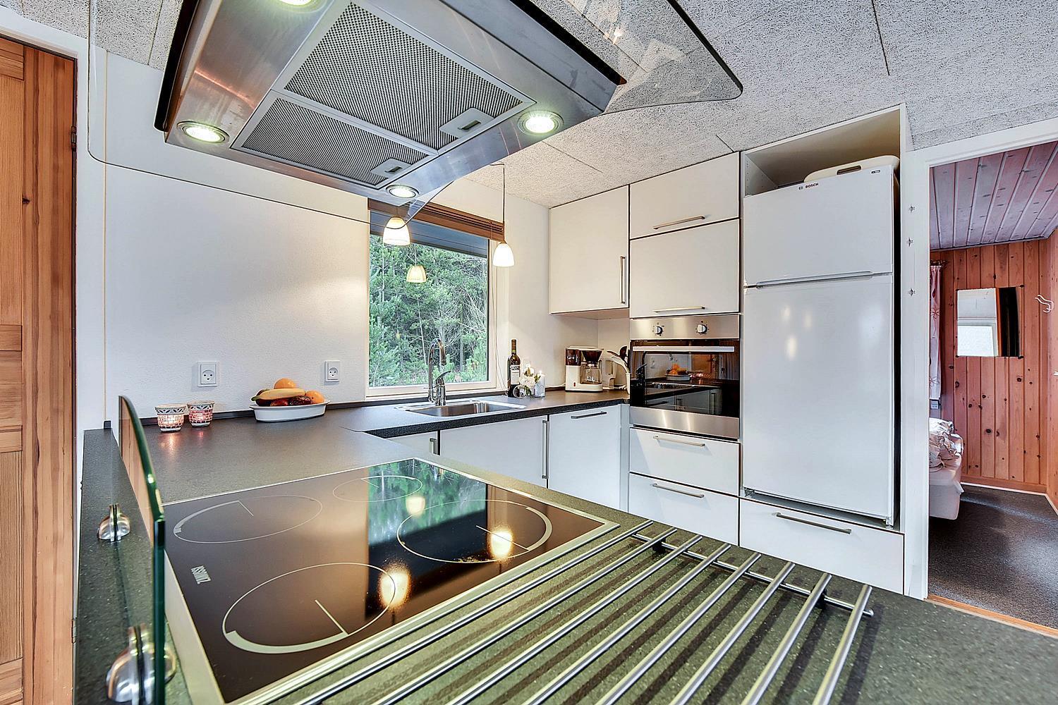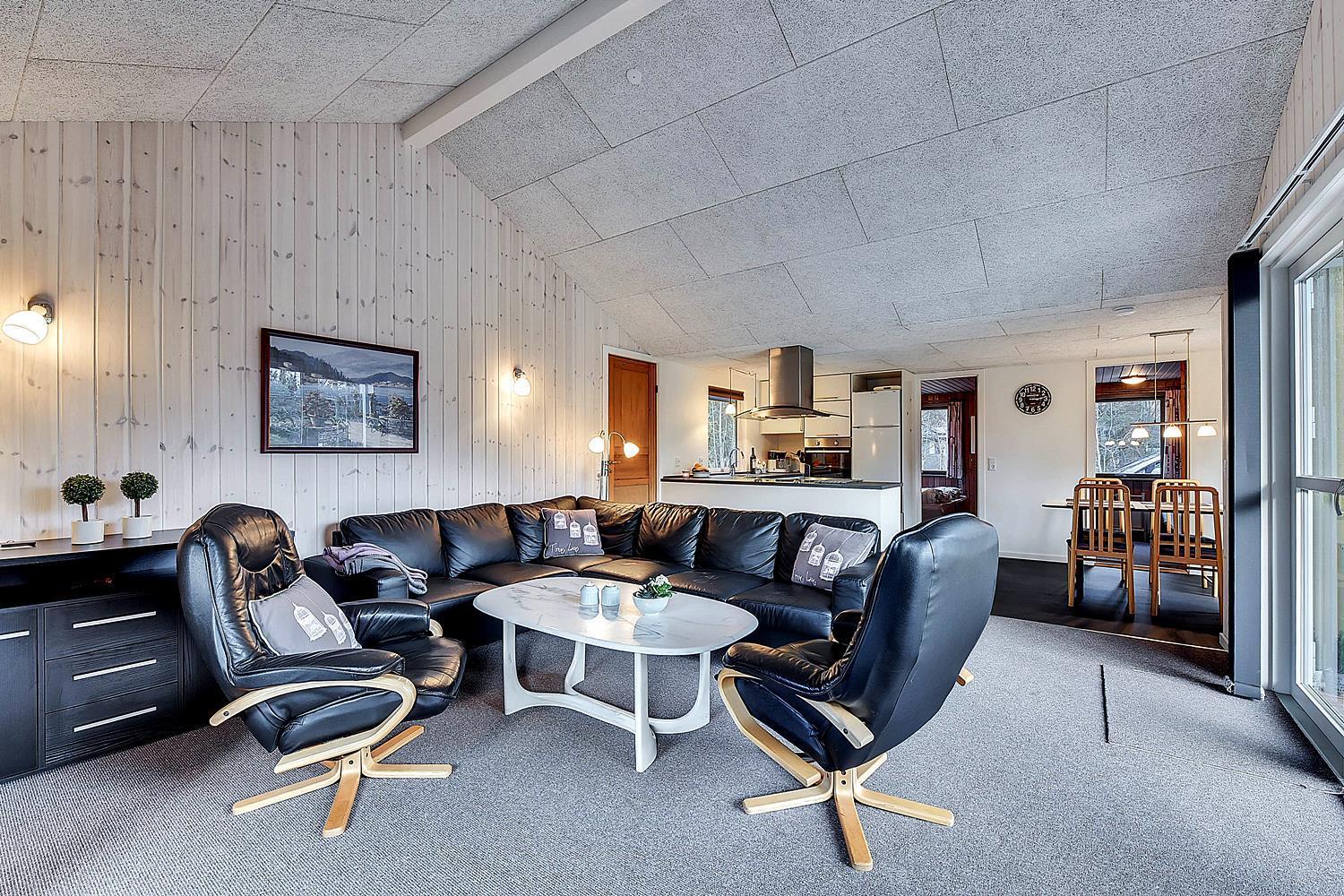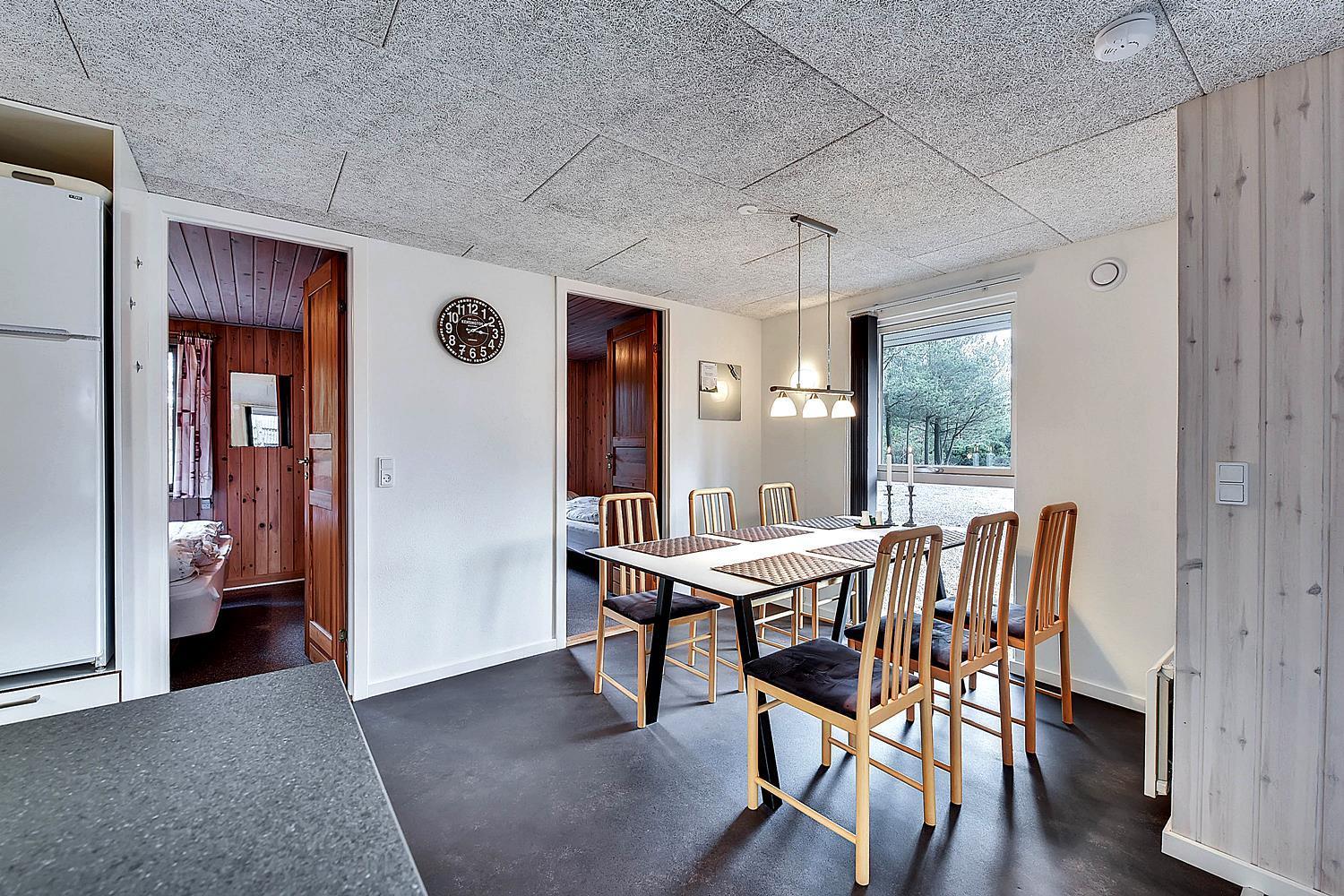 På ugeneret grund, delvis omkranset af træer, ligger dette velholdte og hyggelige feriehus. Feriehuset har nyere køkken/alrum og i husets stue med loft til kip er der opsat brændeovn. Feriehuset indeholder nyere og flot badeværelse. Stue og køkken ligger i åben forbindelse med hinanden. Veludstyret køkken. 3 gode og rummelige soverum. Fra stuen er der udgang til dejlig læ fyldt og delvis indhegnet terrasse. På den store naturgrund er der opsat flere aktiviteter for de mindste, bl.a. trampolin, gynger samt sandkasse.