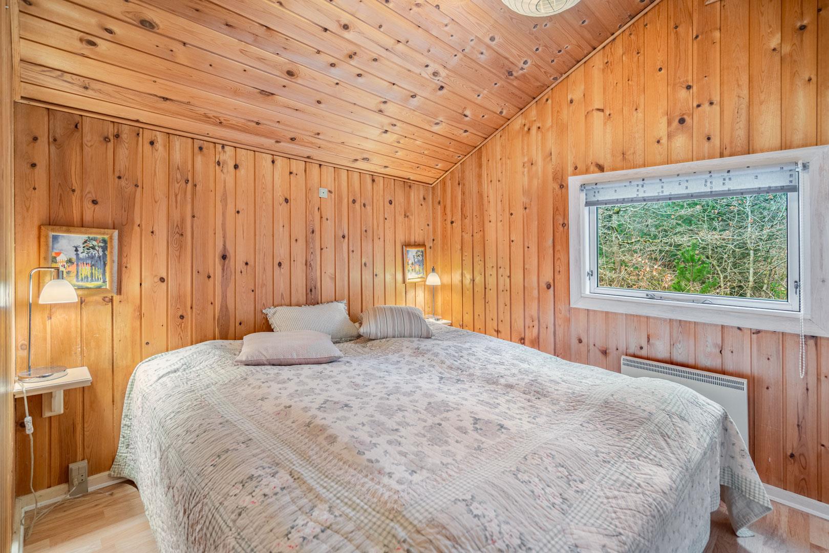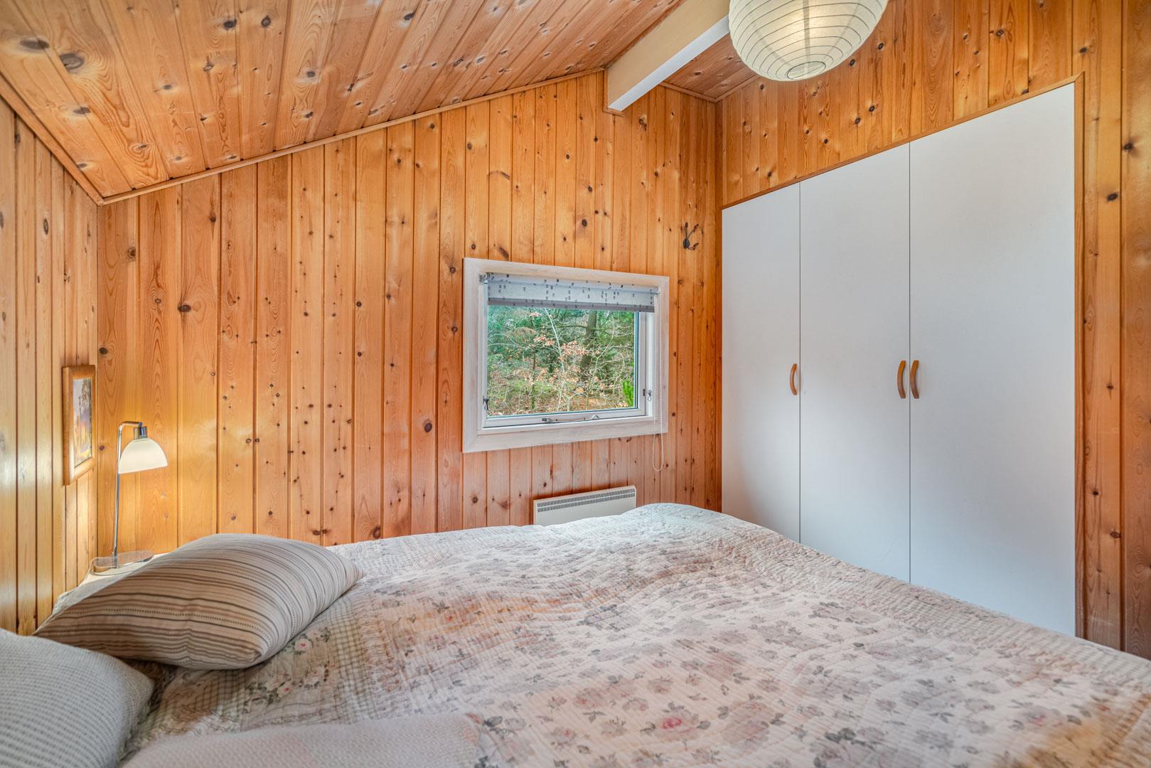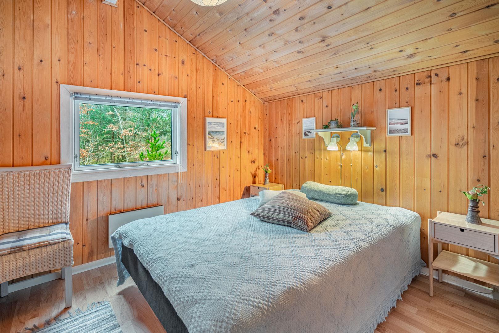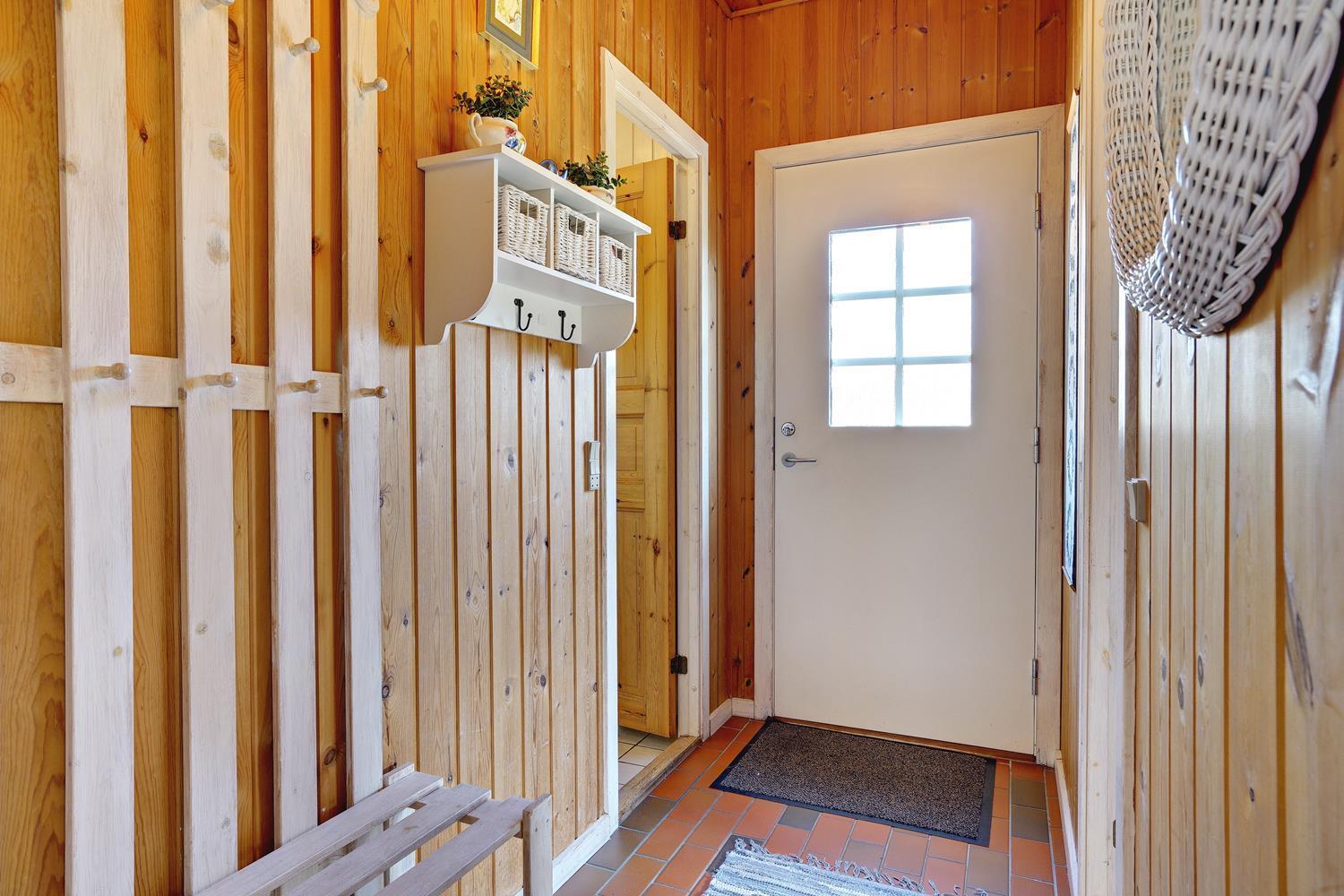 Indendørs er sommerhuset udstyret med klinker og trægulve i værelserne, hvilket bidrager til en elegant og praktisk indretning. Feriehuset rummer tre soveværelser. Sengestørrelser: 1 dobbeltseng 180 x 200 cm + 1 dobbeltseng 140 x 200 cm + 1 enkeltseng 80 x 200 cm.