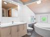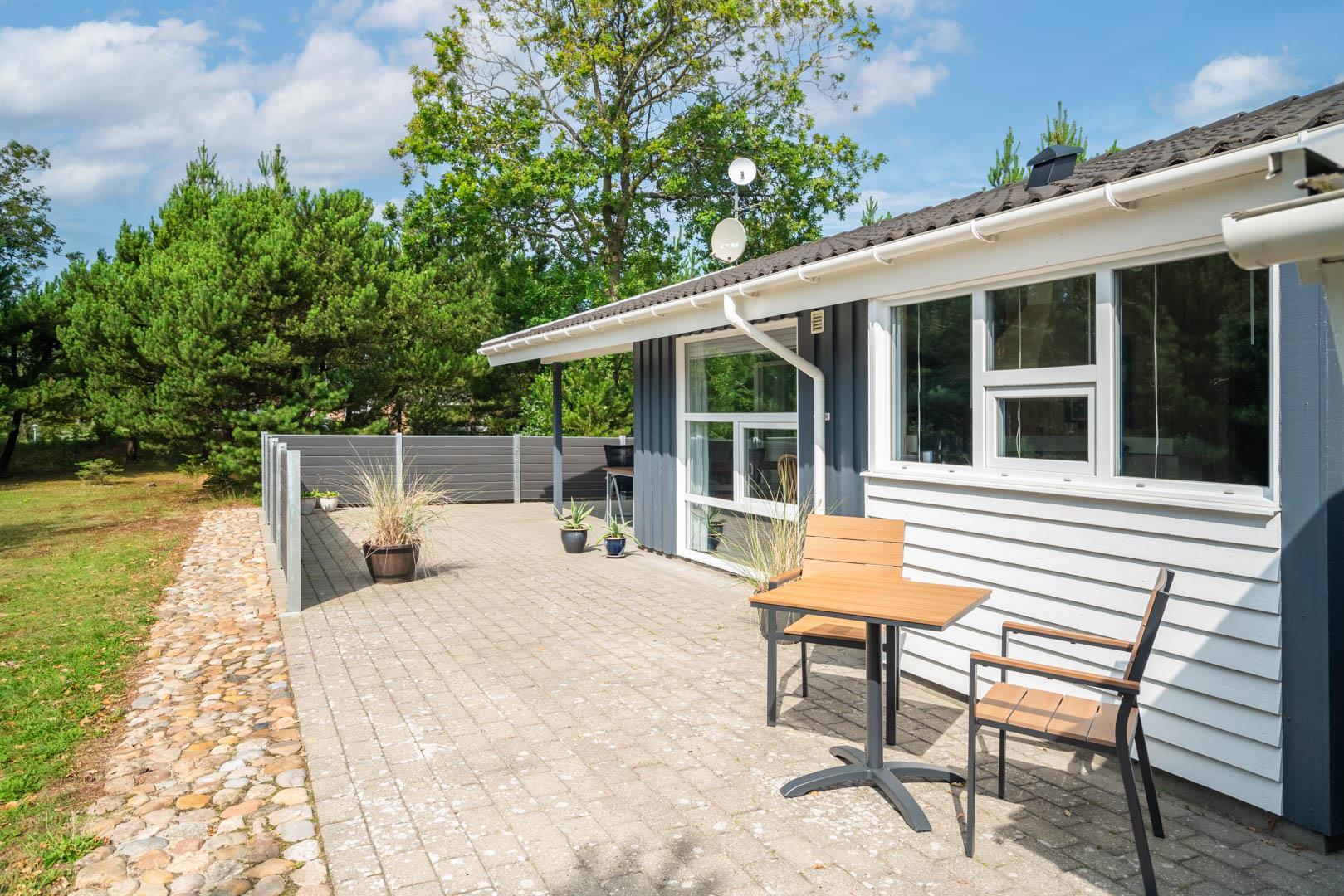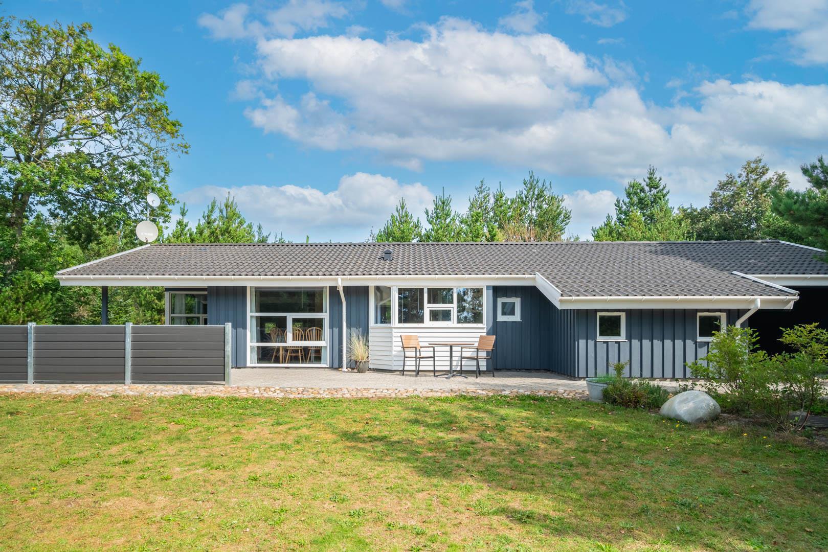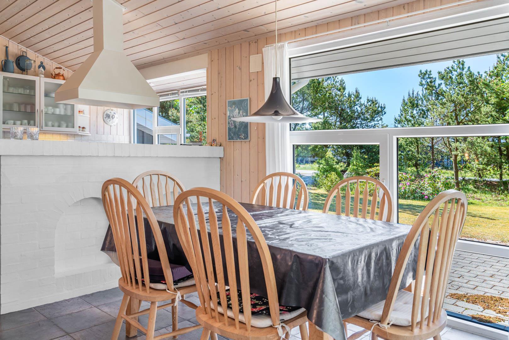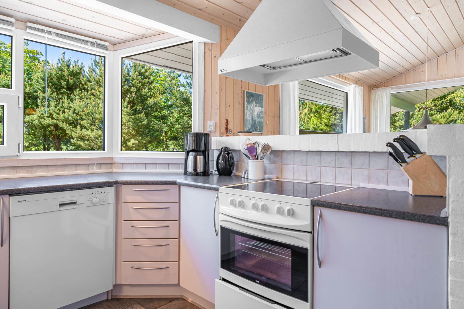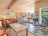 Indendørs byder sommerhuset på et lyst og rummeligt opholdsområde, hvor en brændeovn og komfortable møbler skaber den ideelle ramme for afslapning og samvær. Det åbne køkken og spiseområde giver mulighed for nem tilberedning af lækre måltider, mens store vinduer lader lyset strømme ind og giver en forfriskende udsigt til den omkringliggende natur. Efter en dag med sjov og aktiviteter kan du forkæle dig selv i badeværelset, der er udstyret med både sauna og spa - den ultimative måde at slappe af på. Med tre velindrettede soveværelser og to badeværelser er der rigeligt med plads til hele familien eller en gruppe venner.