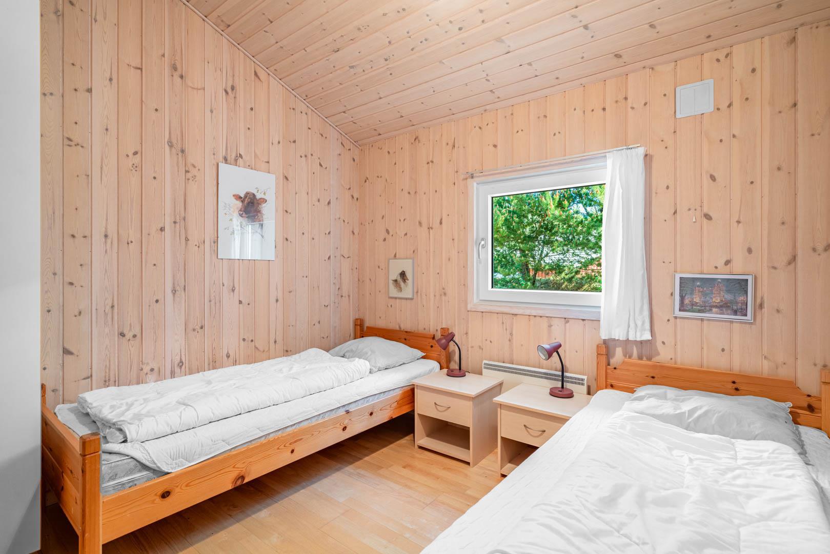 Sengestørrelse: 2 dobbeltsenge med 2 madrasser 90 x 200 cm + 2 enkeltsenge 85 x 200 cm.