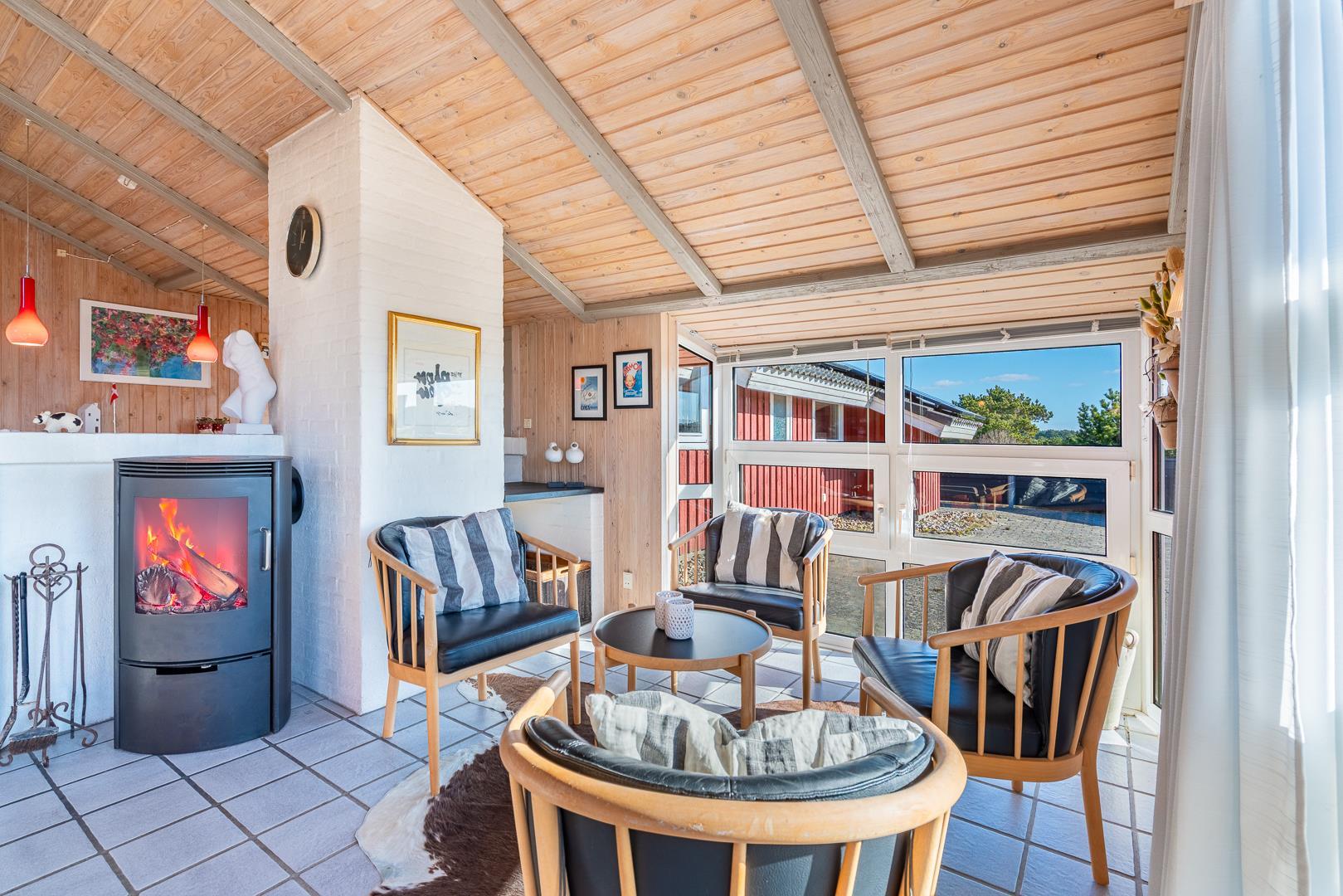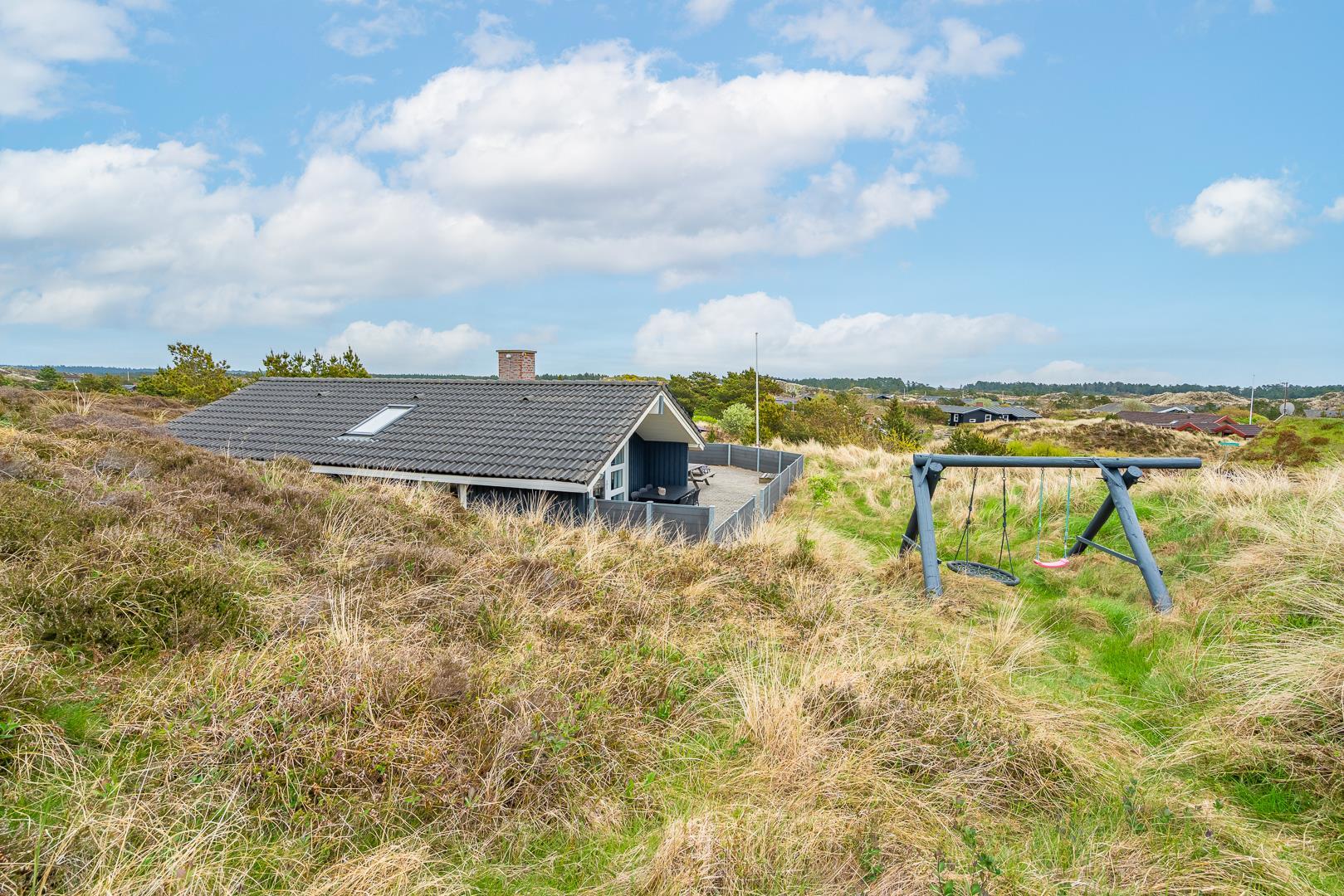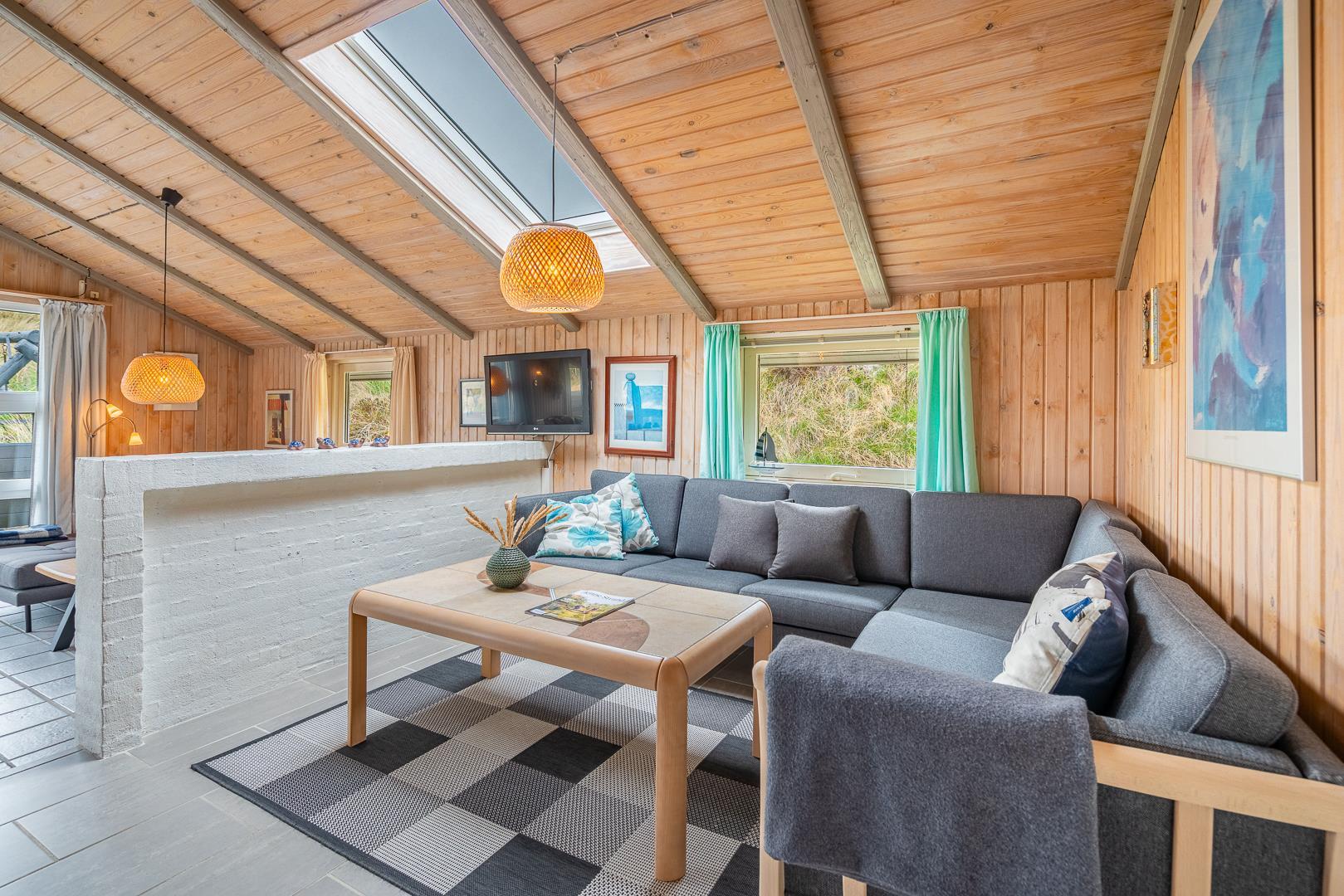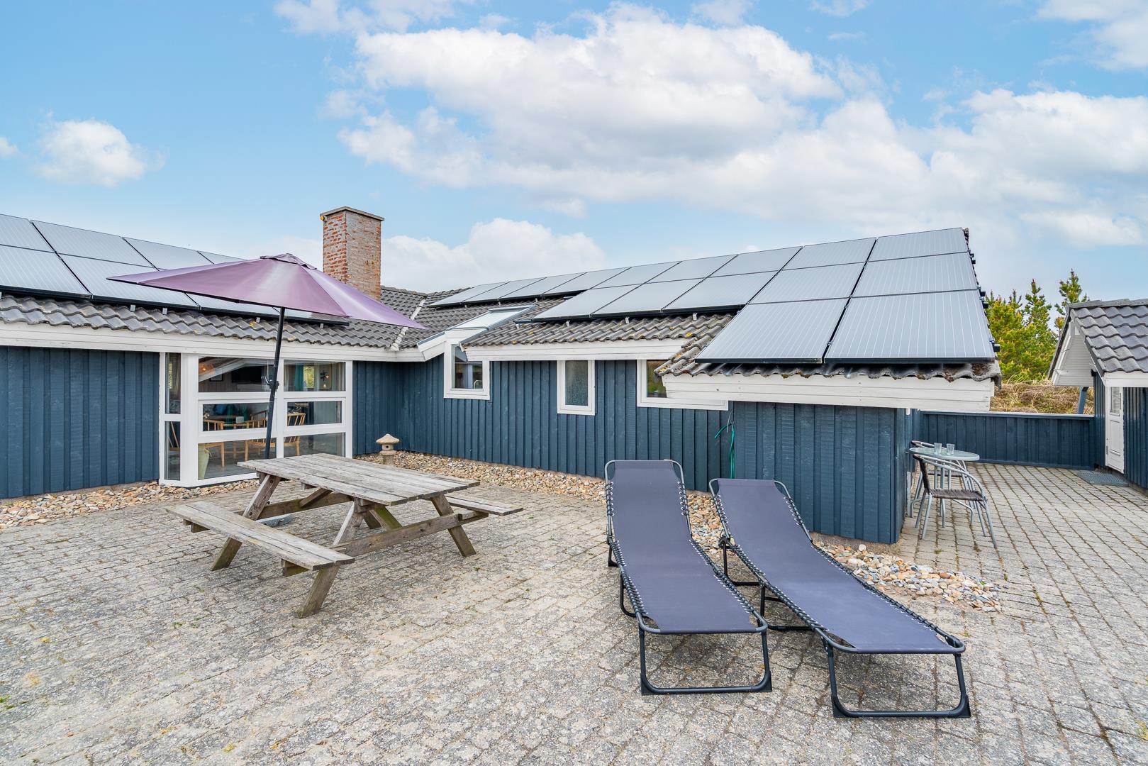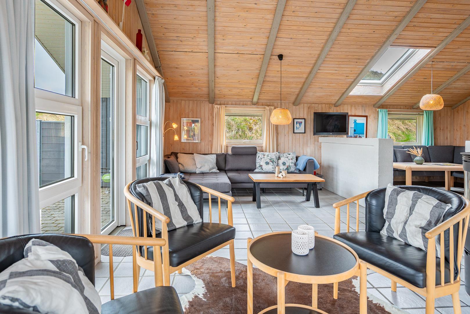Hyggeligt feriehus i Henne Strand med sauna, spabad og stor sydvendt terrasse med flot udsigt.