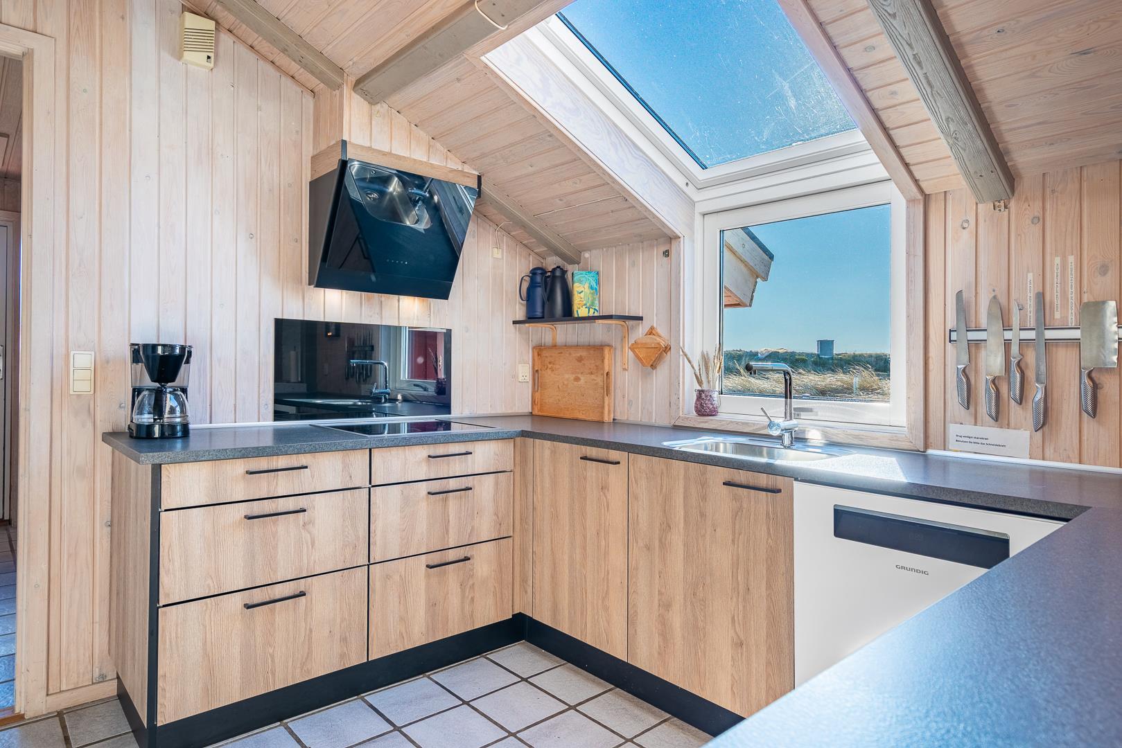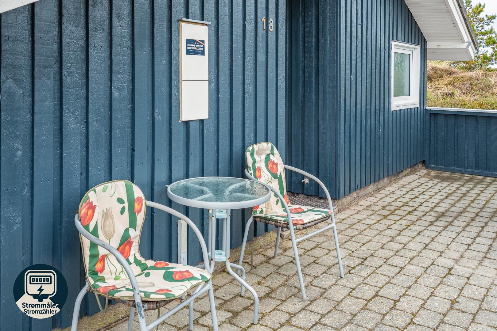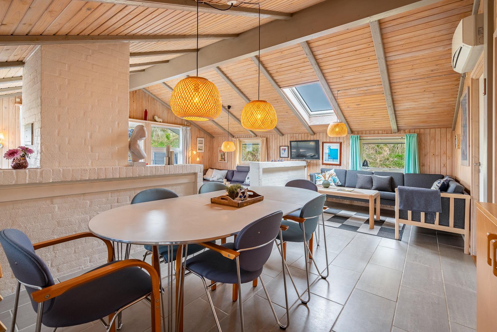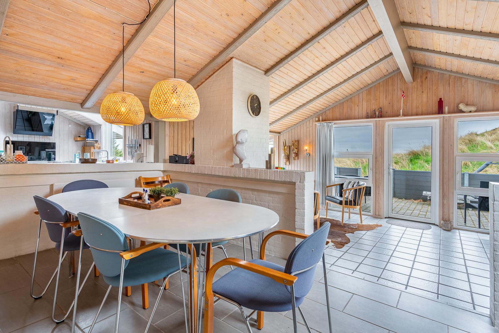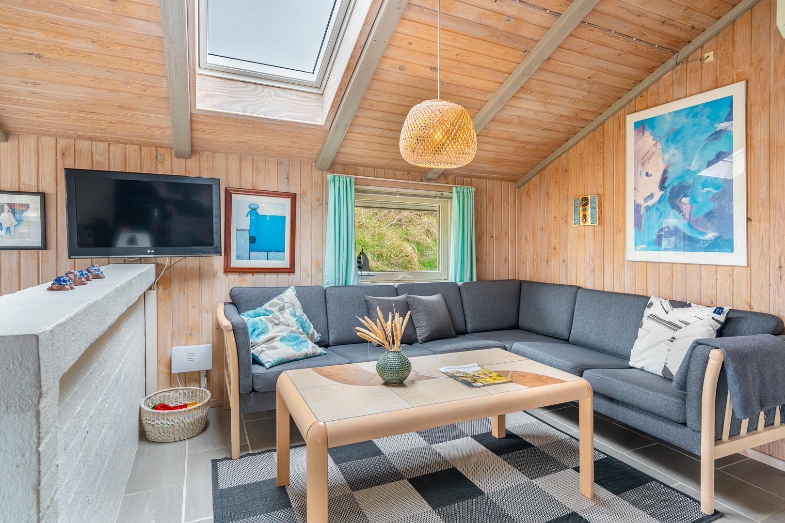 Hyggeligt feriehus i Henne Strand med sauna, spabad og stor sydvendt terrasse med flot udsigt.