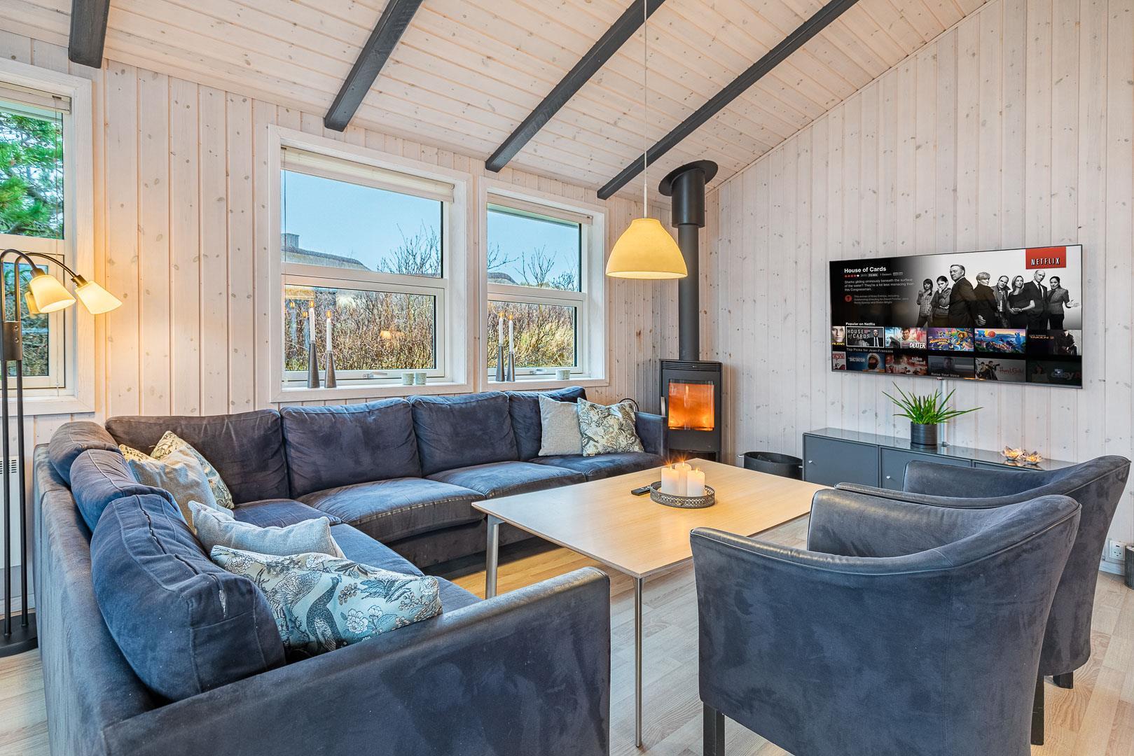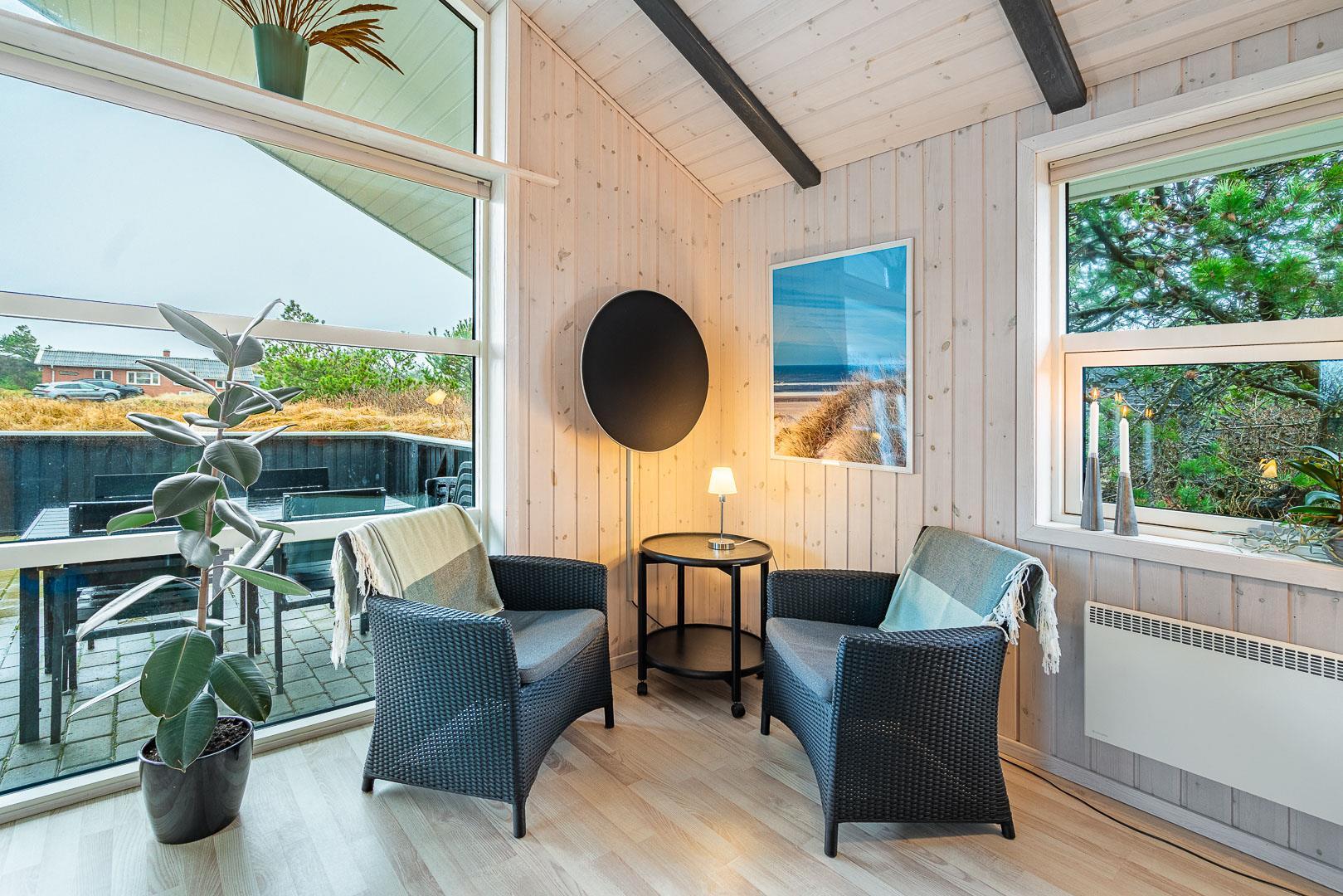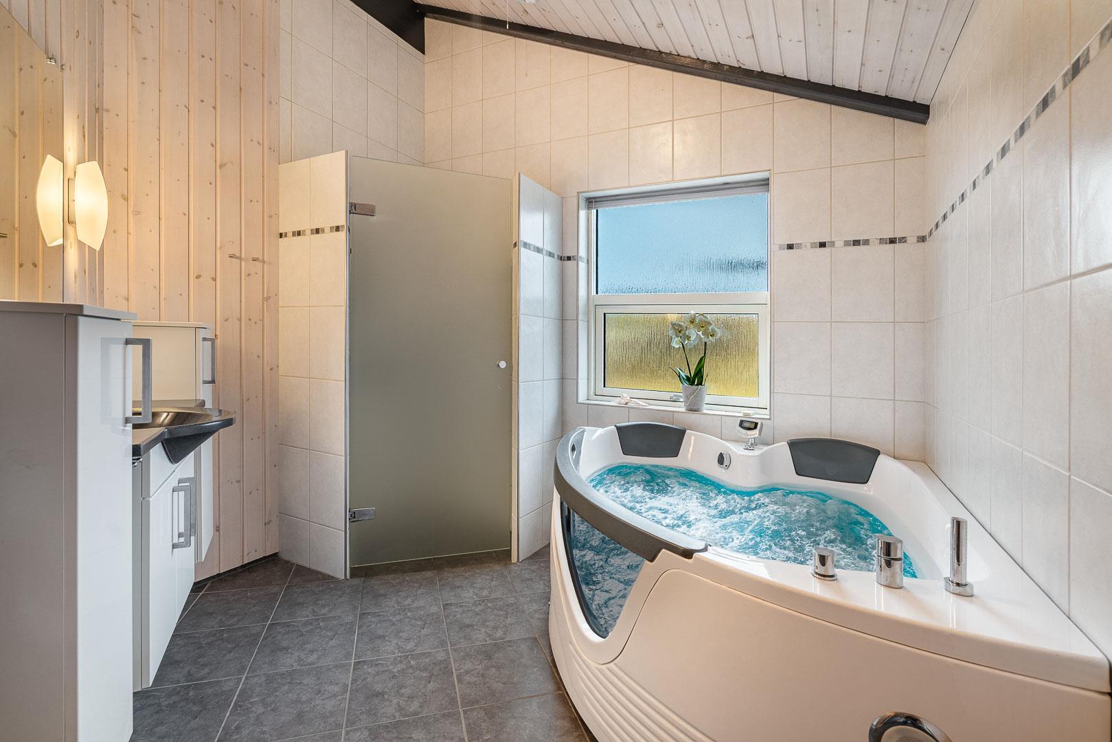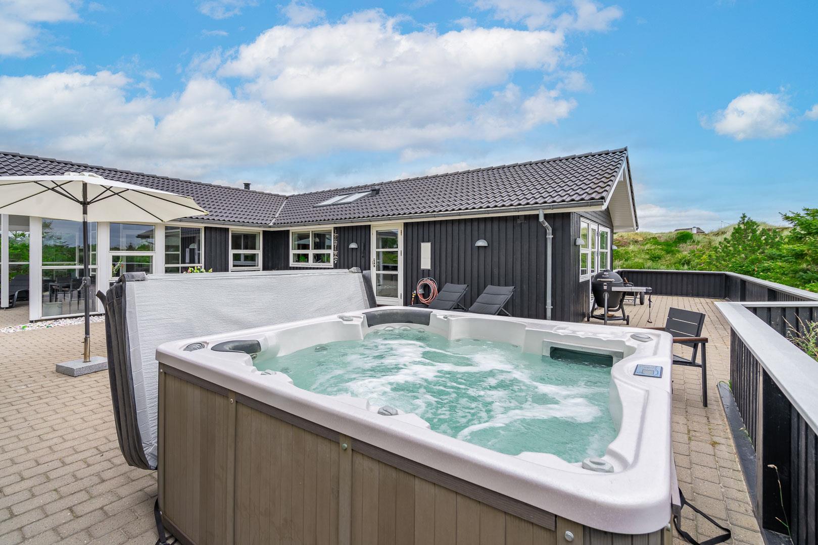 Sommerhuset er fuldt udstyret med både indendørs og udendørs spa samt sauna, så du kan forkæle dig selv og dine nærmeste med total afslapning og velvære i dette lækre sommerhus. Dette skønne sommerhus er det ideelle valg til en uforglemmelig ferieoplevelse for hele familien i Henne Strand.