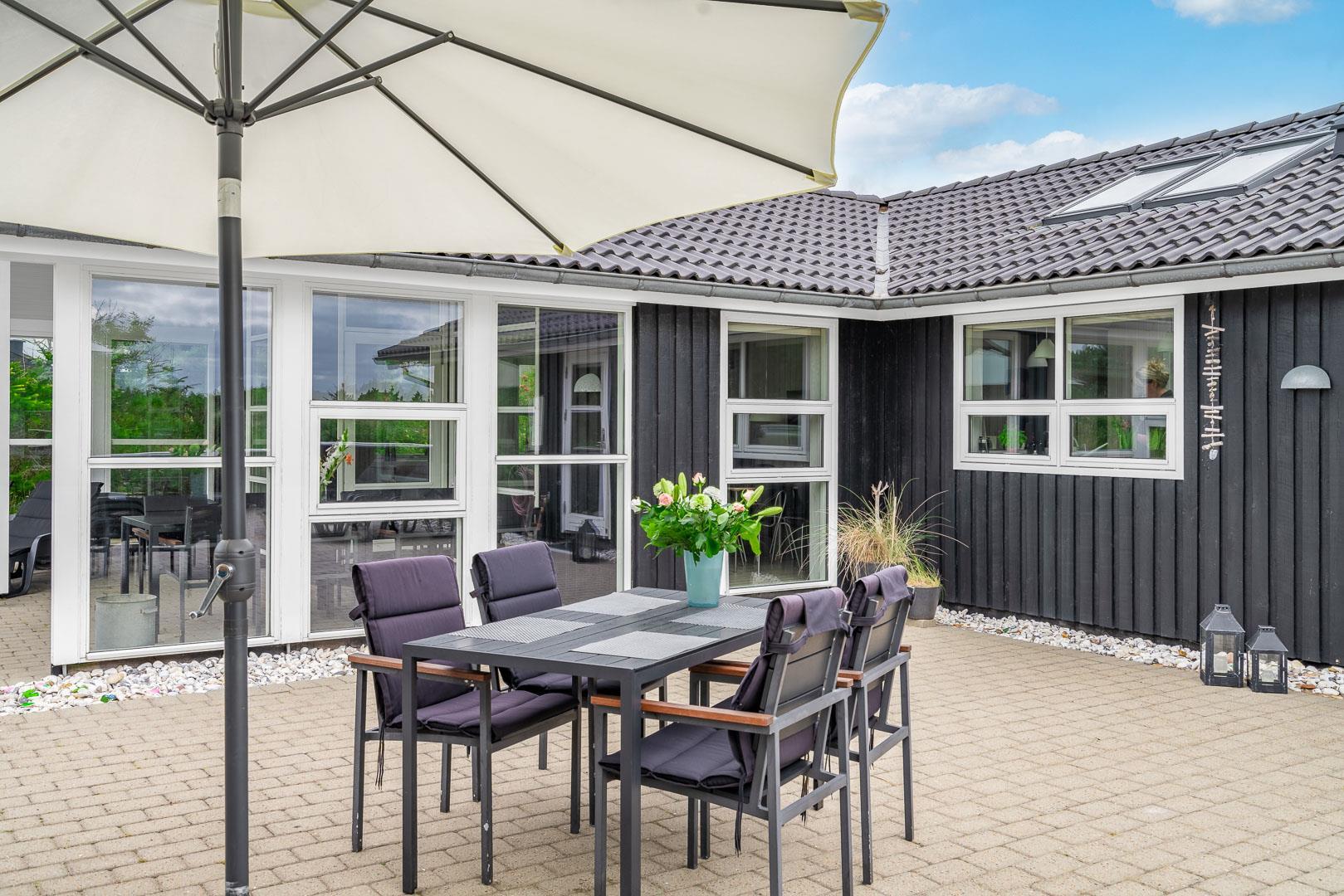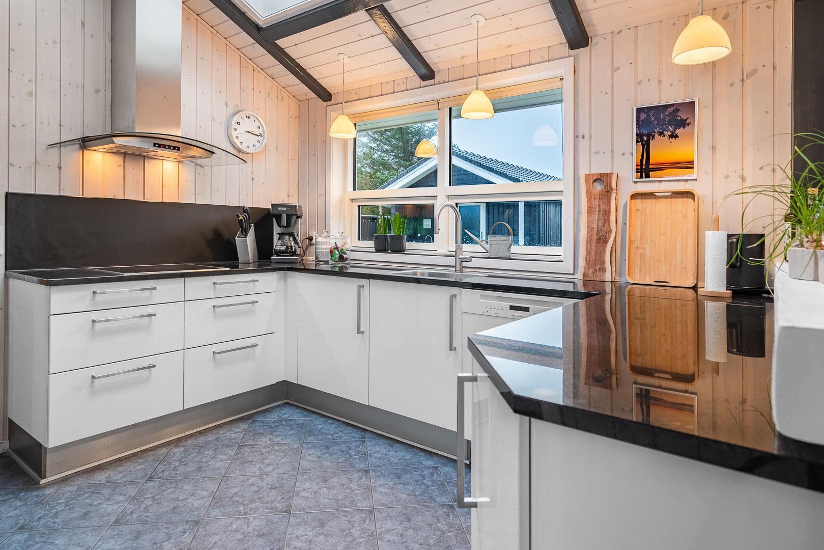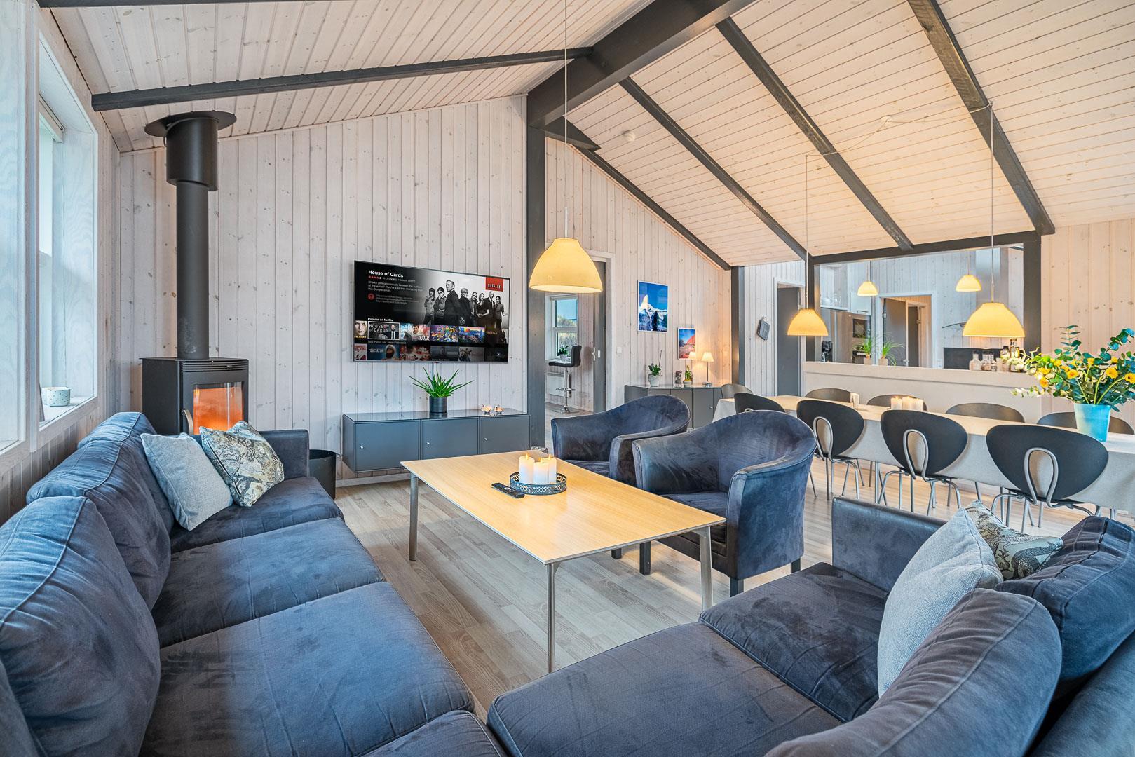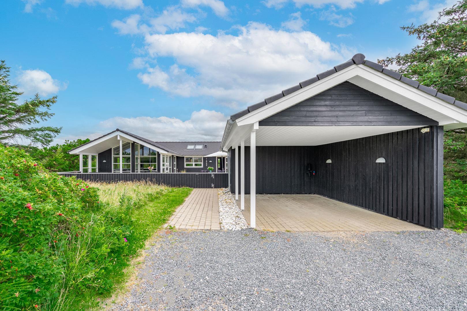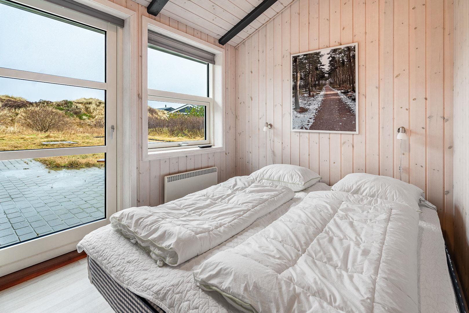Velkommen til dette fantastiske sommerhus i Henne Strand ved Vestkysten, der kan rumme op til 10 personer. Hvert hjørne af dette sommerhus er indrettet med smagfulde og lyse materialer, der skaber en dejlig atmosfære. Et stort og lækkert køkken ligger i åben forbindelse med den fine stue med brændeovn og god plads til alle. Stuen er rummelig og indbydende, perfekt til både afslapning og socialt samvær. Fra stuen er der udgang til den dejlige store terrasse, hvor du kan slappe af i den luksuriøse udendørsspa og nyde den friske luft. Terrassen strækker sig næsten rundt om hele sommerhuset - hvert soveværelse har sin egen udgang, så du kan nyde morgensolen eller aftensolen i fulde drag. I feriehusets finder du 5 soveværelser hvoraf alle er med skønne dobbeltsenge.