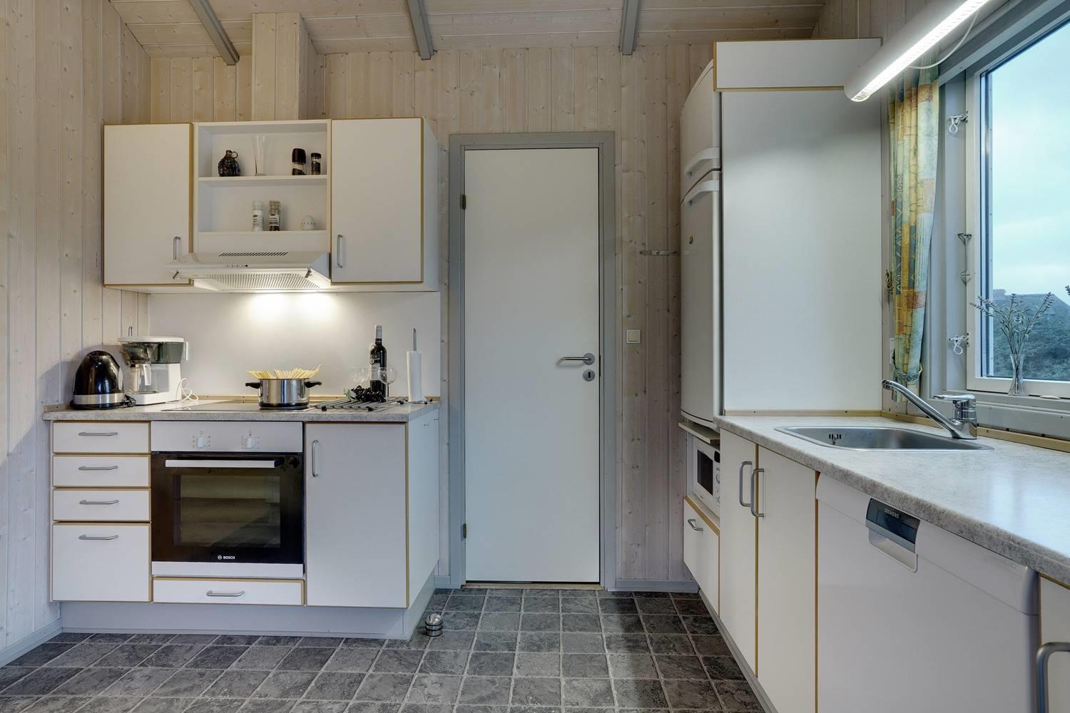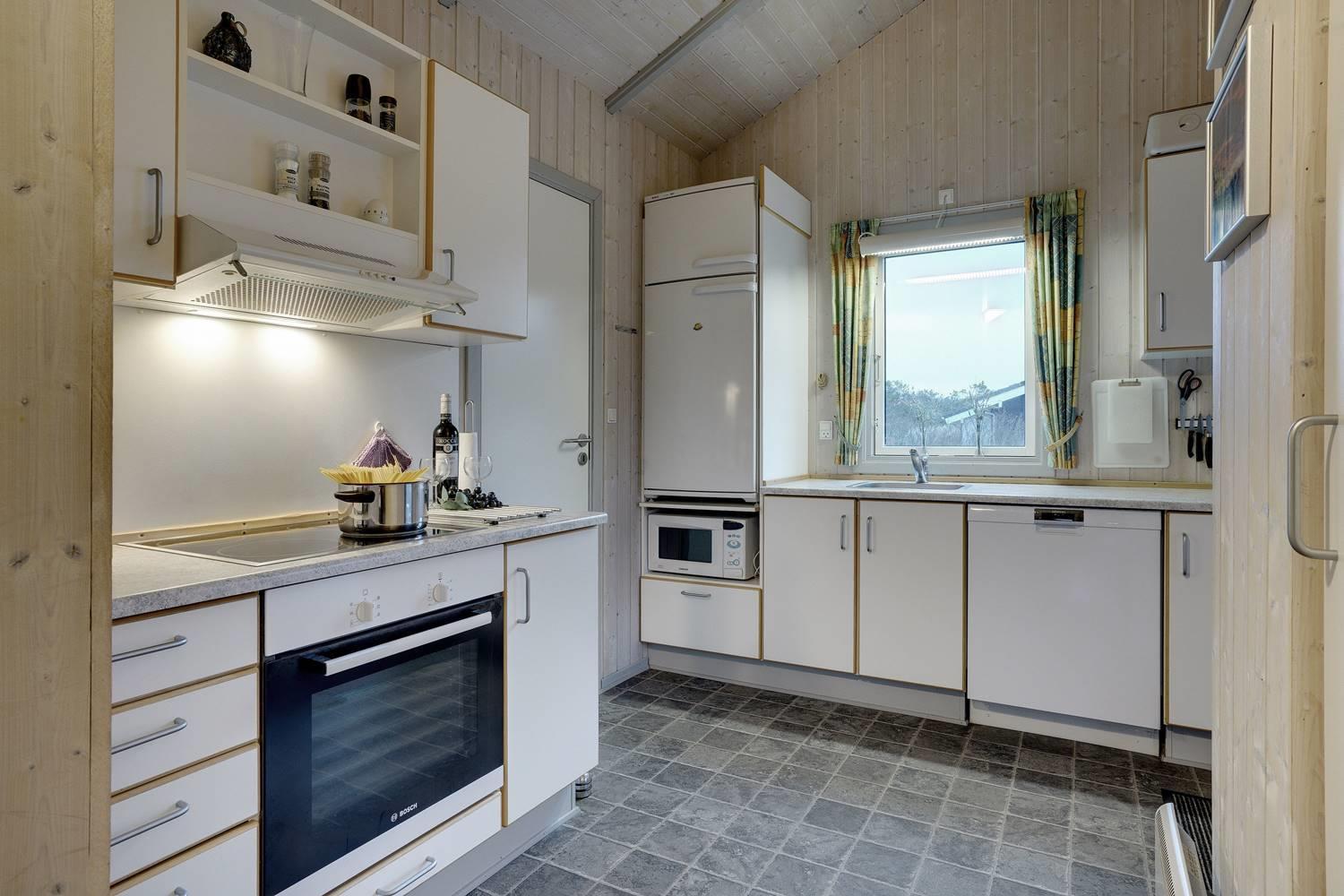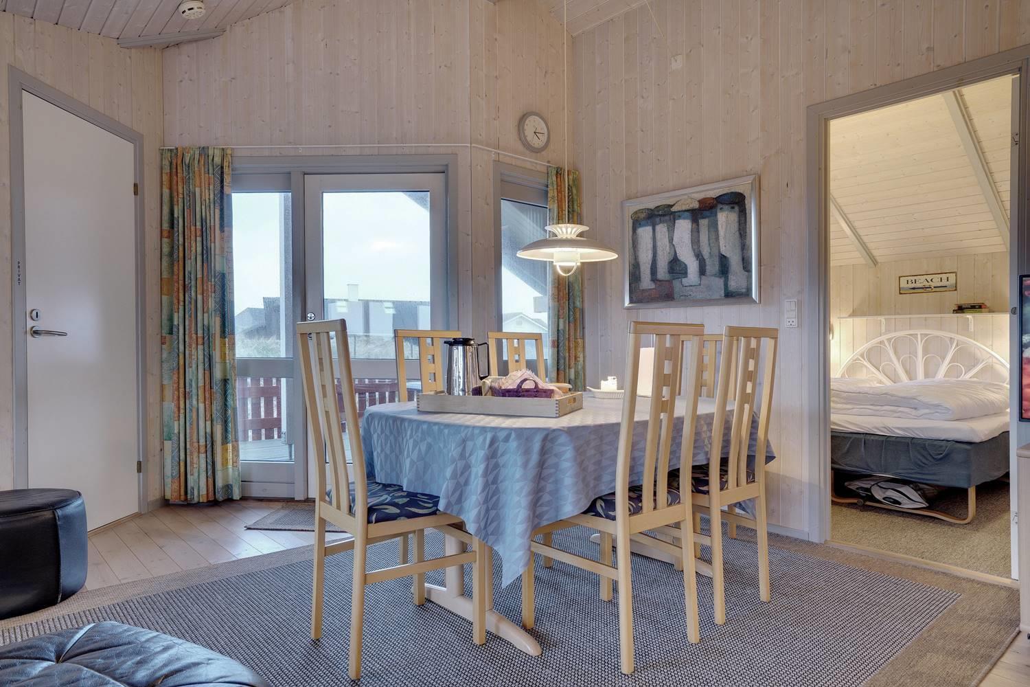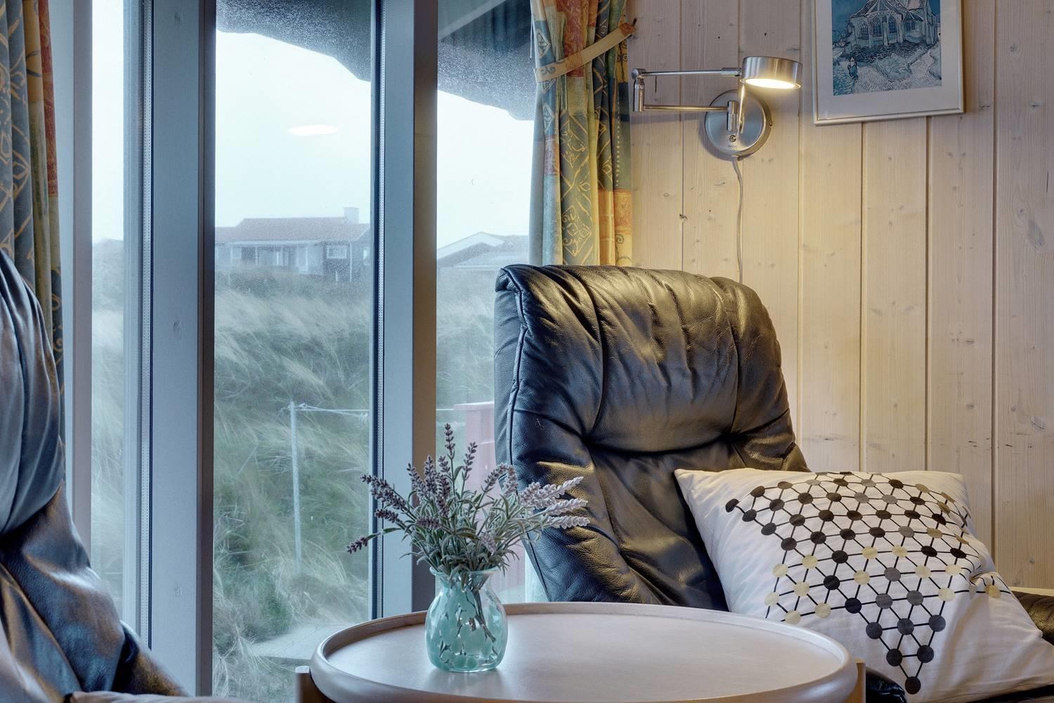 Husets hjerte er den hyggelige stue med brændeovn, der skaber varme og stemning på kølige aftener. Herfra er der direkte adgang til de store træterrasser – delvist overdækkede – hvor man kan nyde kaffen om morgenen eller aftensolen over klitlandskabet. Terrasserne er perfekte til afslapning, grillhygge og samvær i det fri.