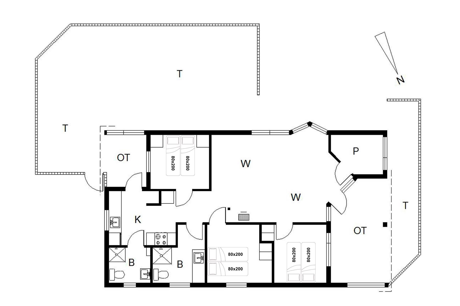 Sengestørrelse: 3 dobbeltsenge med 2 madrasser 80 x 200 cm.