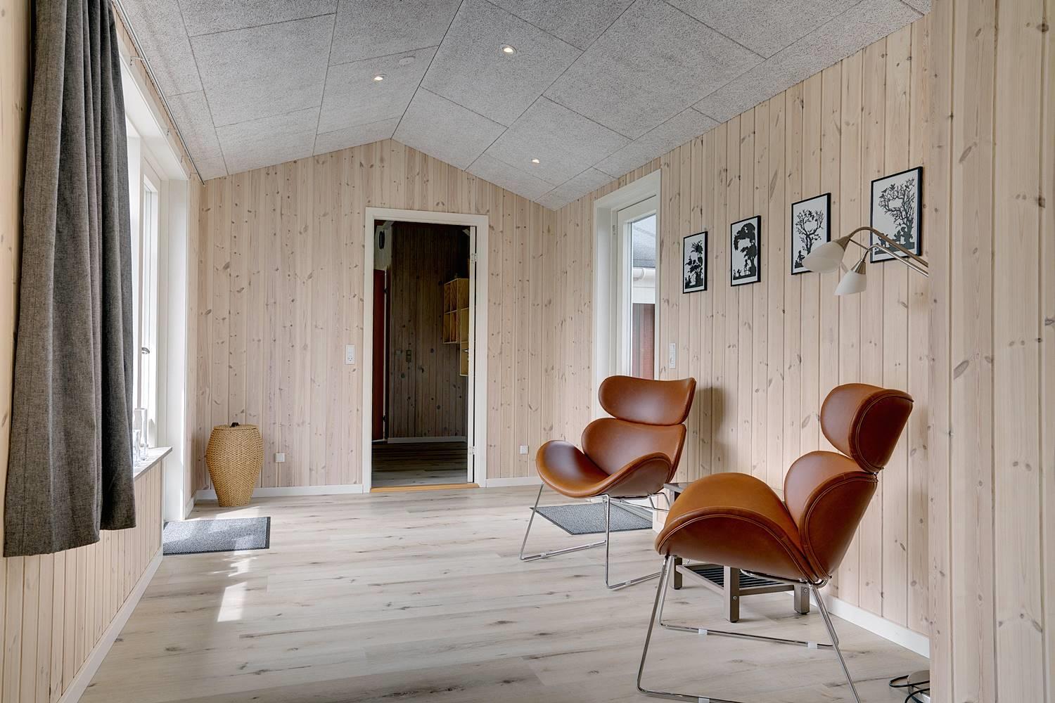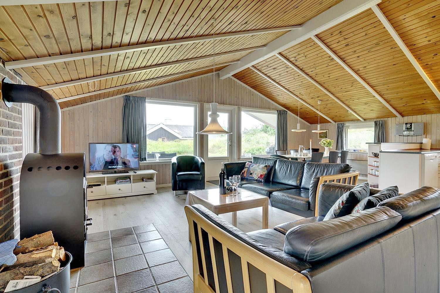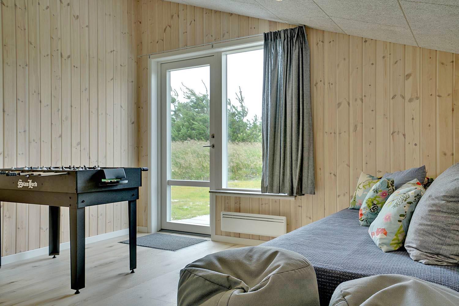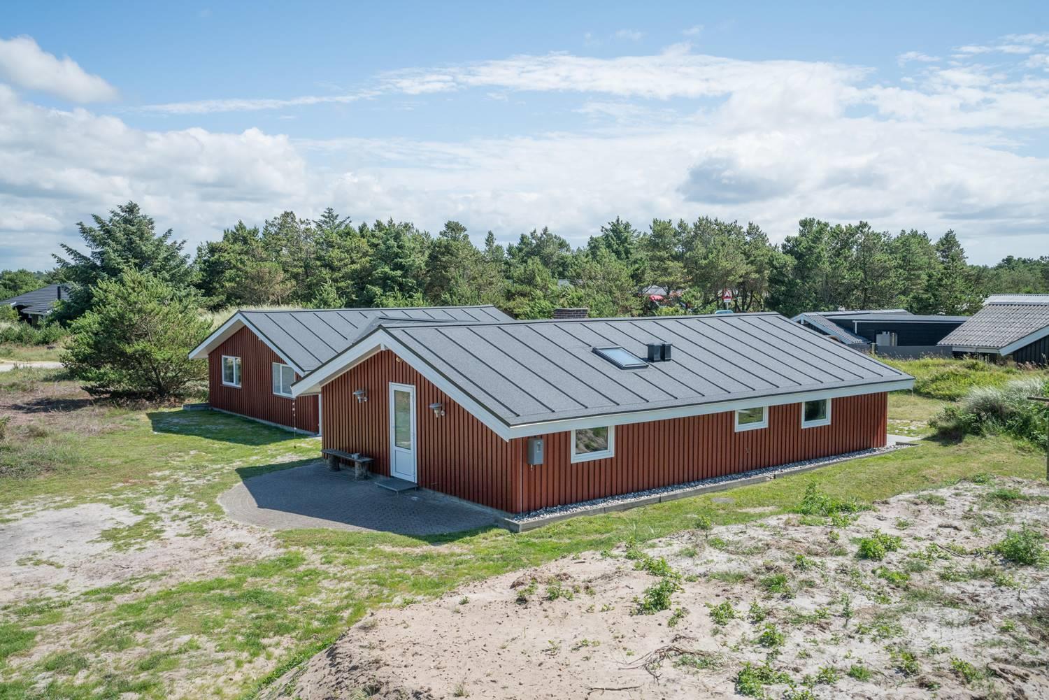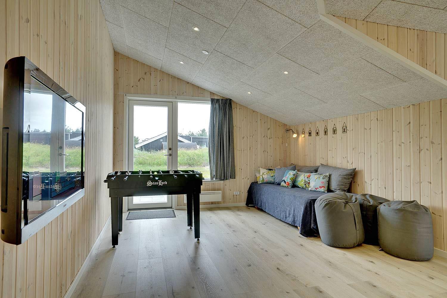 Dejligt feriehus i Henne Strand med stor terrasse, sauna, aktivitetsrum og kort afstand til vand og by.