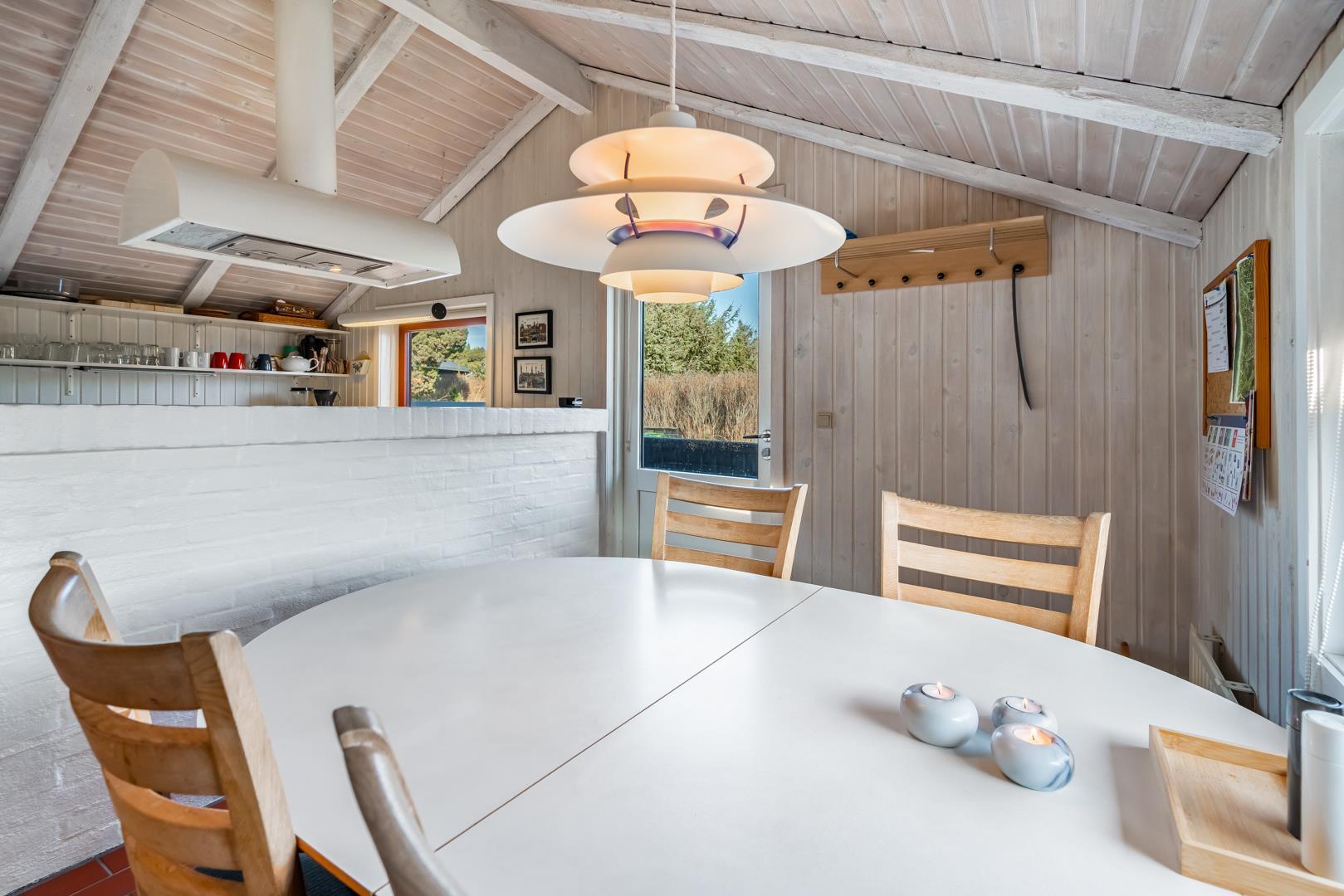 Det åbne køkken er veludstyret og ligger i forbindelse med en hyggelig spiseplads – det perfekte samlingspunkt for måltider og hyggelige stunder. Børnene kan lege frit på den sikre terrasse, mens de voksne slapper af.