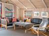 Huset byder på en lys og hyggelig stue med komfortable møbler og direkte adgang til terrassen.
