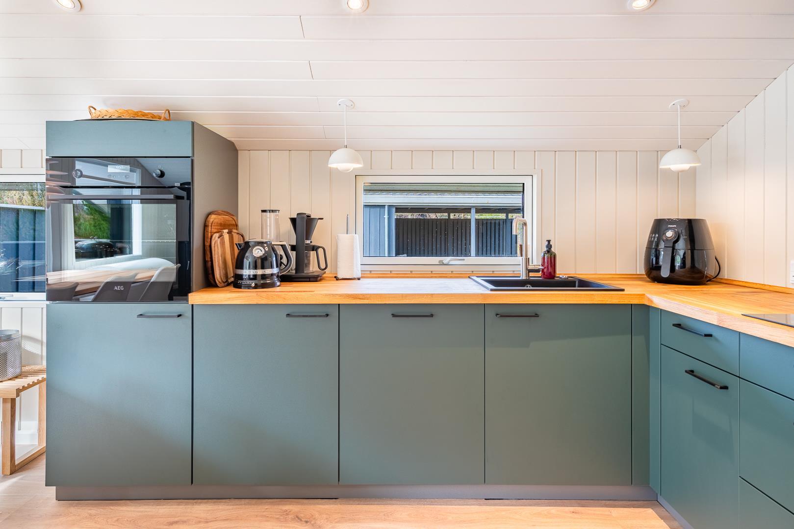 Huset der er til 6 personer, har 3 gode soverum ( to med dobbeltsenge og et med 2 enkeltsenge) er nyrenoveret i 2025 og har fået ny loft-vægbeklædning og et stort moderne køkken alrum. Stuen er hyggeligt indrettet med loft til kip og brændeovn. Der er direkte udgang til en overdækket terrasse fra køkken alrummet. I 2020 er der lavet et dejligt moderne badeværelse med bl.a.. vaskemaskine og tørretumbler.