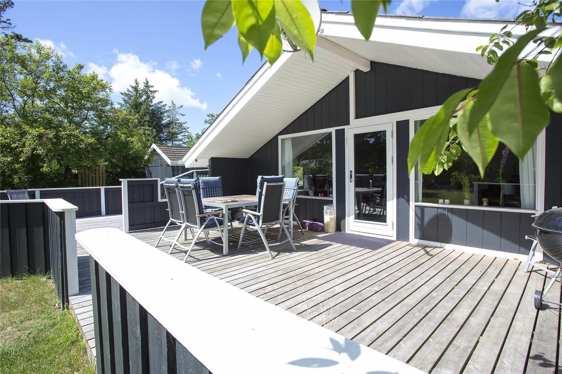 Fra den dejlige terrasse kan man nyde solen og kigge ud i den store have. Der er havemøbler, liggestole og grill på terrassen. I haven er der et gyngestativ og en sandkasse.