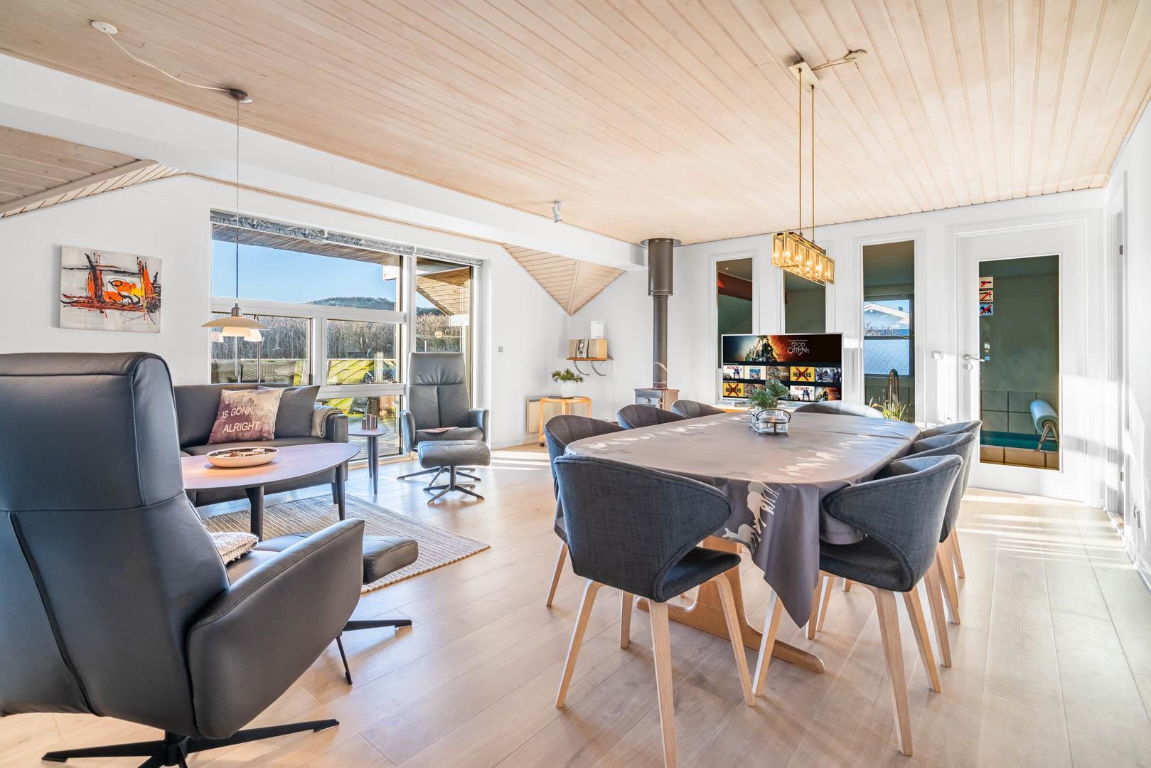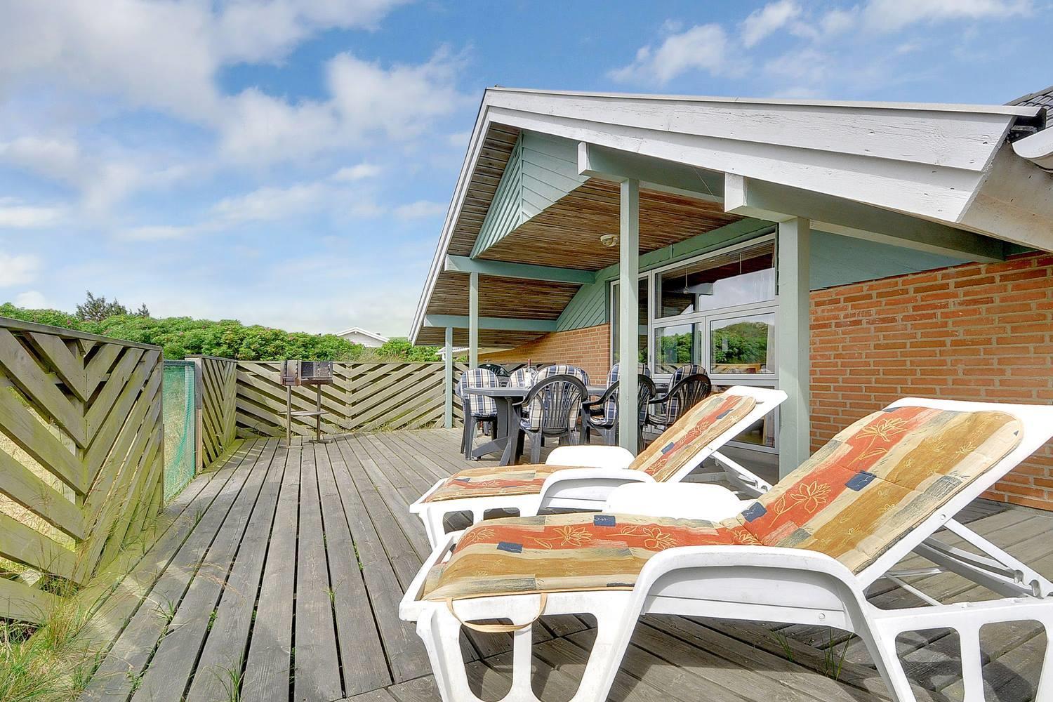 Hyggeligt poolhus i Henne Strand med sauna, spa og stor terrasse tæt på stranden.