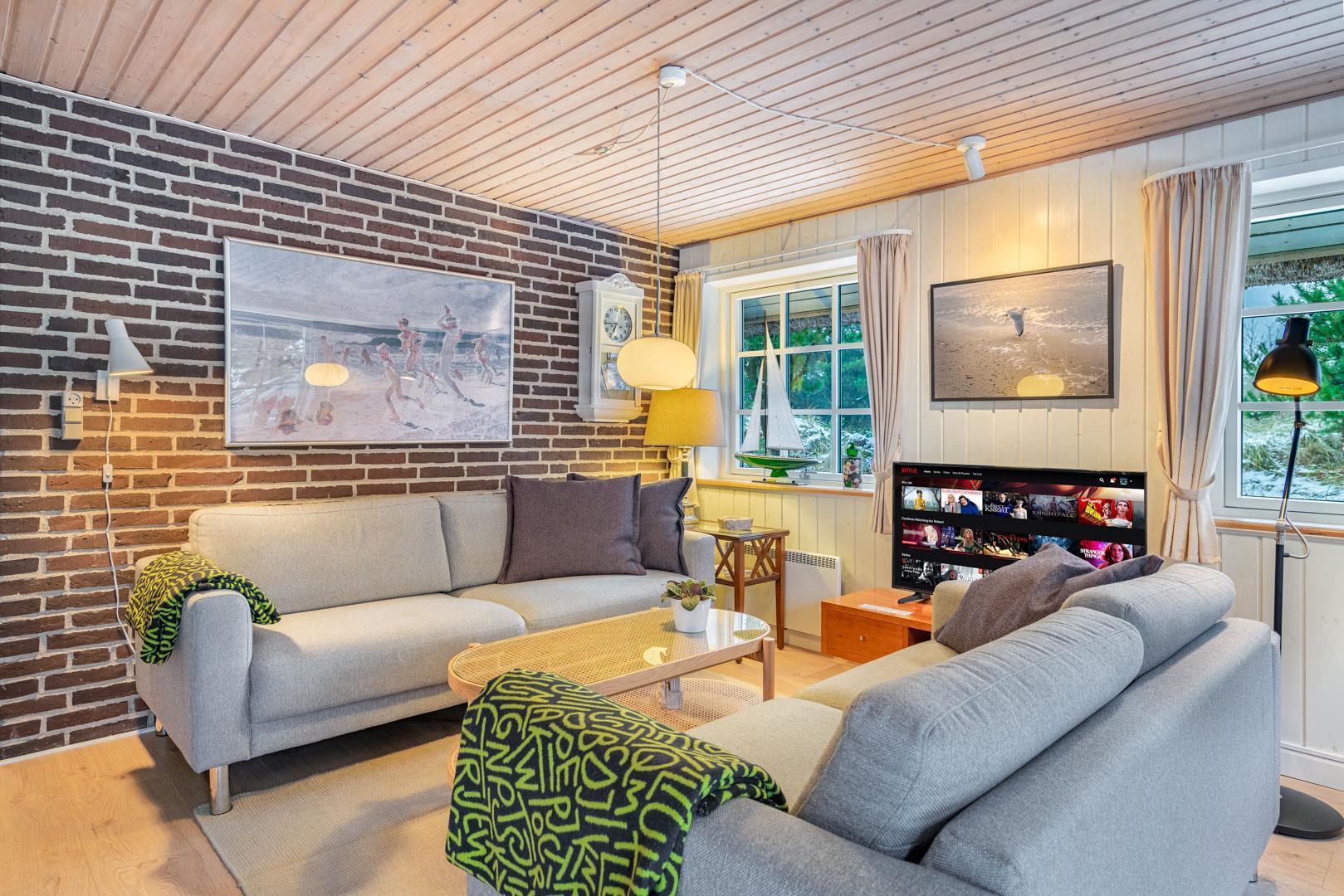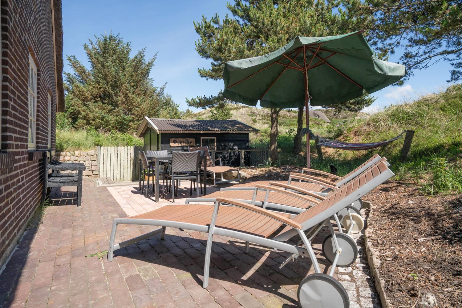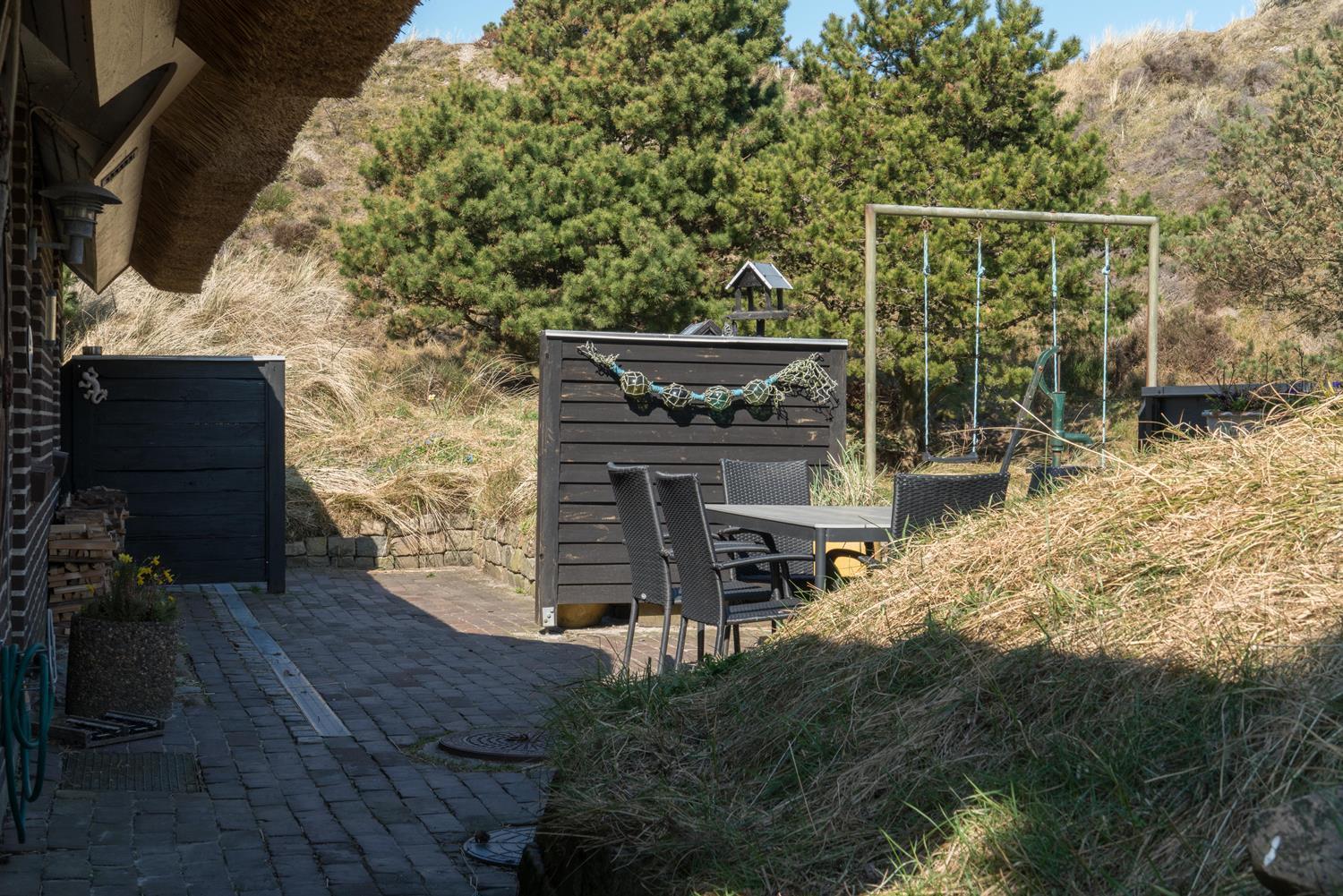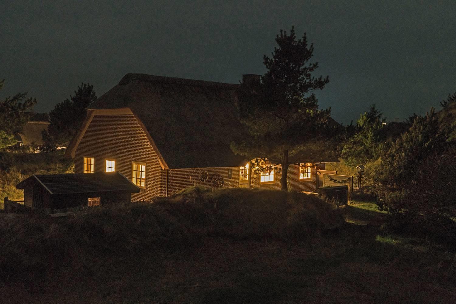 Hyggeligt og smagfuldt indrettet feriehus med stråtag beliggende på en dejlig rolig klitgrund for enden af blind vej. Huset er indrettet med gode møbler og fremtræder overalt meget velholdt. Feriehuset er løbende renoveret. Feriehuset er omgivet af flere dejlige og læ fulde terrasser.