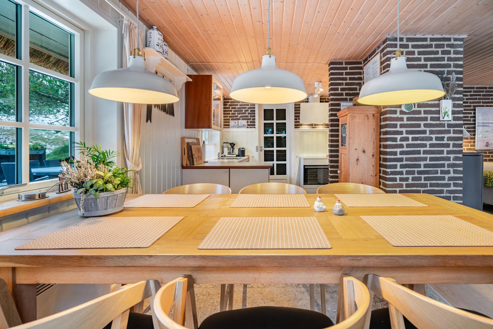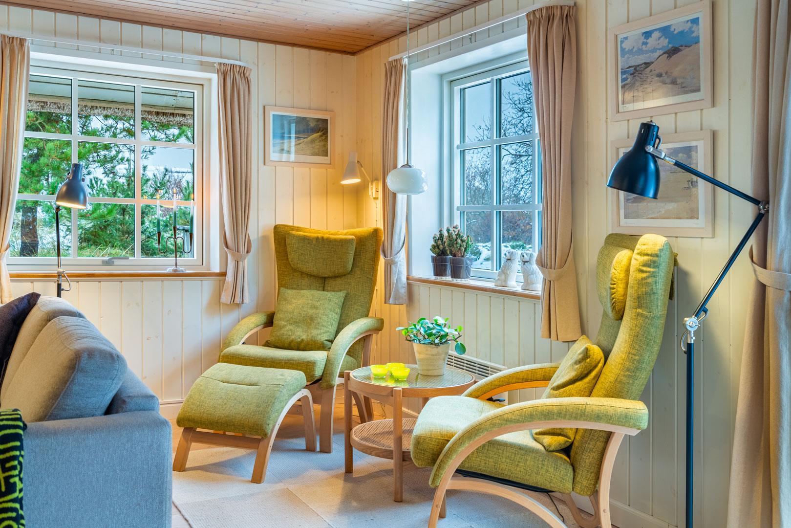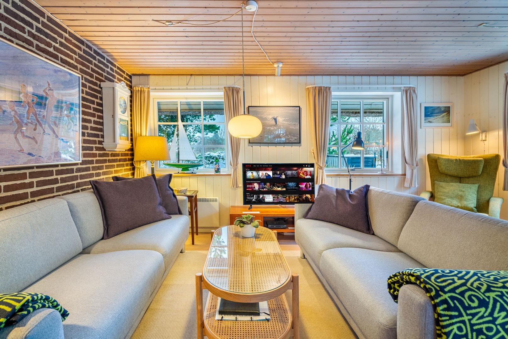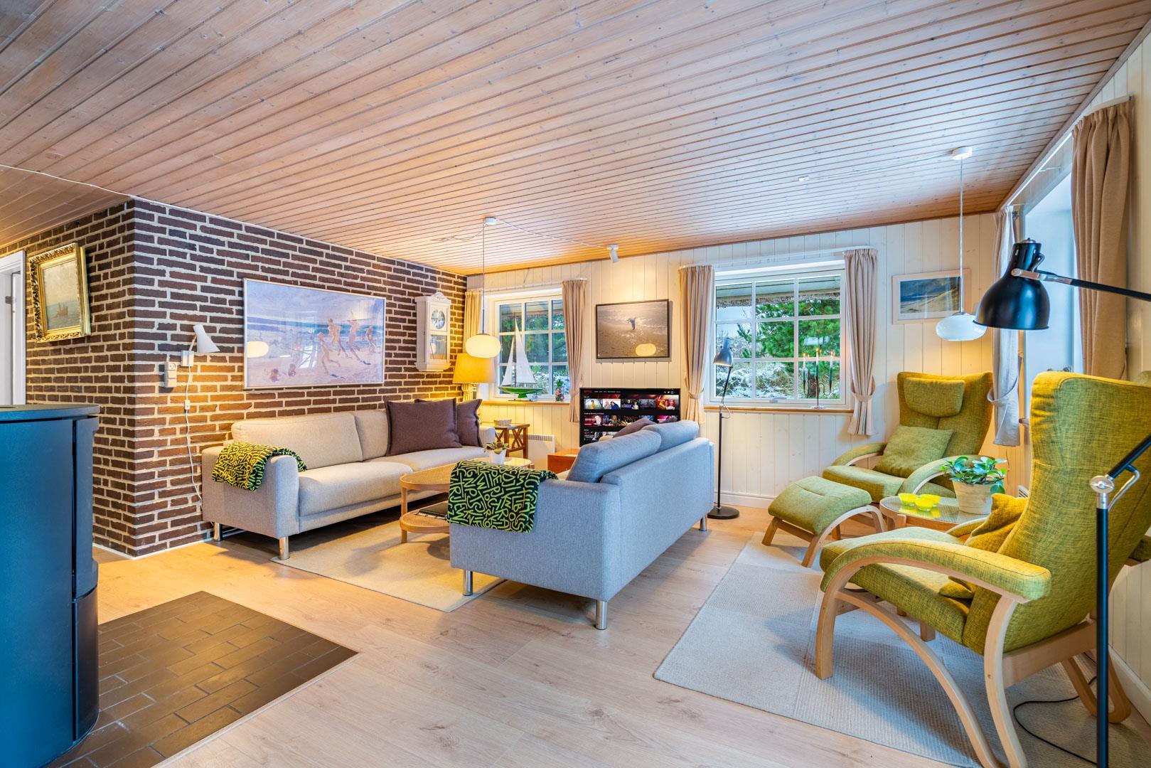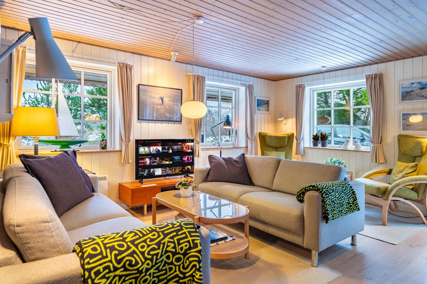 Hyggeligt og smagfuldt indrettet feriehus med stråtag beliggende på en dejlig rolig klitgrund for enden af blind vej. Huset er indrettet med gode møbler og fremtræder overalt meget velholdt. Feriehuset er løbende renoveret. Feriehuset er omgivet af flere dejlige og læ fulde terrasser.