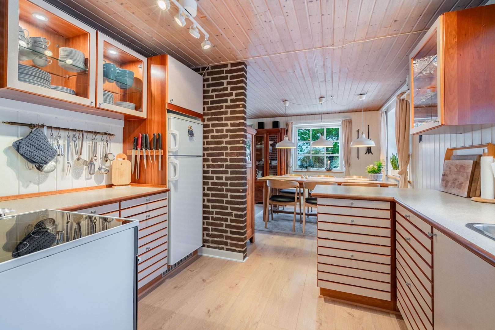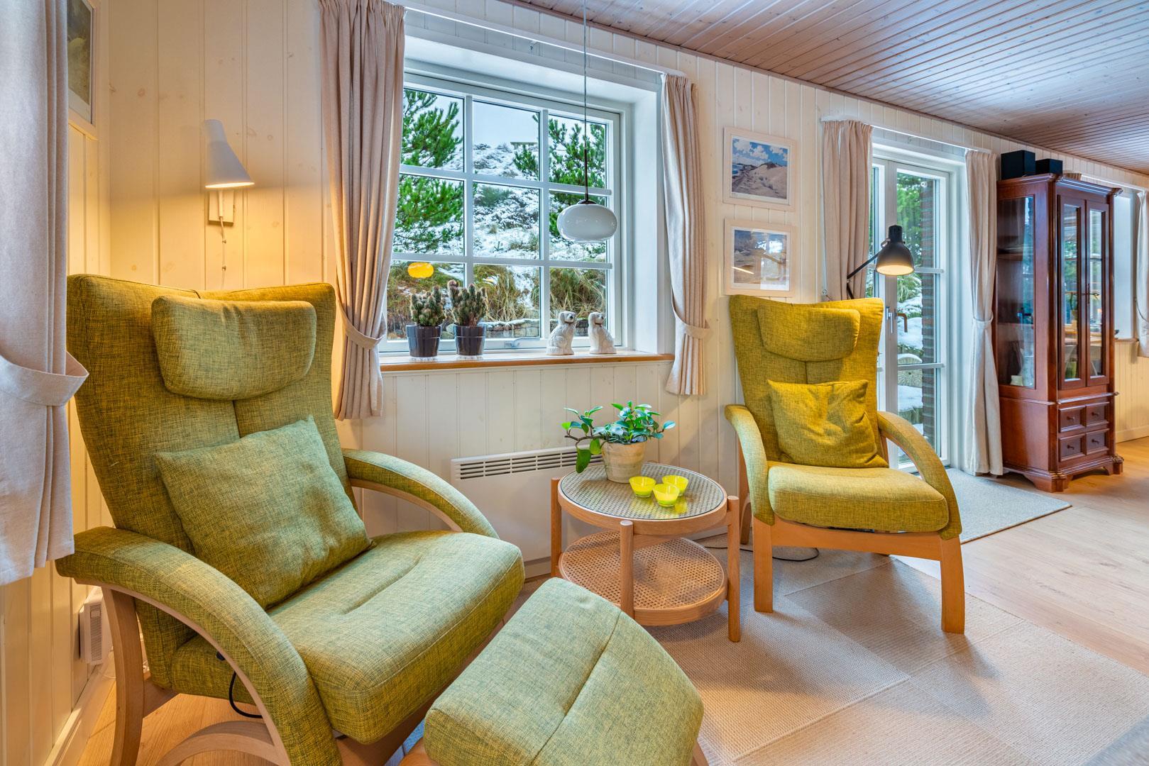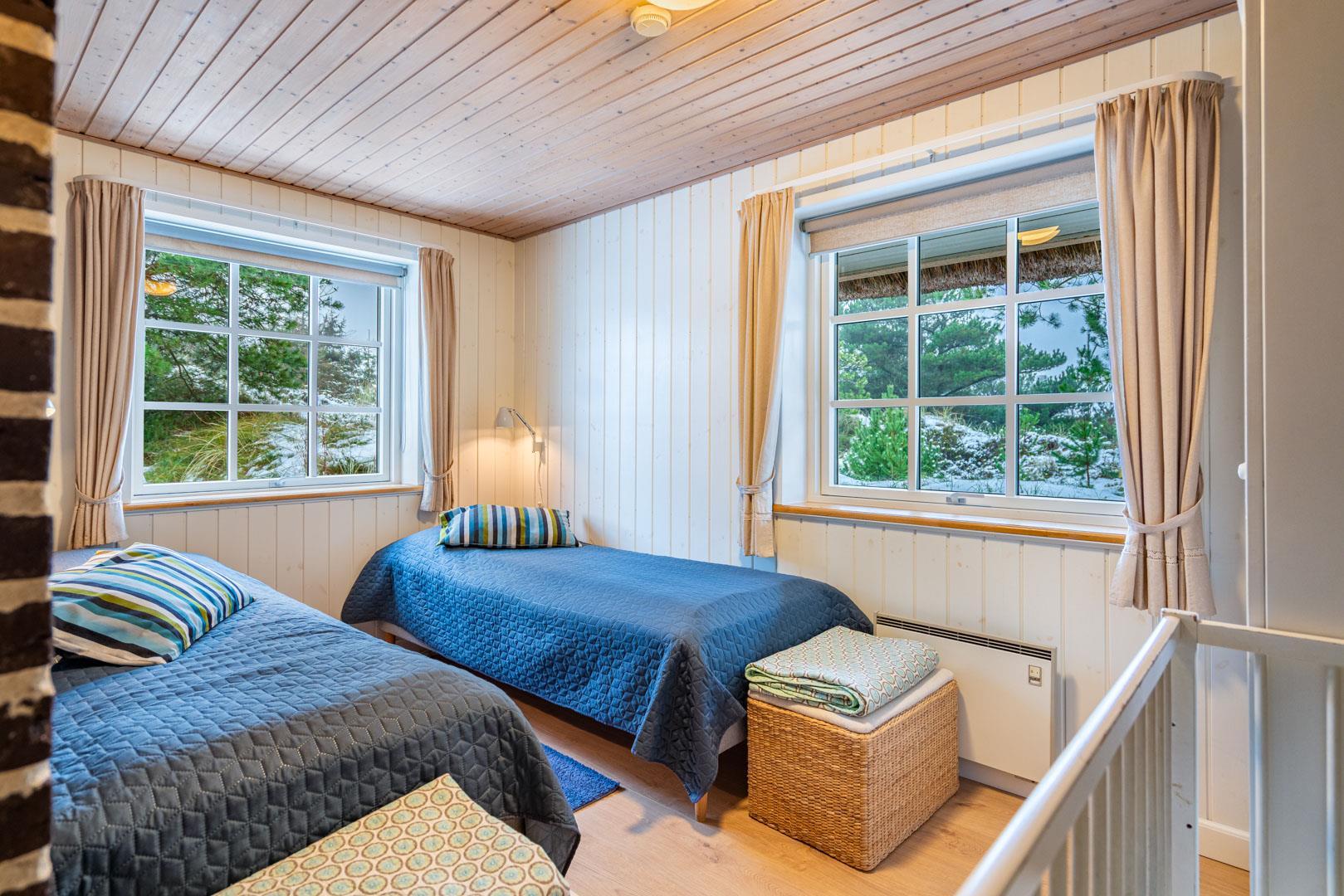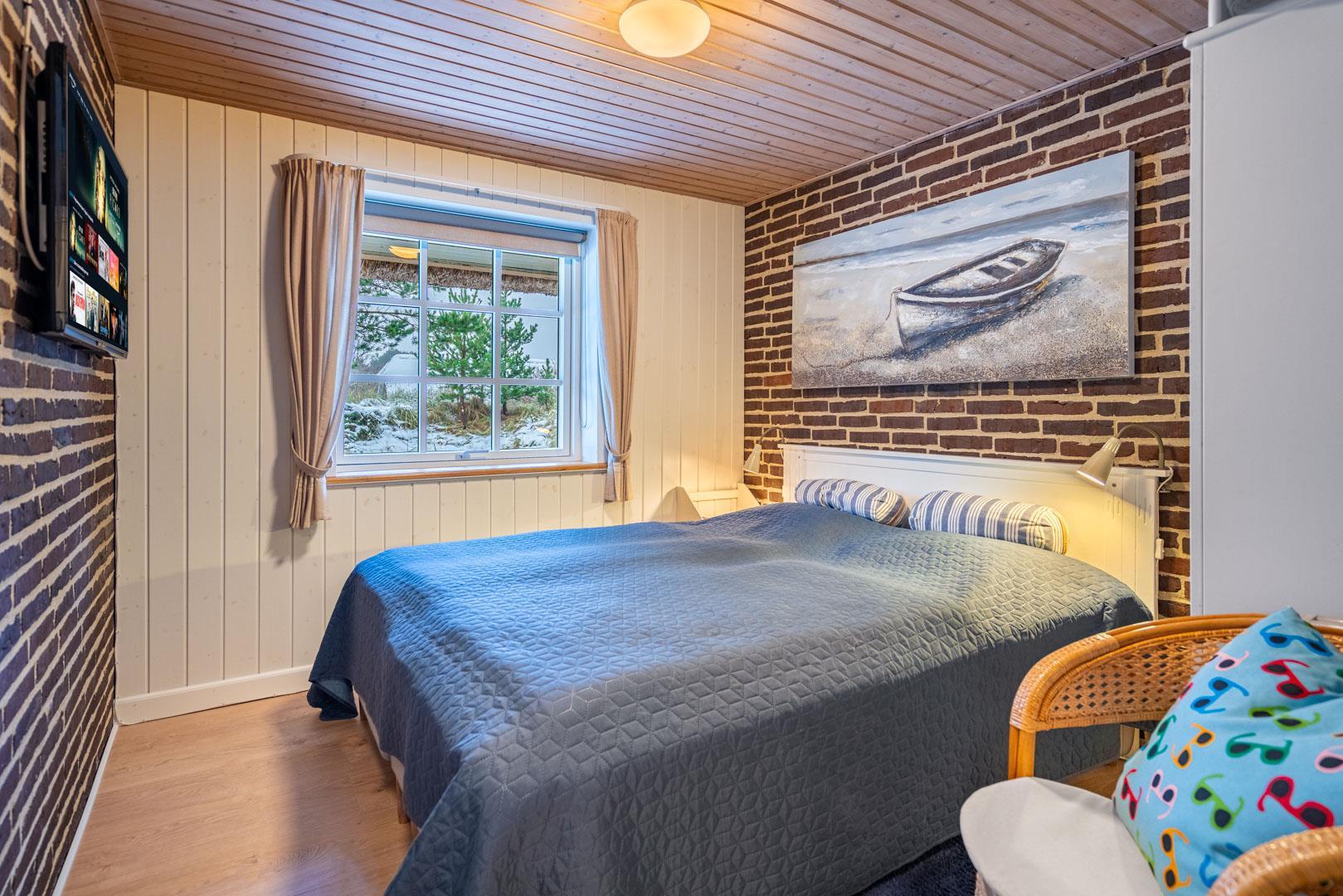 Hyggeligt og smagfuldt indrettet feriehus med stråtag beliggende på en dejlig rolig klitgrund for enden af blind vej. Huset er indrettet med gode møbler og fremtræder overalt meget velholdt. Feriehuset er løbende renoveret. Feriehuset er omgivet af flere dejlige og læ fulde terrasser.