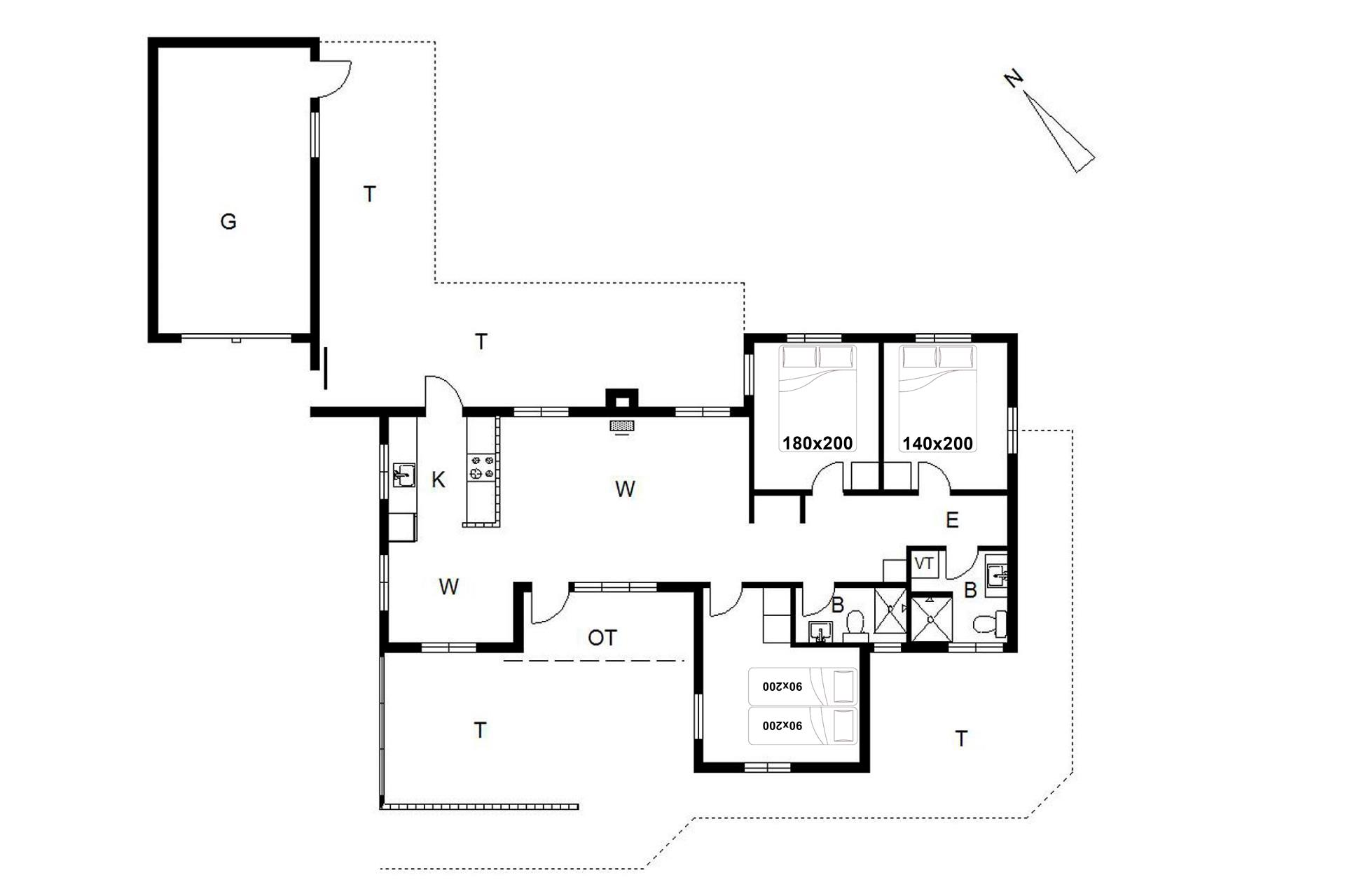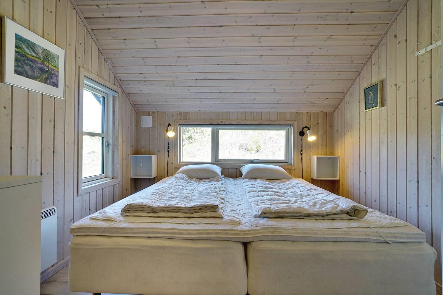 Sengestørrelse: 1 dobbeltseng med 2 madrasser 90 x 200 cm + 1 dobbeltseng 180 x 200 cm + 1 dobbeltseng 140 x 200 cm.