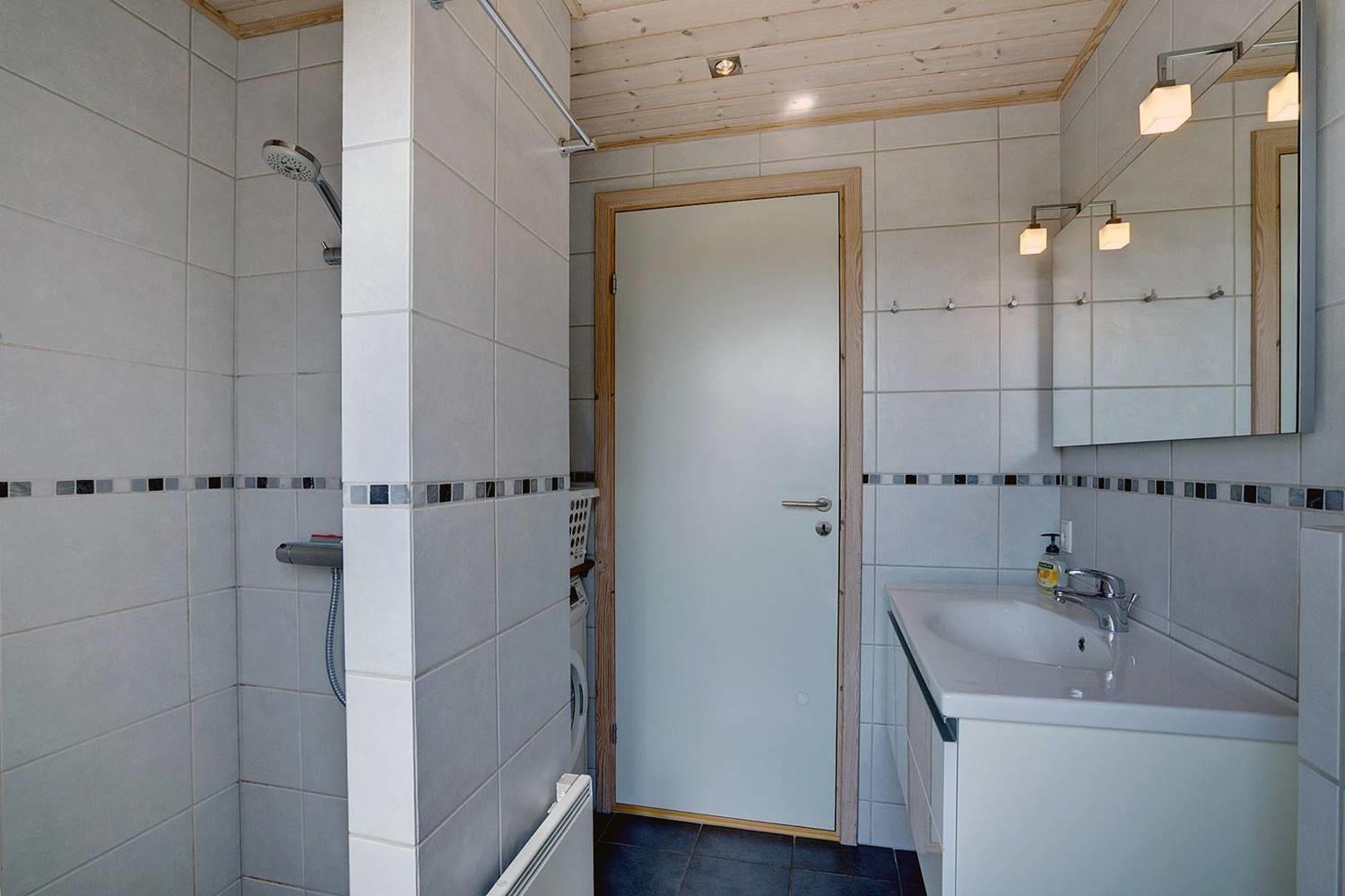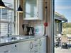 Sommerhuset er løbende renoveret og byder på to flotte badeværelser og et moderne, veludstyret køkken i åben forbindelse med den hyggelige stue. Her finder du kvalitetsmøbler samt direkte adgang til en delvist indhegnet terrasse med læskærm – ideel til lange sommeraftener.