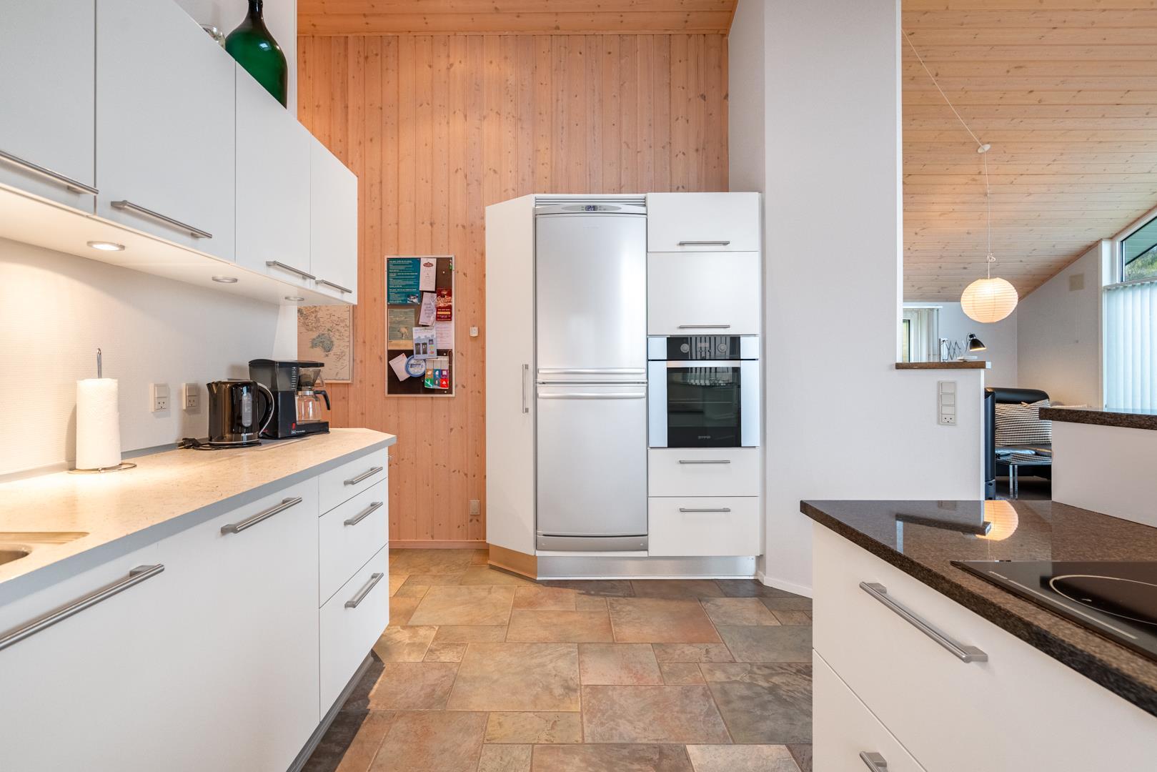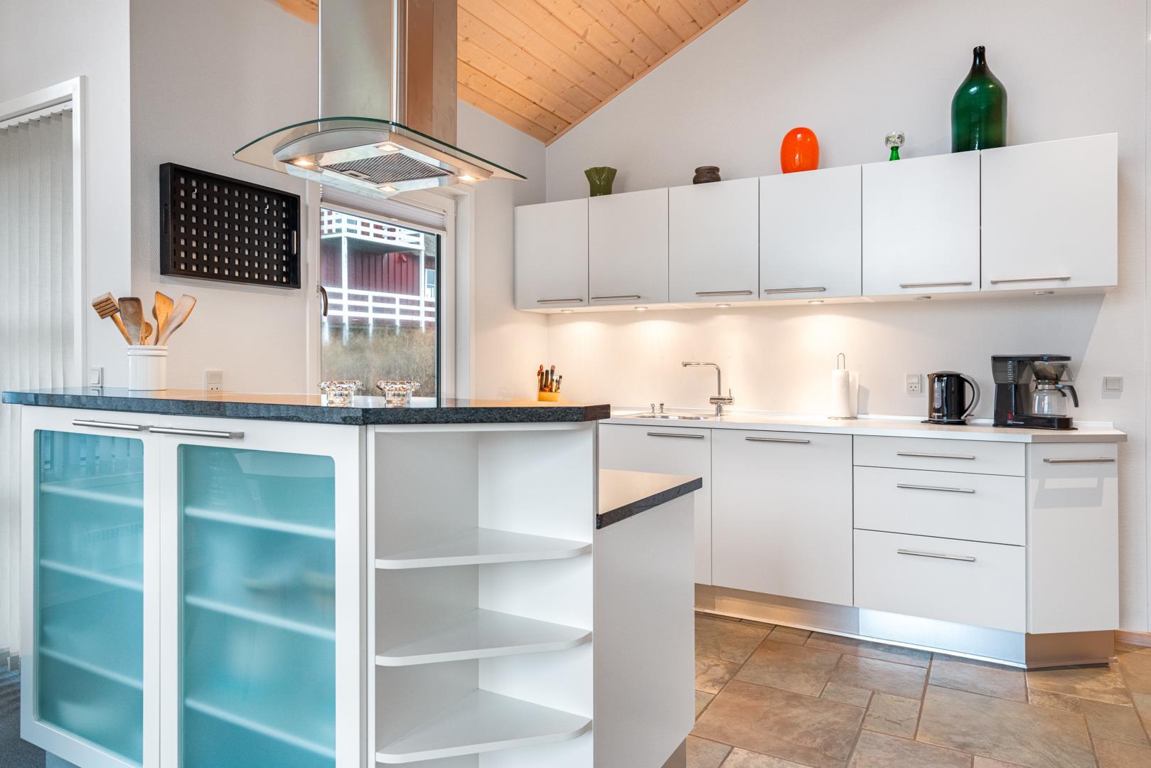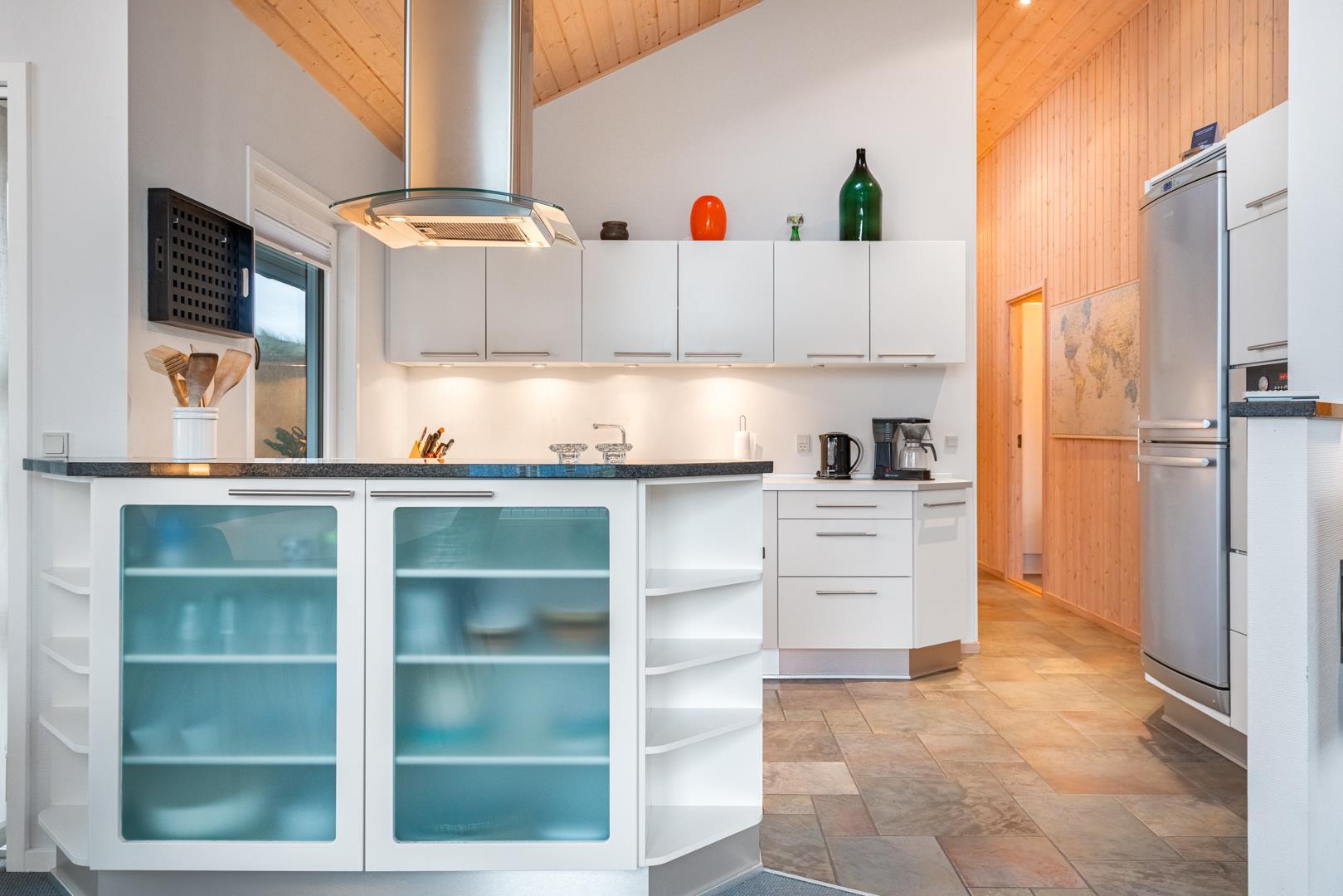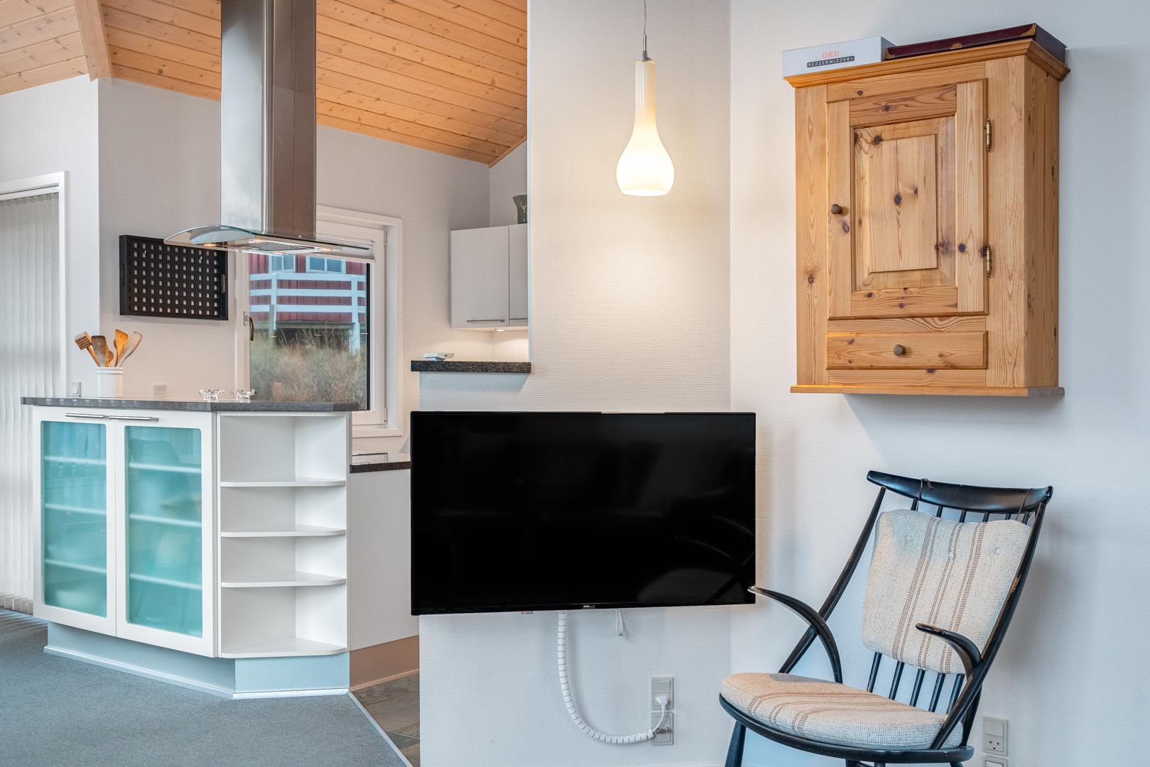 Roligt hævet, på en klitgrund i hjertet af Henne Strand og få minutters gang fra Vesterhavet, findes dette yderst velholdte og charmerende feriehus. Huset har en pragtfuld udsigt over byen og klitlandskabet. Huset er indrettet med gulvvarme, klimaanlæg samt brændeovn og har 2 badeværelser med bruser. Fra stuen er der udgang til en læfyldt østvendt terrasse, ligesom huset har en terrasse mod sydvest. Det veludstyrede køkken er i åben forbindelse med opholdsstuen, som er indrettet med gode og komfortable møbler. 3 soveværelser med plads til babyseng alle udstyret med gode senge. Der er 2 depotrum, det ene med ekstra køleskab og fryser.