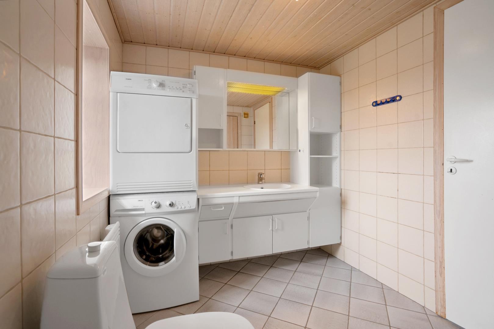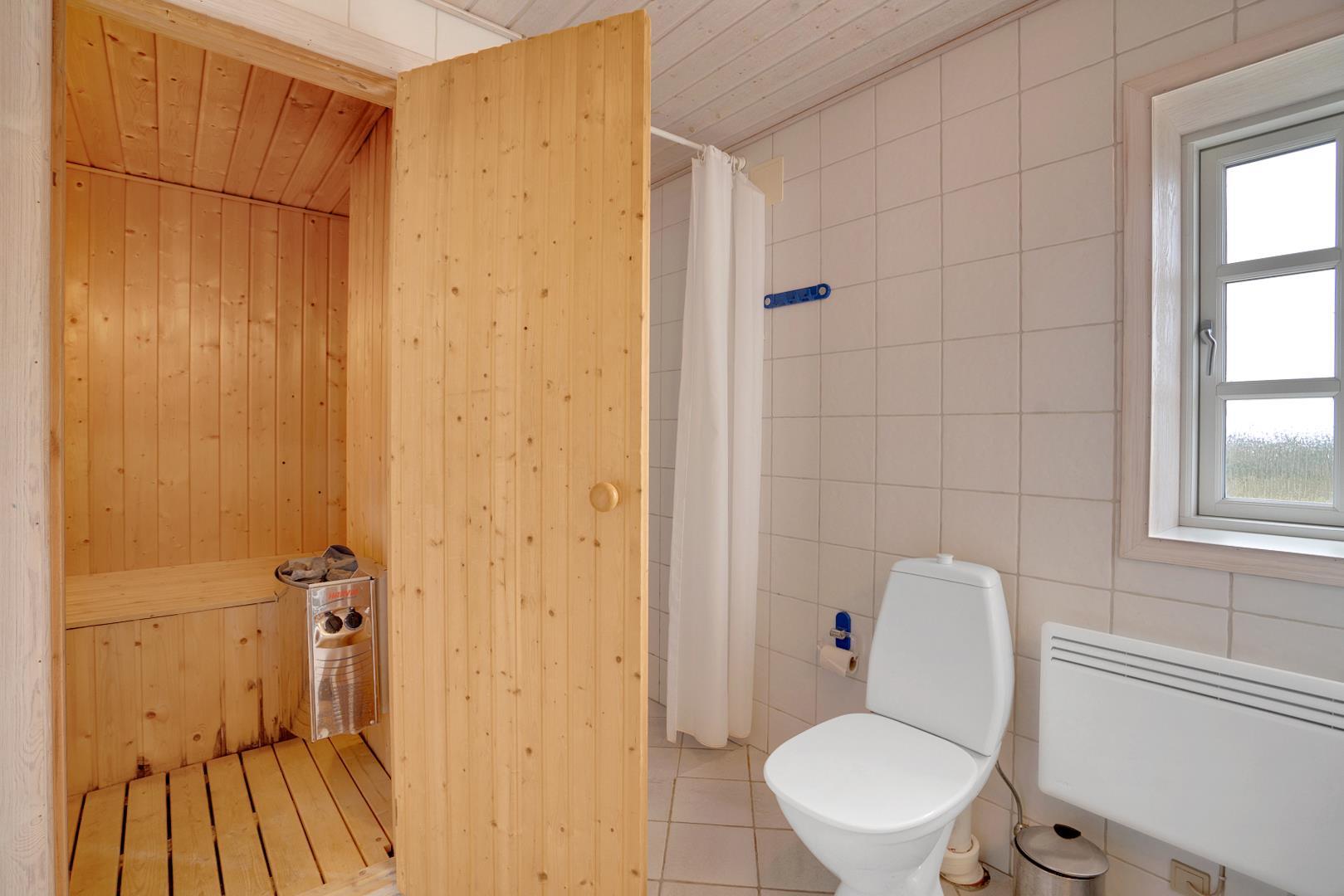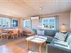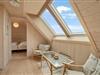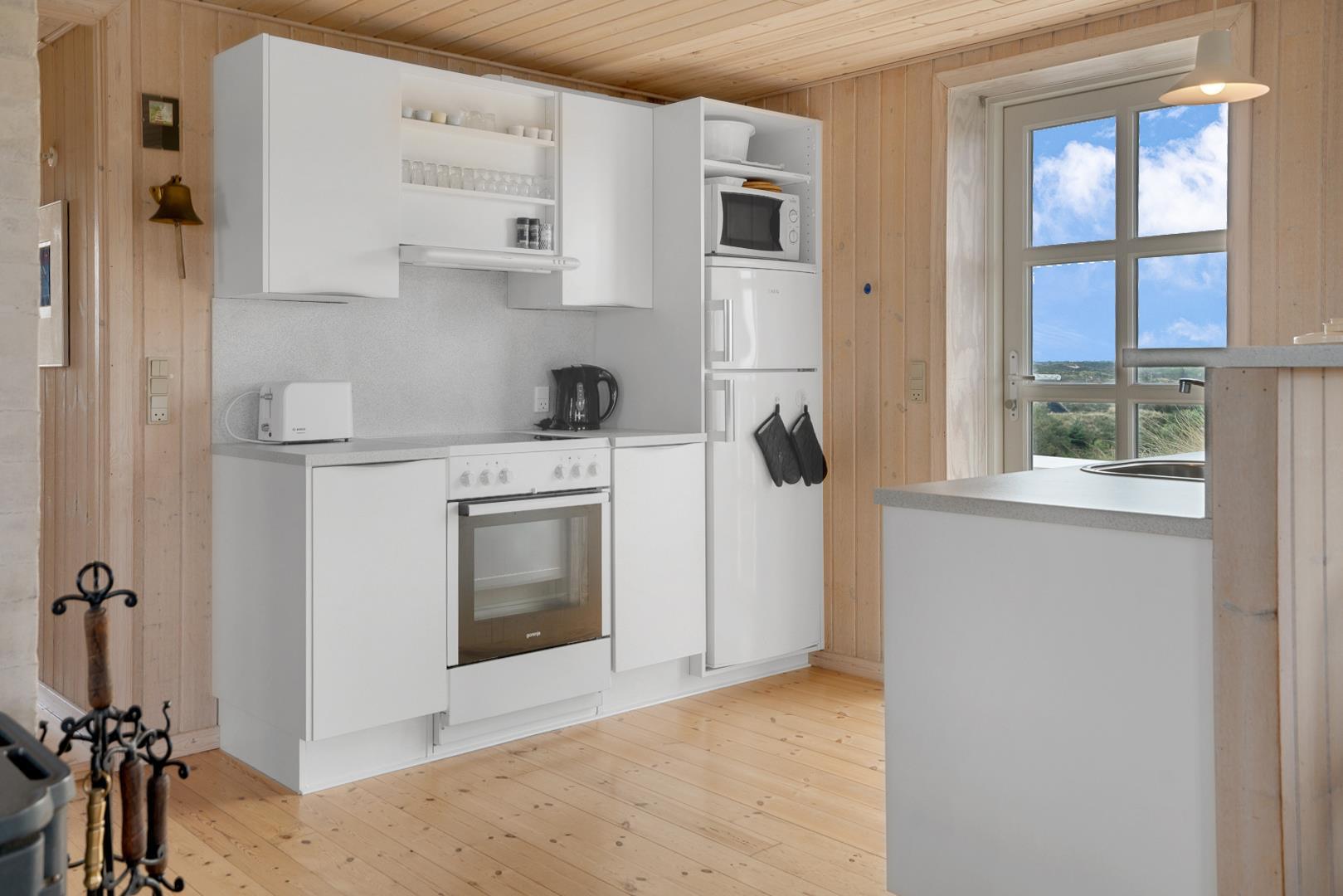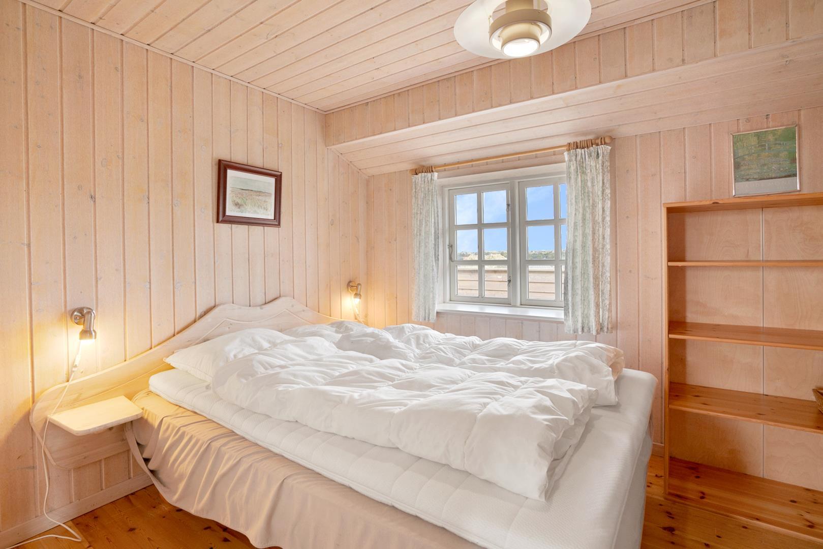 Den hyggelige stue, er lagt sammen med køkkenet. Når brændeovnen tændes op, breder varmen sig til hele huset. På 1. etage er der 2 lyse og dejlige soverum, og et lille læse hjørne ved vinduet hvorfra man kan se havet. I badeværelset er der også en sauna.