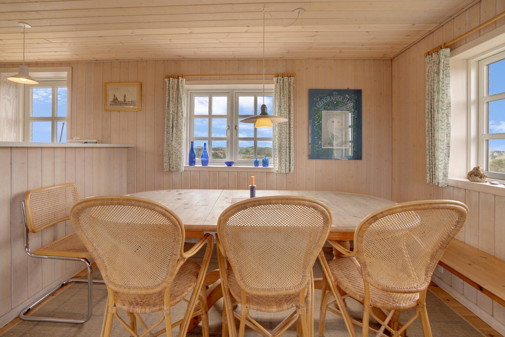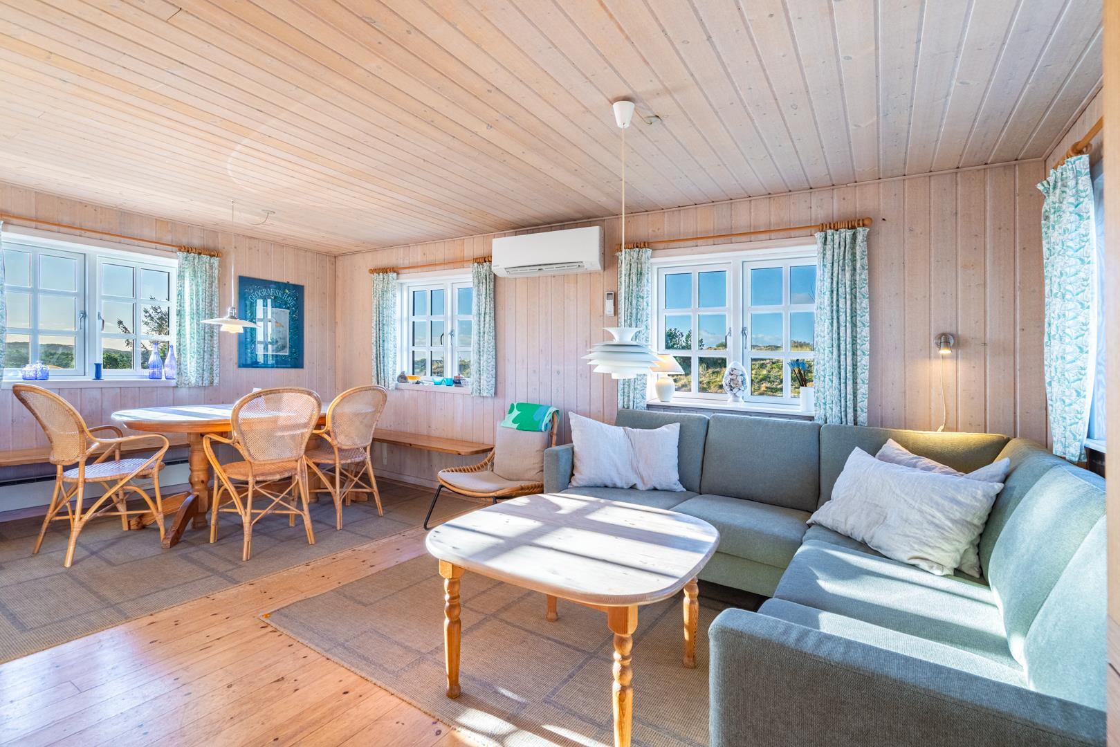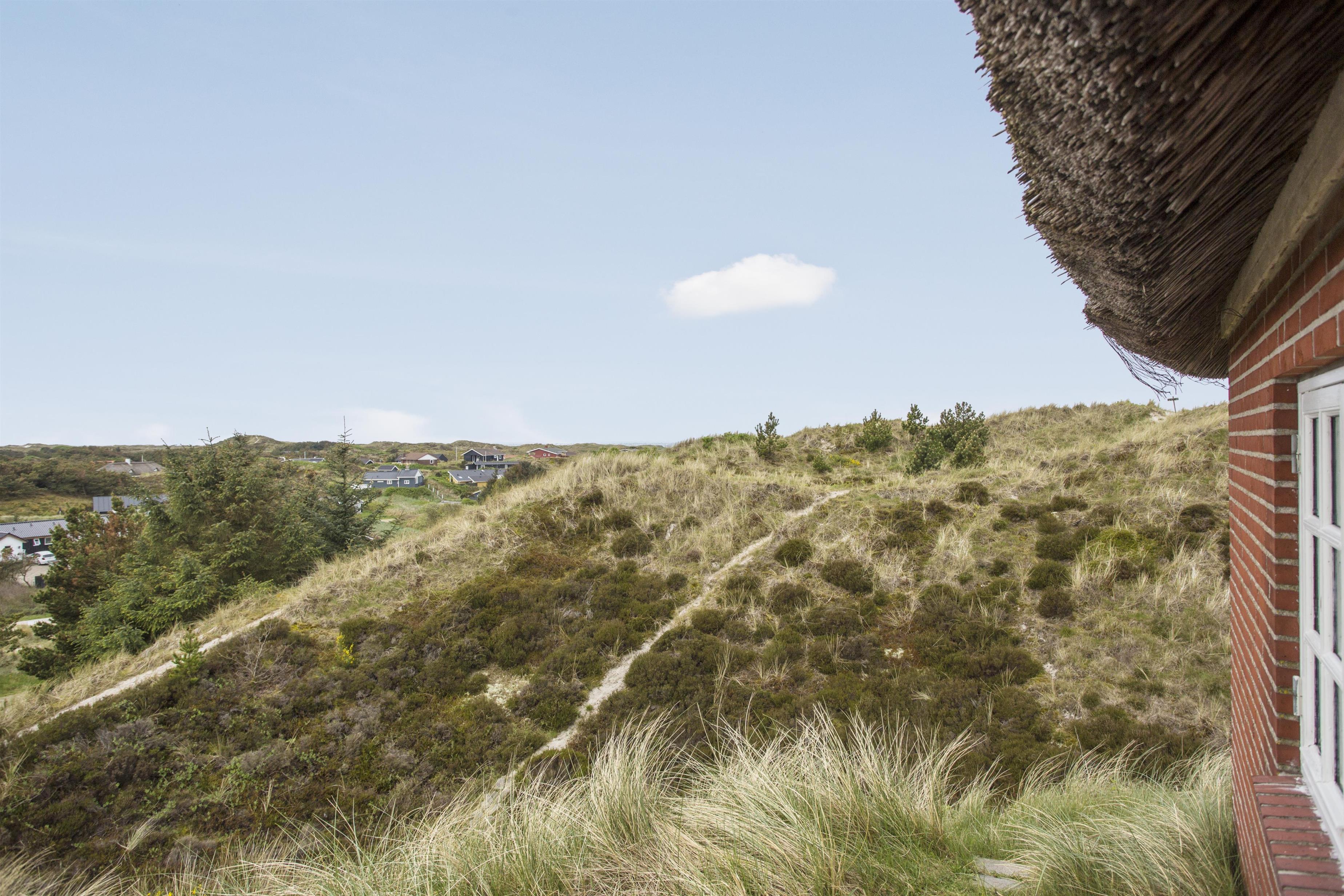 I dette hus troner man over byen Henne Strand. Fra toppen af klitten har man en smuk udsigt over byen, klitter og hede. Fra terrassen kan man endda ane Vesterhavet.