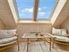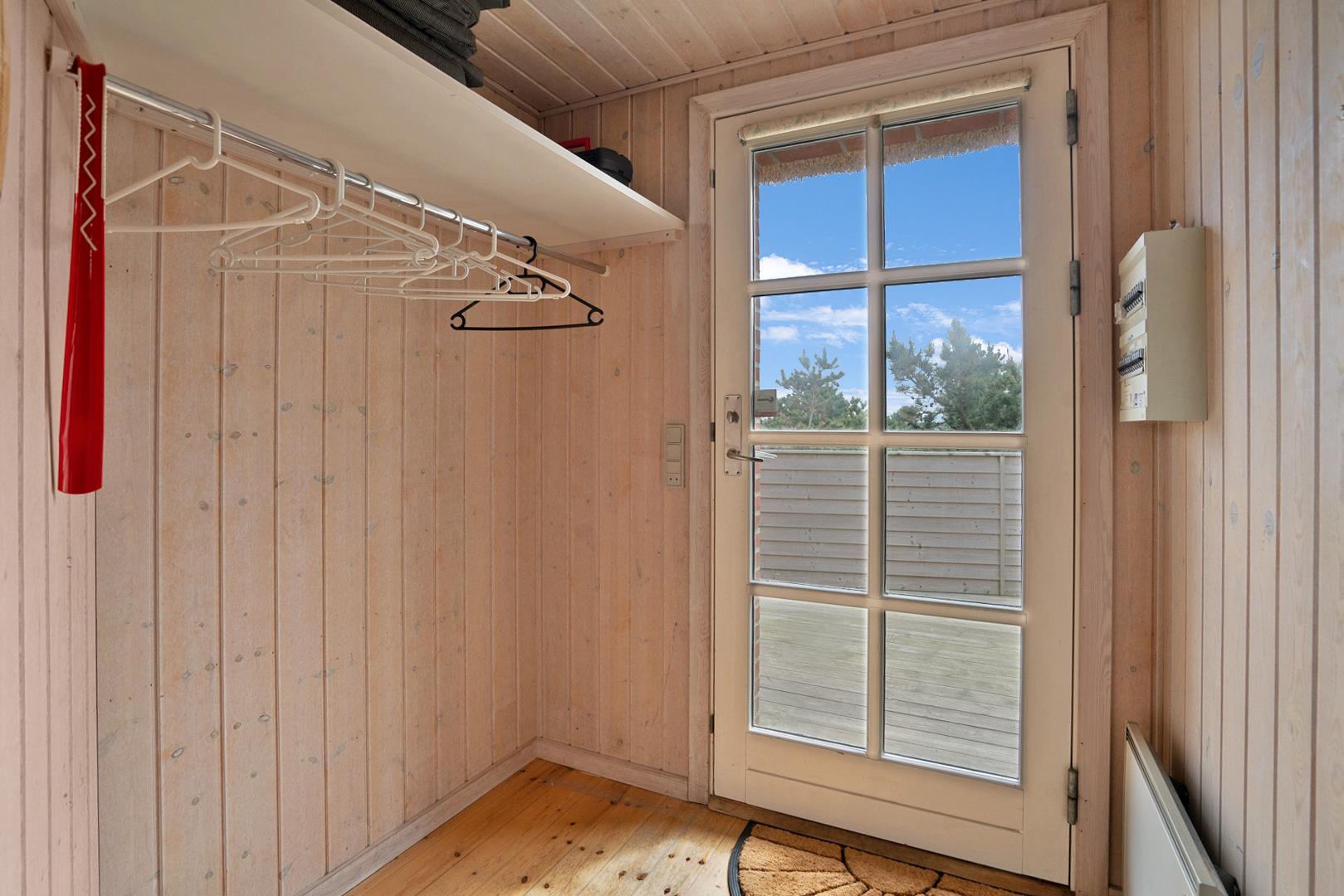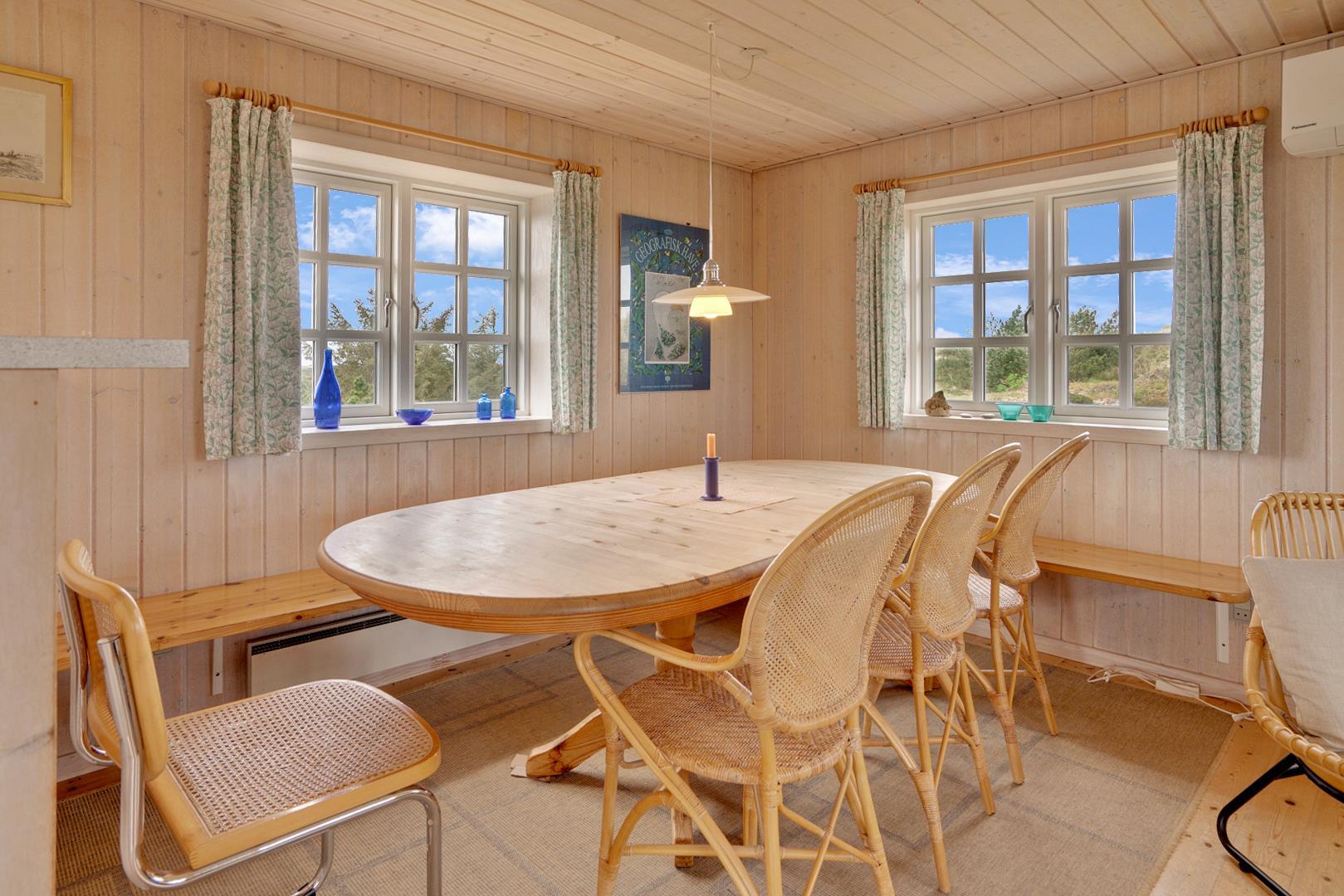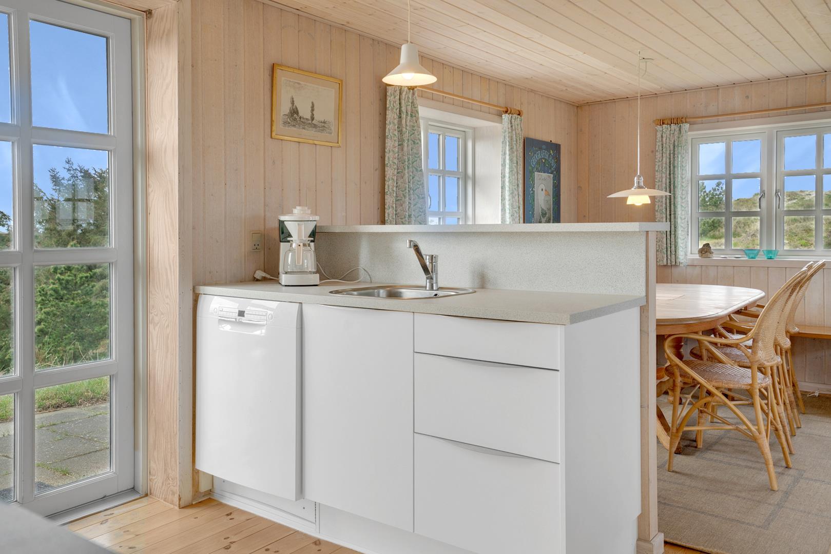 I dette hus troner man over byen Henne Strand. Fra toppen af klitten har man en smuk udsigt over byen, klitter og hede. Fra terrassen kan man endda ane Vesterhavet.