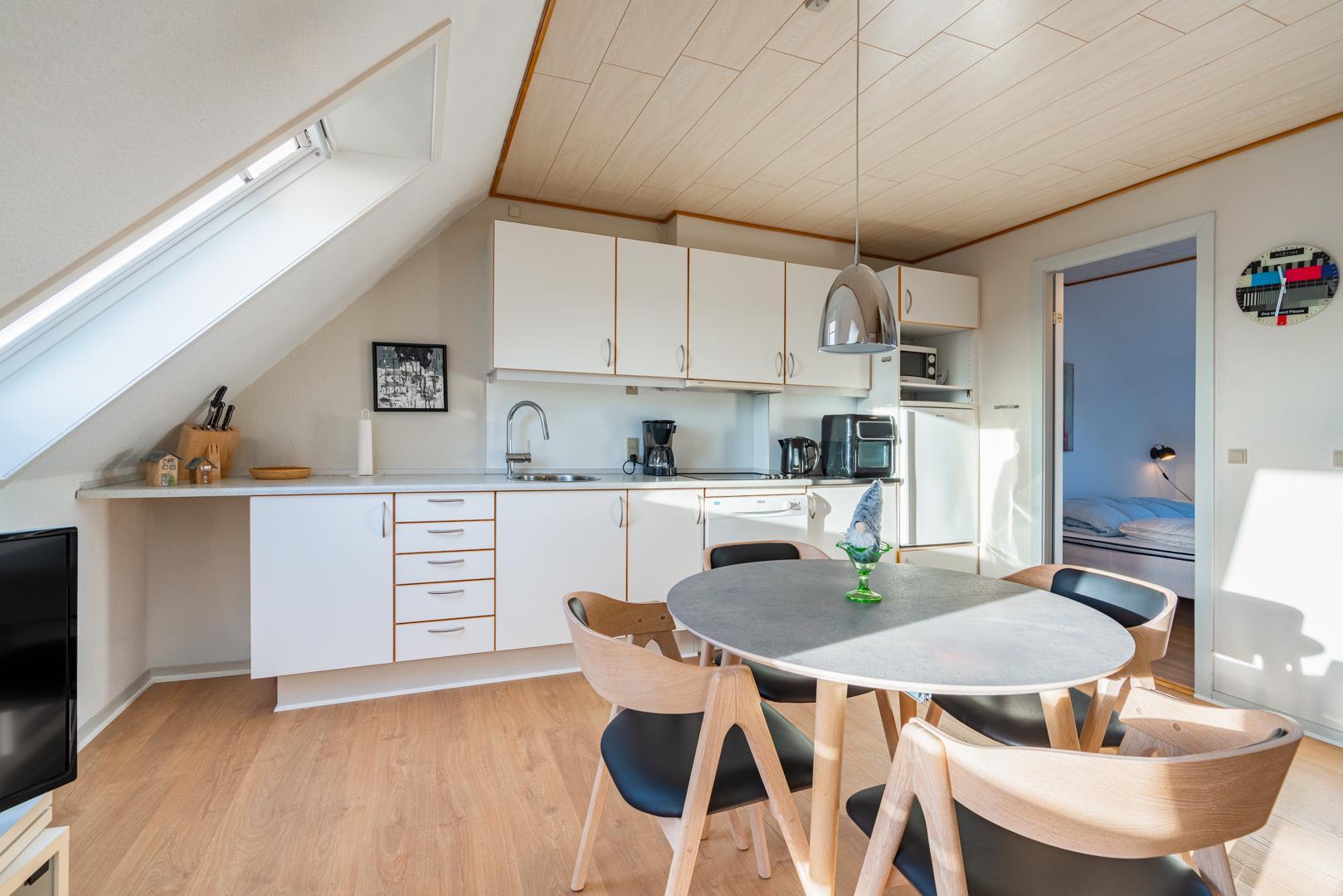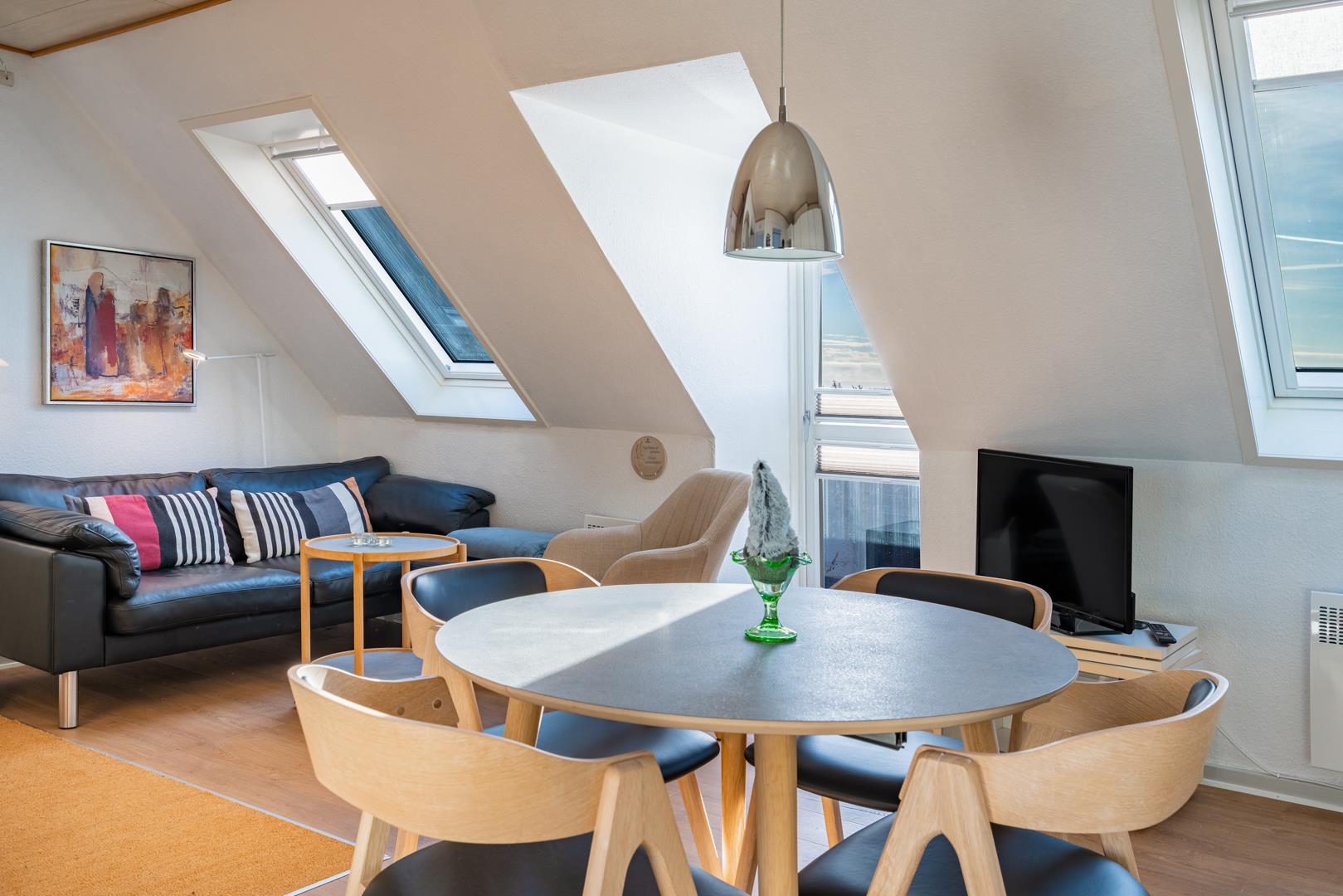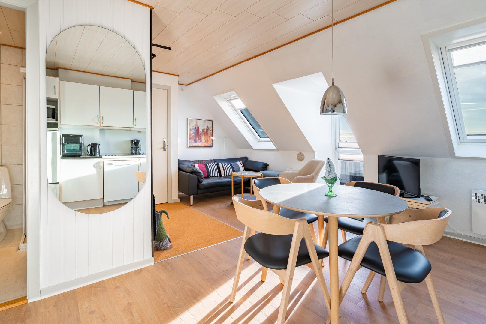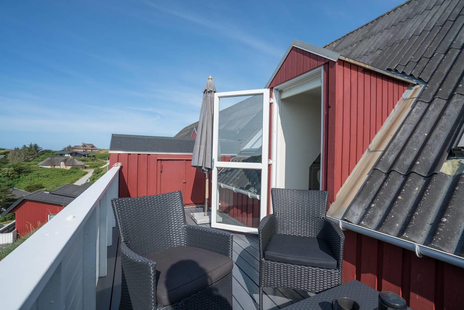 Hyggelig ferielejlighed i Henne Strand med sydvendt terrasse og en enestående udsigt til hav og klitter.