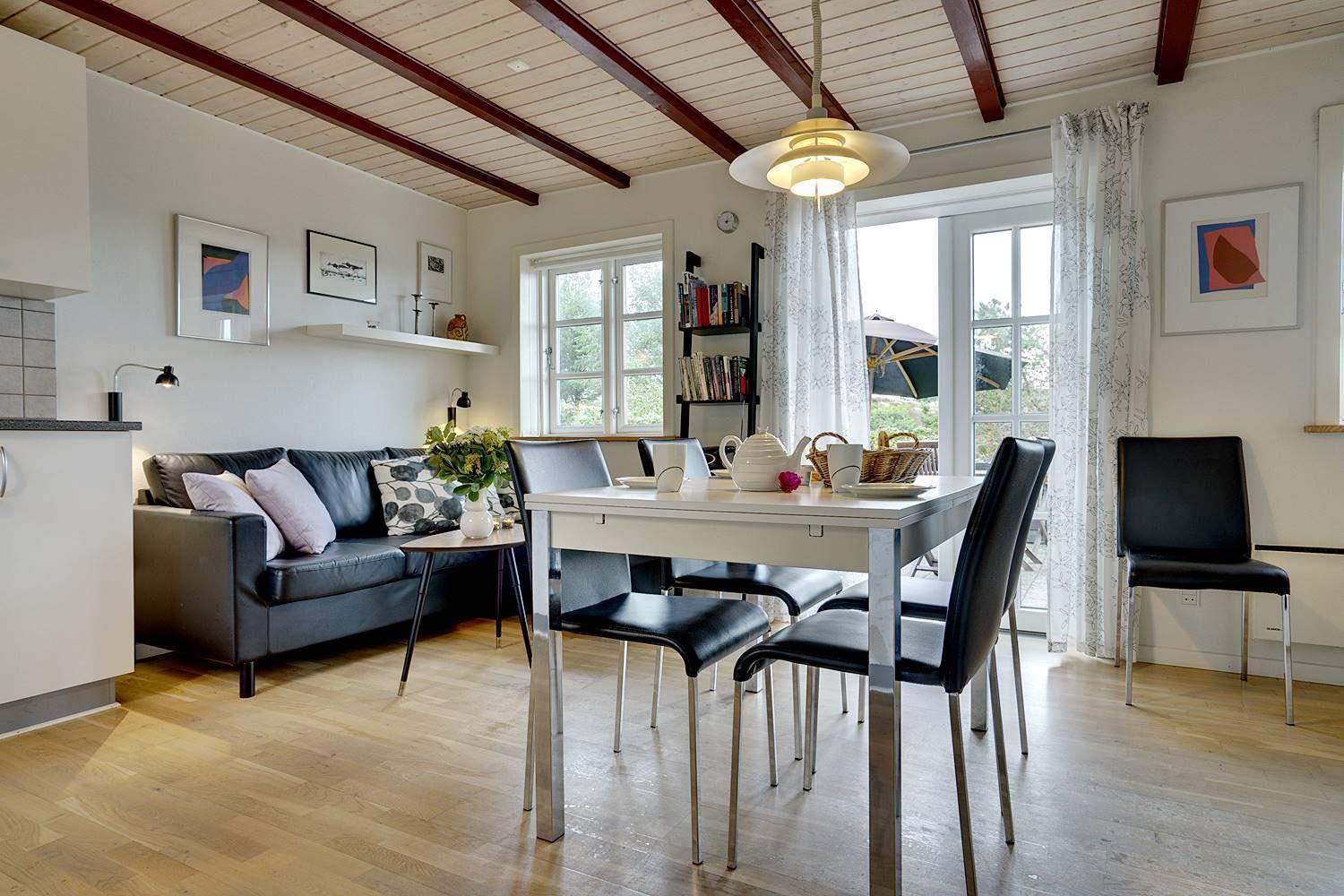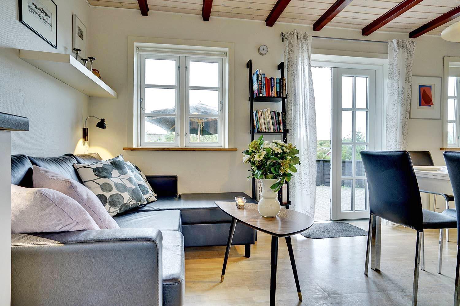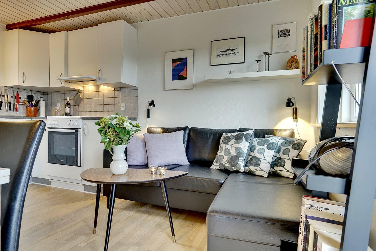 Et lille hyggeligt feriehus der er egnet for 2 personer eller den lille familie. Huset fremstår lyst og venligt og den høje beliggenhed give mulighed for en flot udsigt over området. Ferien kan også nydes på den ugenerede terrasse bag huset. Pga. af trapper op til huset er det ikke egnet for gangbesværede.