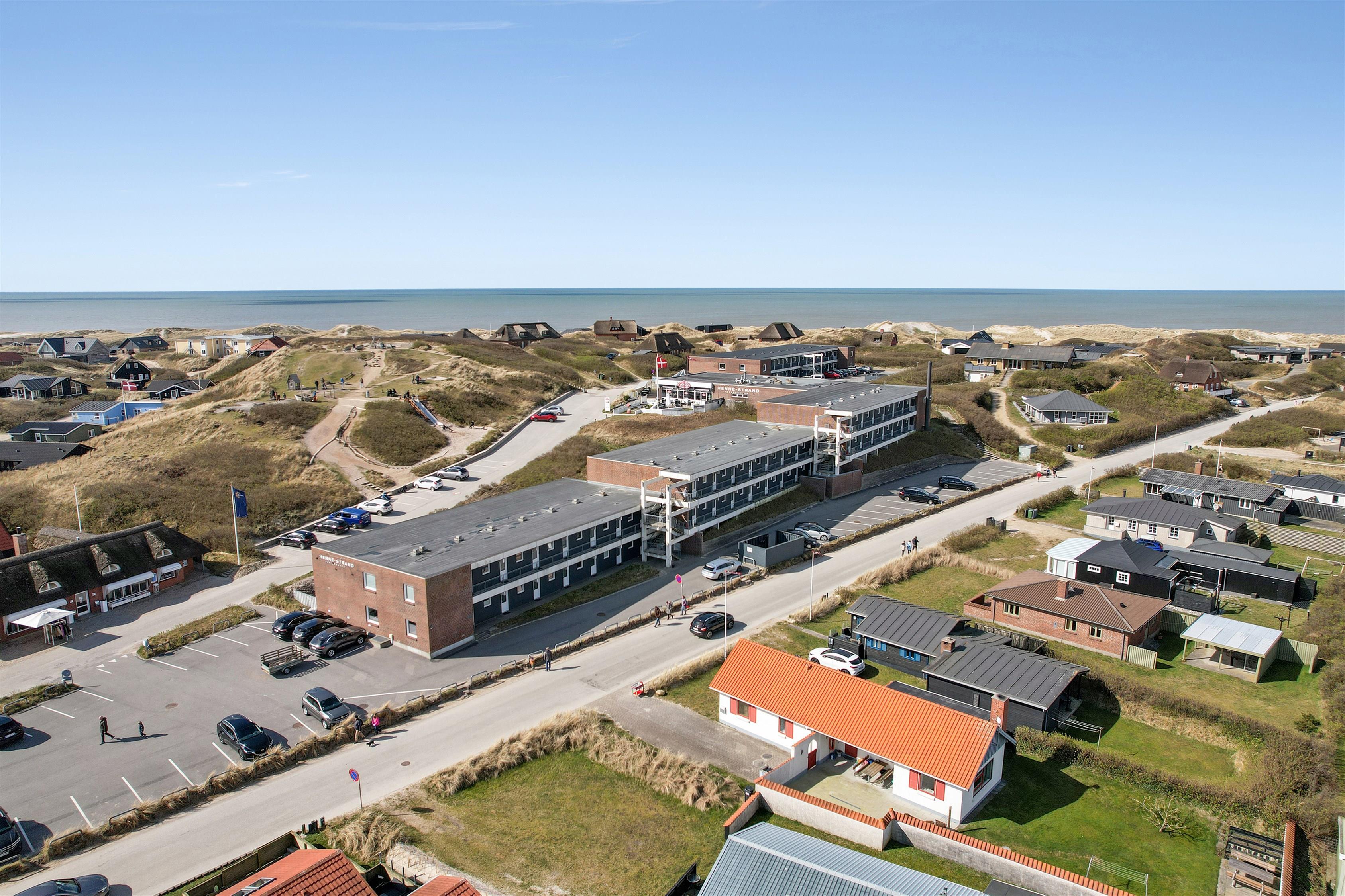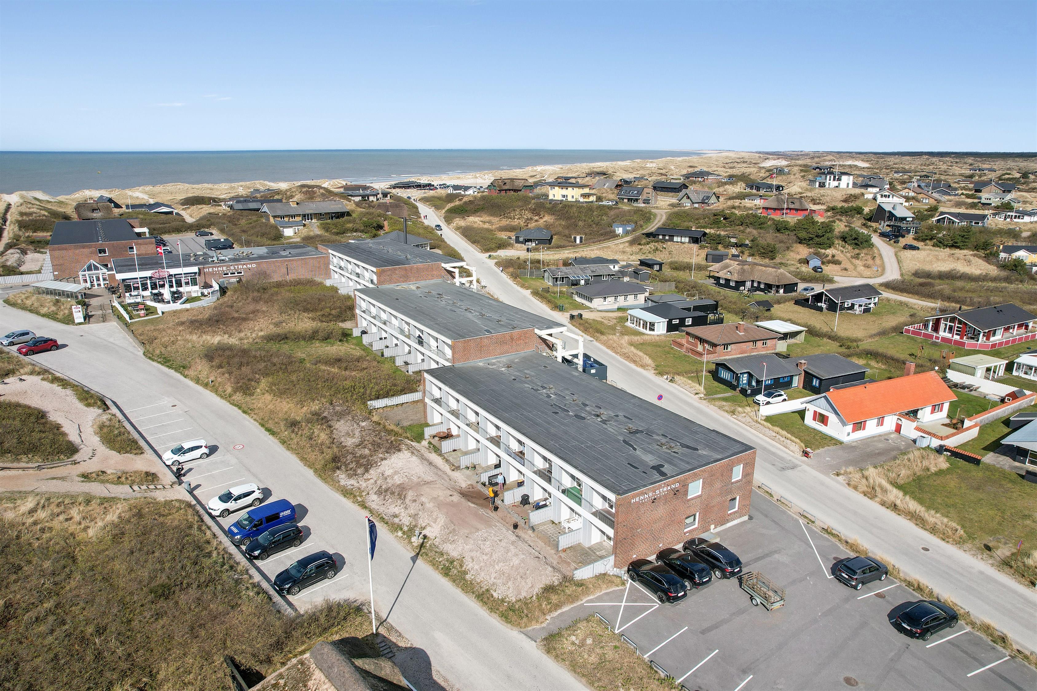 Henne Strand Feriecenter er en dejlig oase med mange muligheder og masser af spisesteder. Om du er til en ægte Strandby med masser af indkøbsmuligheder, aktiv ferie eller blot ønsker at bo tæt ved Vesterhavet så er der alle muligheder i Henne Strand. På selve feriecenteret er der mange faciliteter. Spiller du golf ligger der en 18 hullers golfbane i Henne By - kun 3 km meter fra lejligheden. Her der også findes en butik med rav, ridecenter og Henne Kirkeby Kro som er en enestående Michelin gourmetoplevelse. I Blåbjerg Plantage er der en fantastisk mountainbikerute og dejlige afmærkede stier – som kan benyttes i alt slags vejr både til fods og på cykel. Den genoprettede Filsø ligger sydøst fra Henne Strand og tilbyder en unik natur oplevelse i særklasse. Hertil kommer at Vesterhavet ligger 150-200 m fra lejlighederne. En oplevelse som hver dag året rundt byder på nye maleriske indtryk.