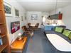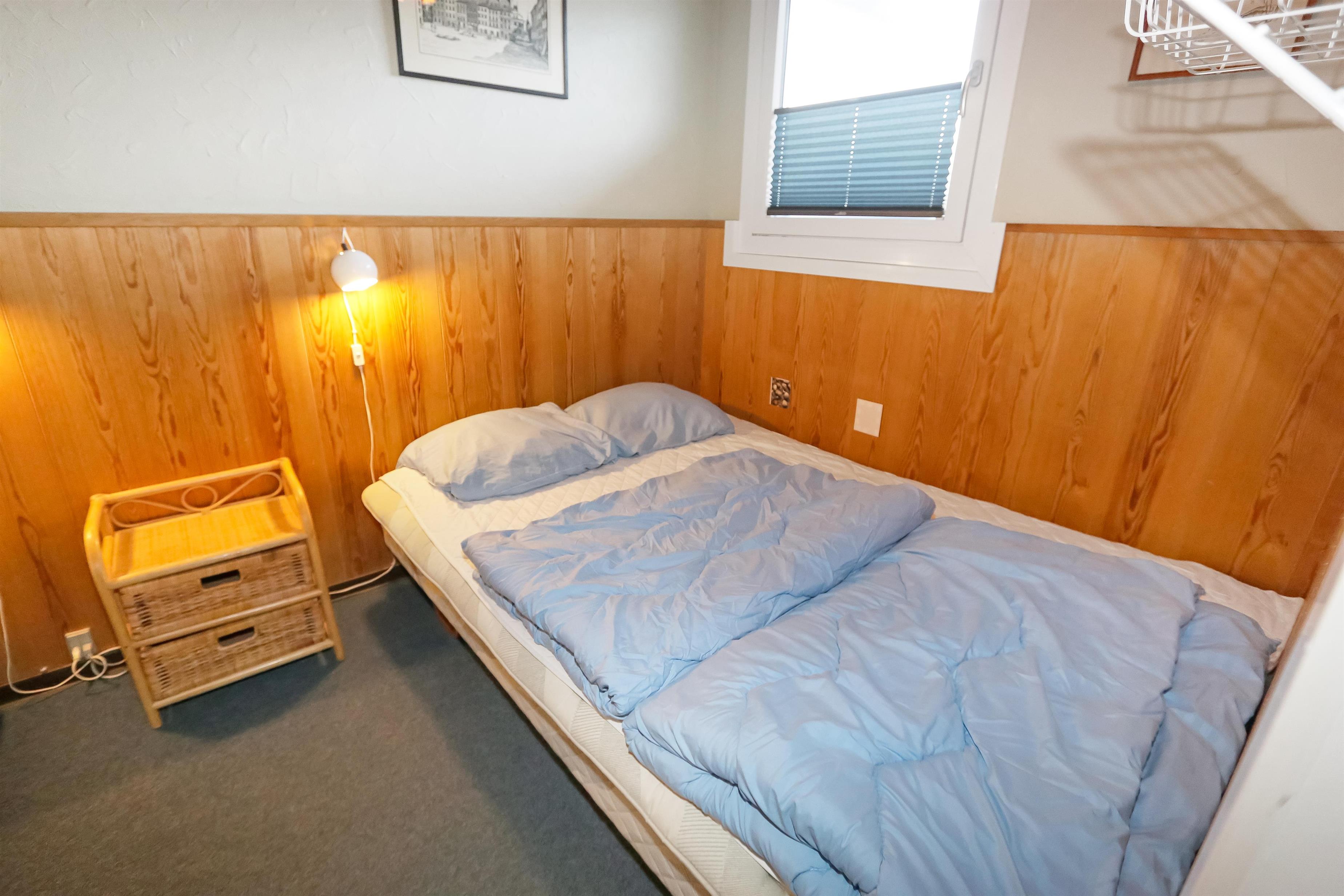 Pæn ferielejlighed til 2 personer beliggende på 1. sal med kombineret køkken og stue. Stuen er indrettet med polstermøbler, kabel-TV og gulvtæppe. Køkken med el-keramisk plade, lille opvaskemaskine, lille miniovn, køleskab med 10 l frostboks, emhætte. 1 soverum: 1DS + 1S og gulvtæppe. Badeværelse med toilet, håndvask og bruser. Fra stuen er der udgang til en lille delvis overdækket balkon med havemøbler. Trappen til 1. sal består af 21 trappetrin.