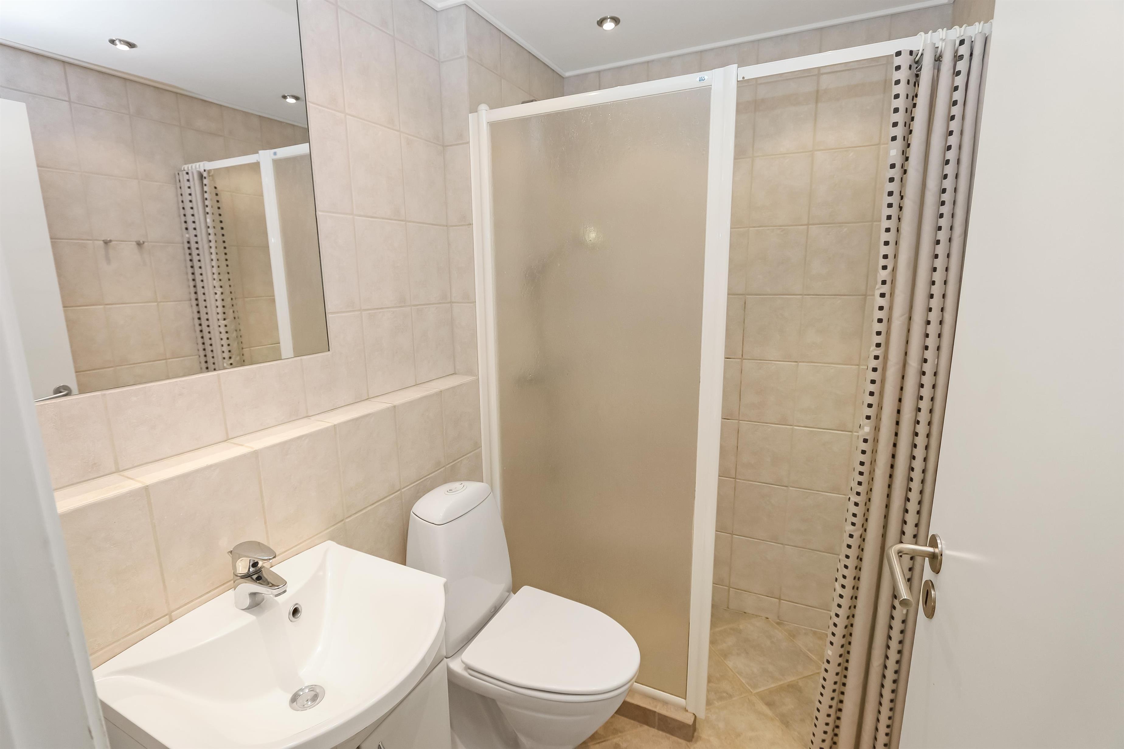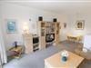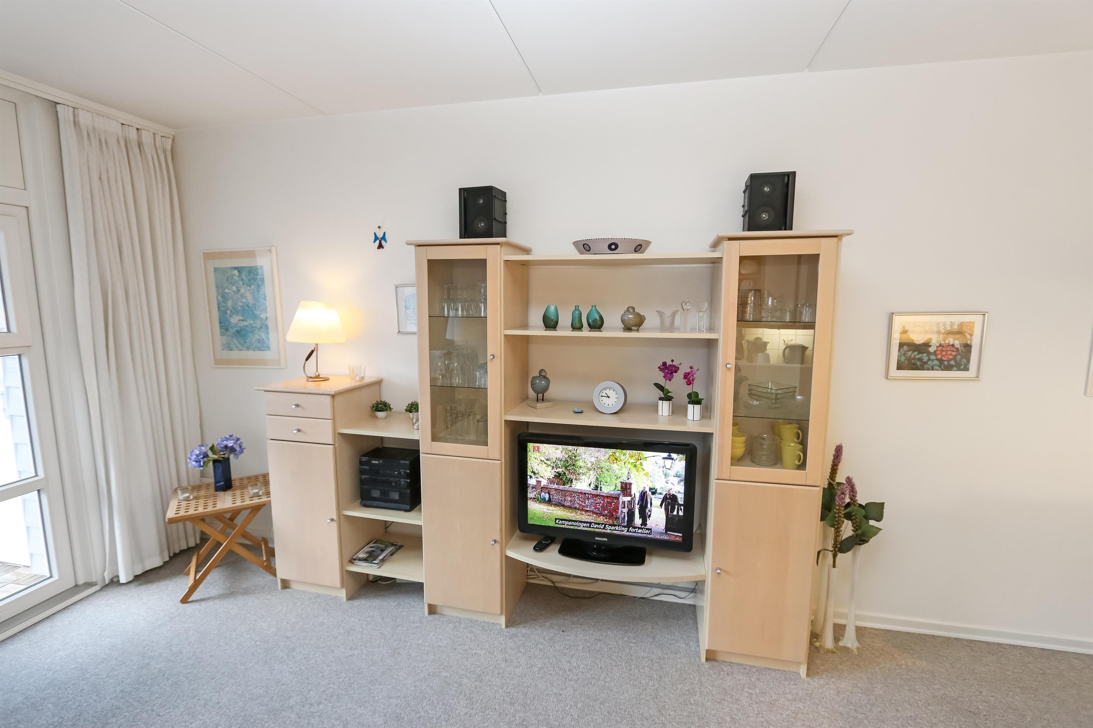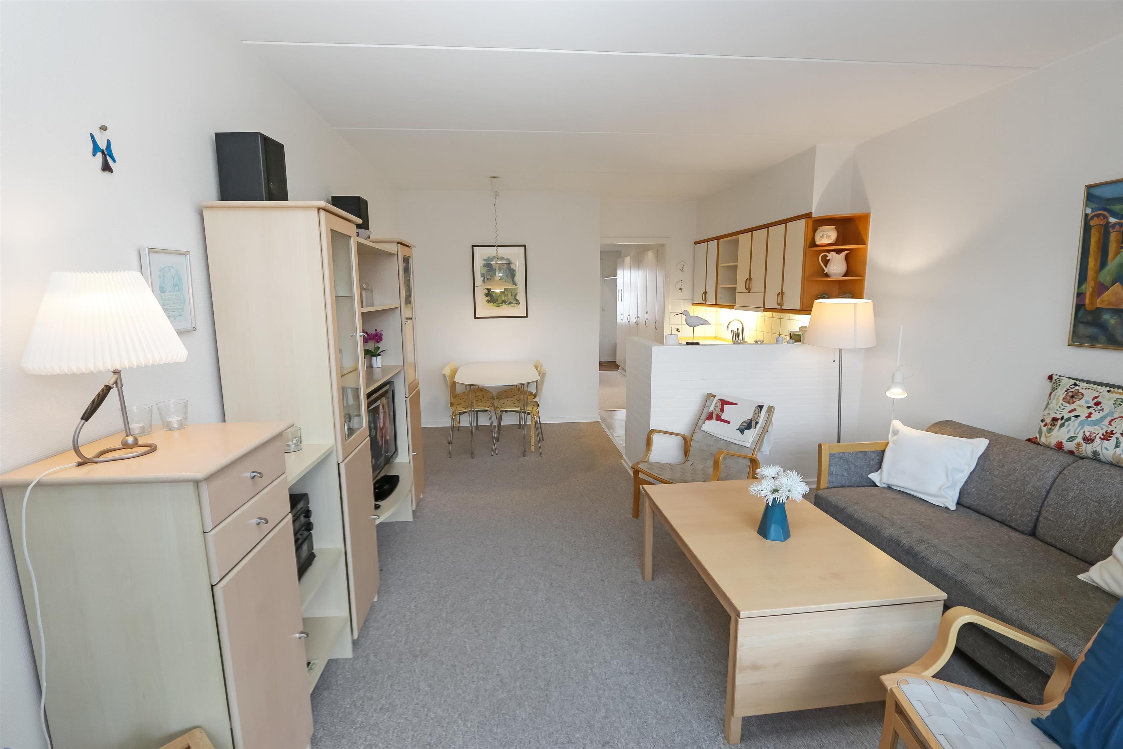 Pæn indrettet ferielejlighed til 2 personer, beliggende på 1. sal. Kombineret køkken og stue med gulvtæppe i stuen og linoleum i køkkenafdelingen. Køkkenet er indrettet med glaskeramisk kogeplade, køleskab med 10 l fryseboks, emhætte, kombi opvaskemaskine og ovn. Badeværelse med toilet, håndvask og bruser. 1 Soverum med 1 DS + 1S. Stuen er indrettet med polstermøbler og 1 sovesofa, kabel-TV, CD og Radio. Fra stuen er der udgang til lille overdækket balkon med havemøbler. Trappen til 1. sal består af 21 trappetrin.
