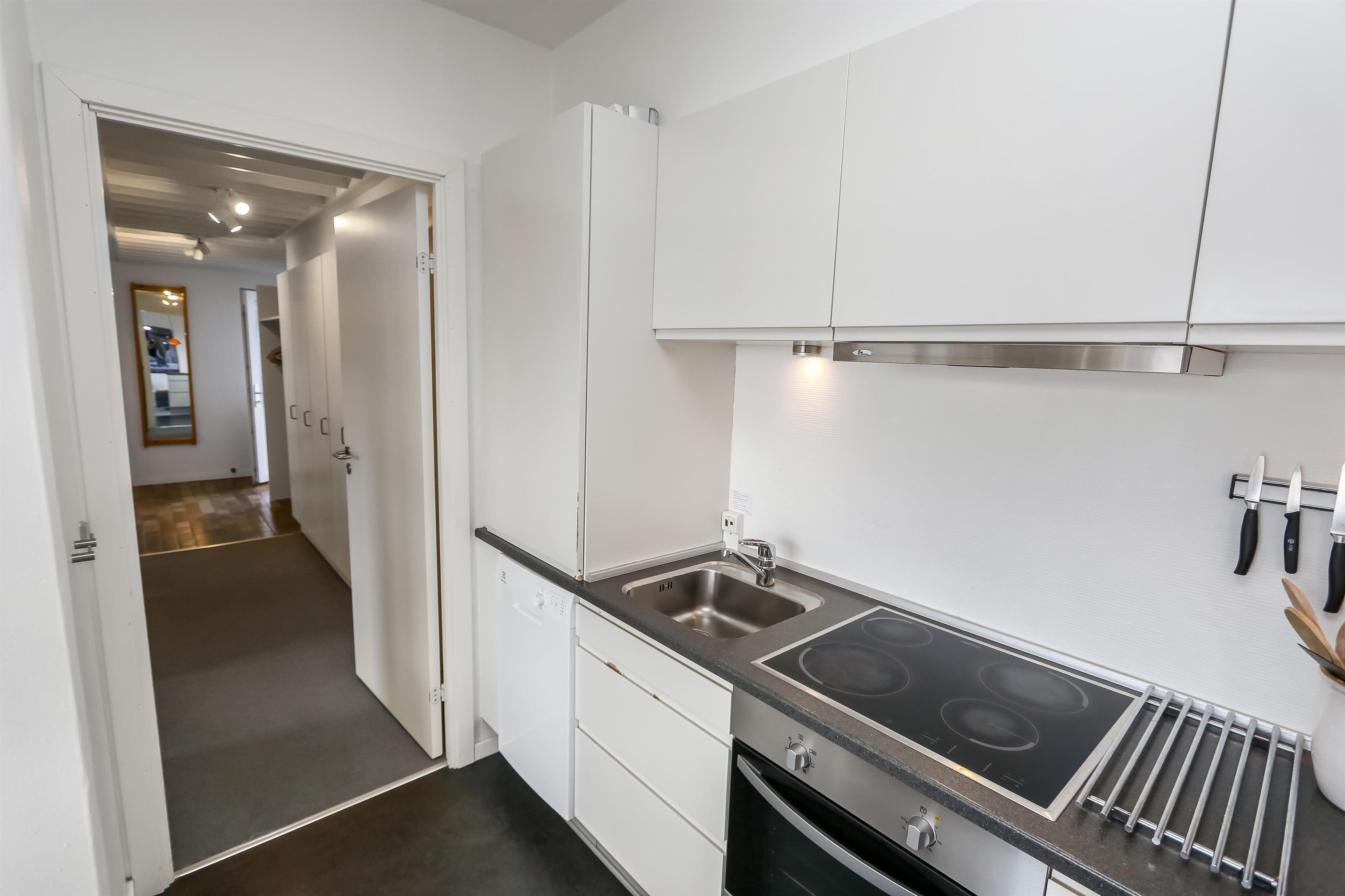 Dejlig hjørne lejlighed med god beliggenhed på 1. sal med balkon og havemøbler. Fra stuen og balkonen kan man se havet mellem klitterne. Kombineret stue og køkken. Køkkenet er indrettet med glaskeramisk komfur, emhætte, køleskab med lille frostbox, opvaskemaskine, mikroovn og linoleumsgulv. Pæn indrettet stue med kabel-TV, DVD, polstermøbler og gulvtæppe. Sofaen i stuen kan slåes ud så der blir 2 sovepladser. 2 soverum: 1S og 1 3/4 seng med en overkøje, 1DS der er gulvtæpper i begge værelser. Badeværelse med toilet, håndvask og bruser. Trappen til 1. sal består af 40 trappetrin.
