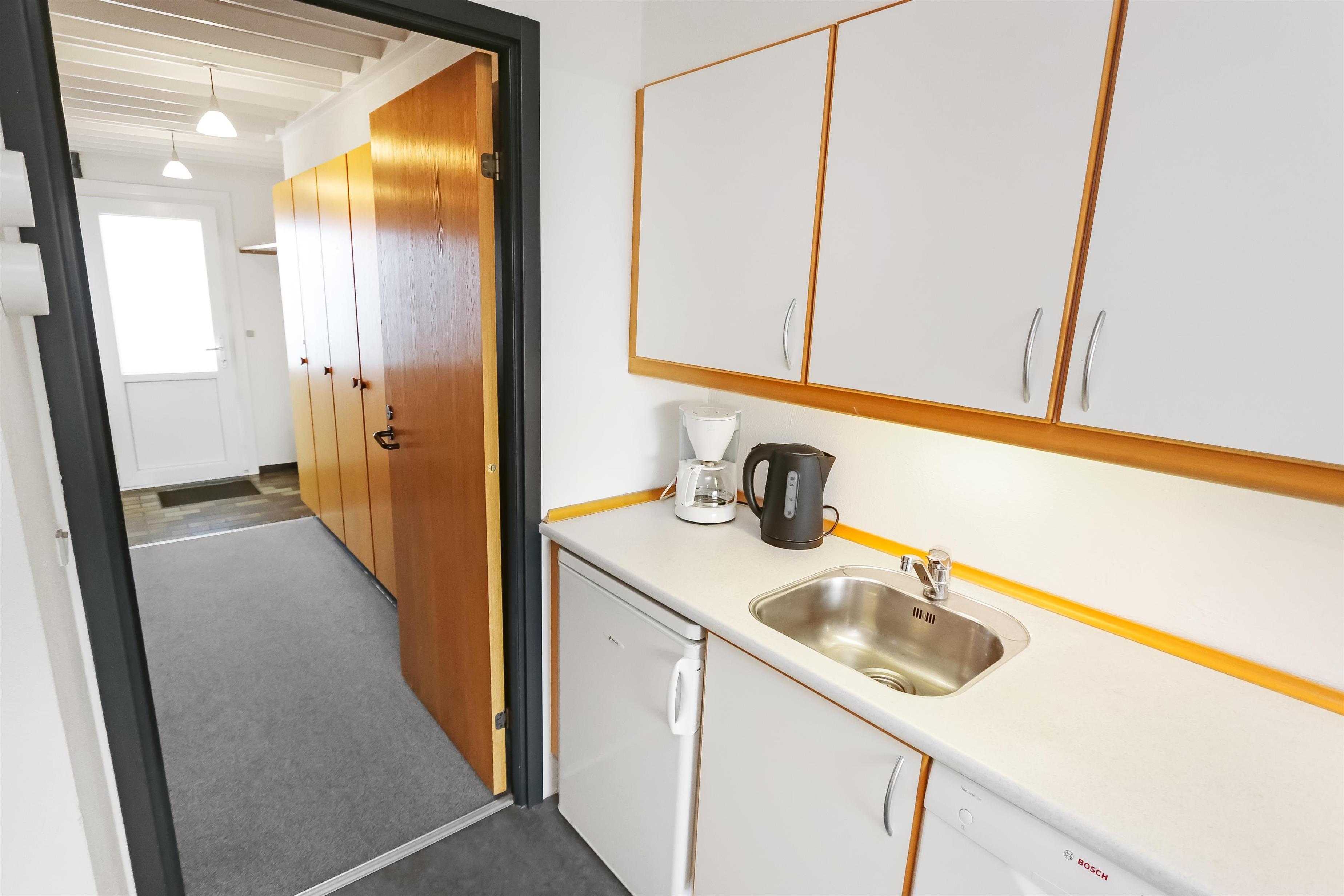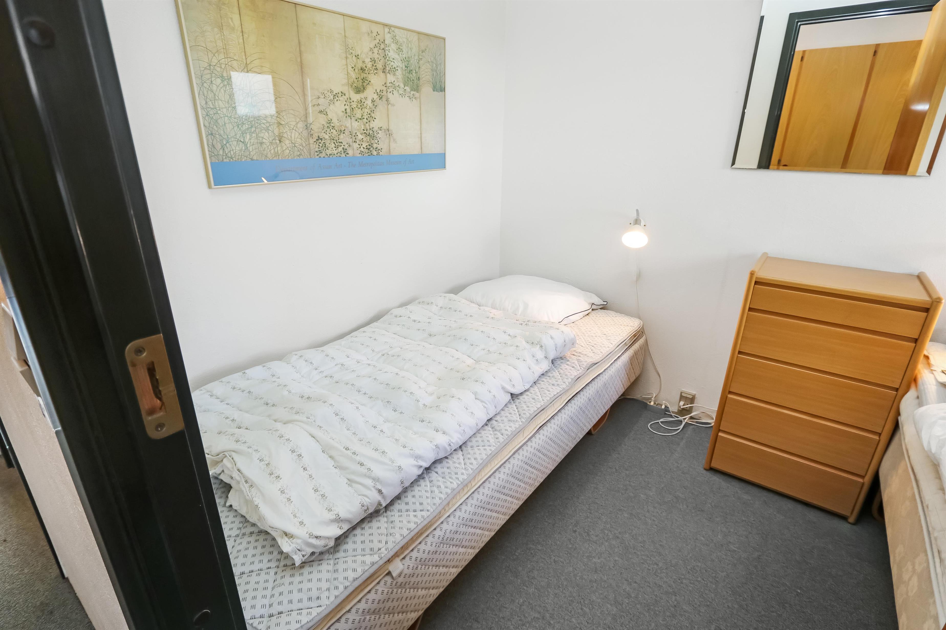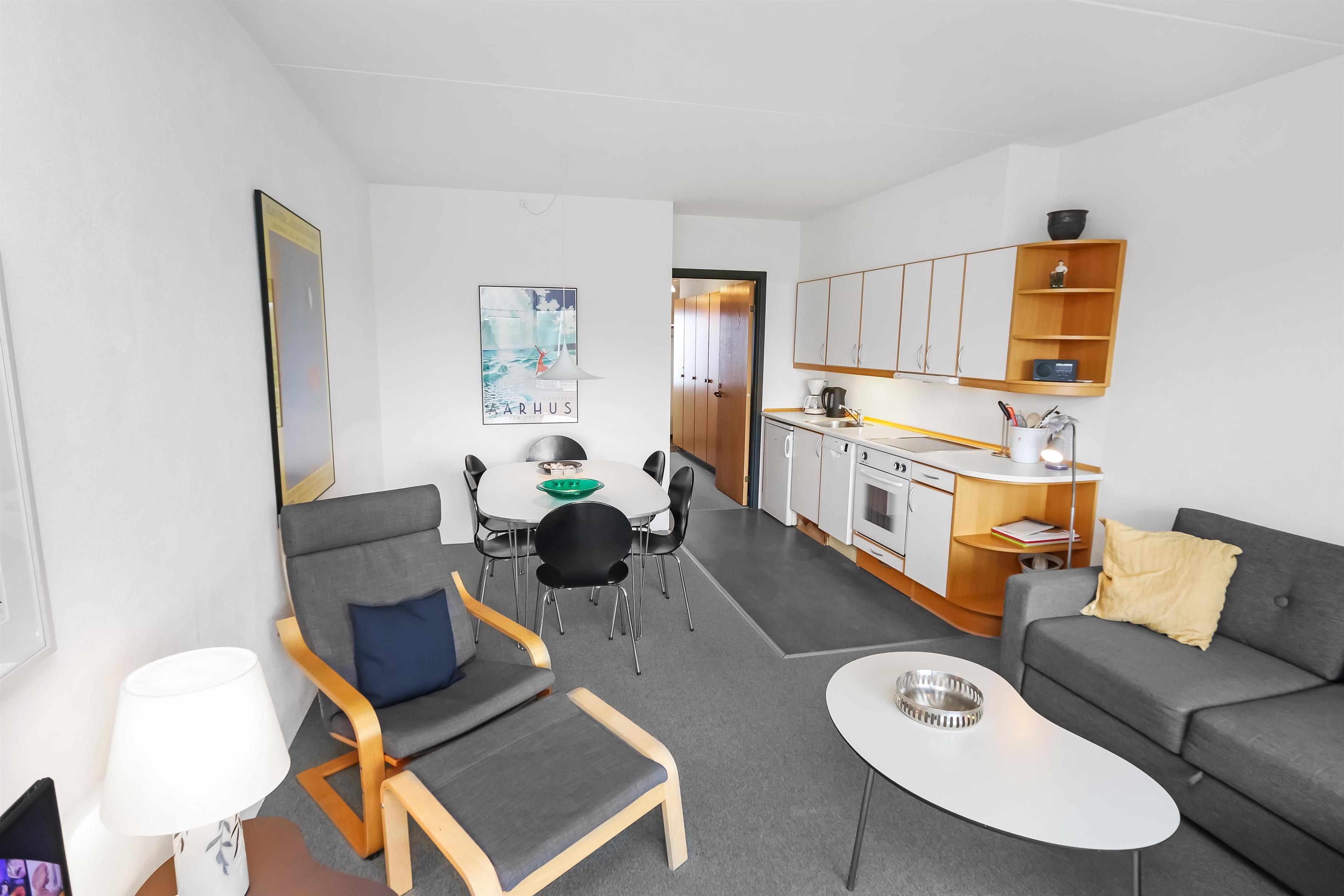 Meget pæn ferielejlighed beliggende på 1. sal med balkon med havemøbler. Badeværelse med toilet, håndvask og bruser. 1 Soverum: 1DS + 1S. Kombineret køkken og stue. Køkkenet er indrettet med glaskeramisk komfur, emhætte, køleskab med lille frostbox og linoleumsgulv. Stuen er indrettet med kabel-TV, radio, polstermøbler og gulvtæppe. Den 4. soveplads er i stuen på en sovesofa. En meget pæn lejlighed. Trappen til 1. sal består af 40 trappetrin.