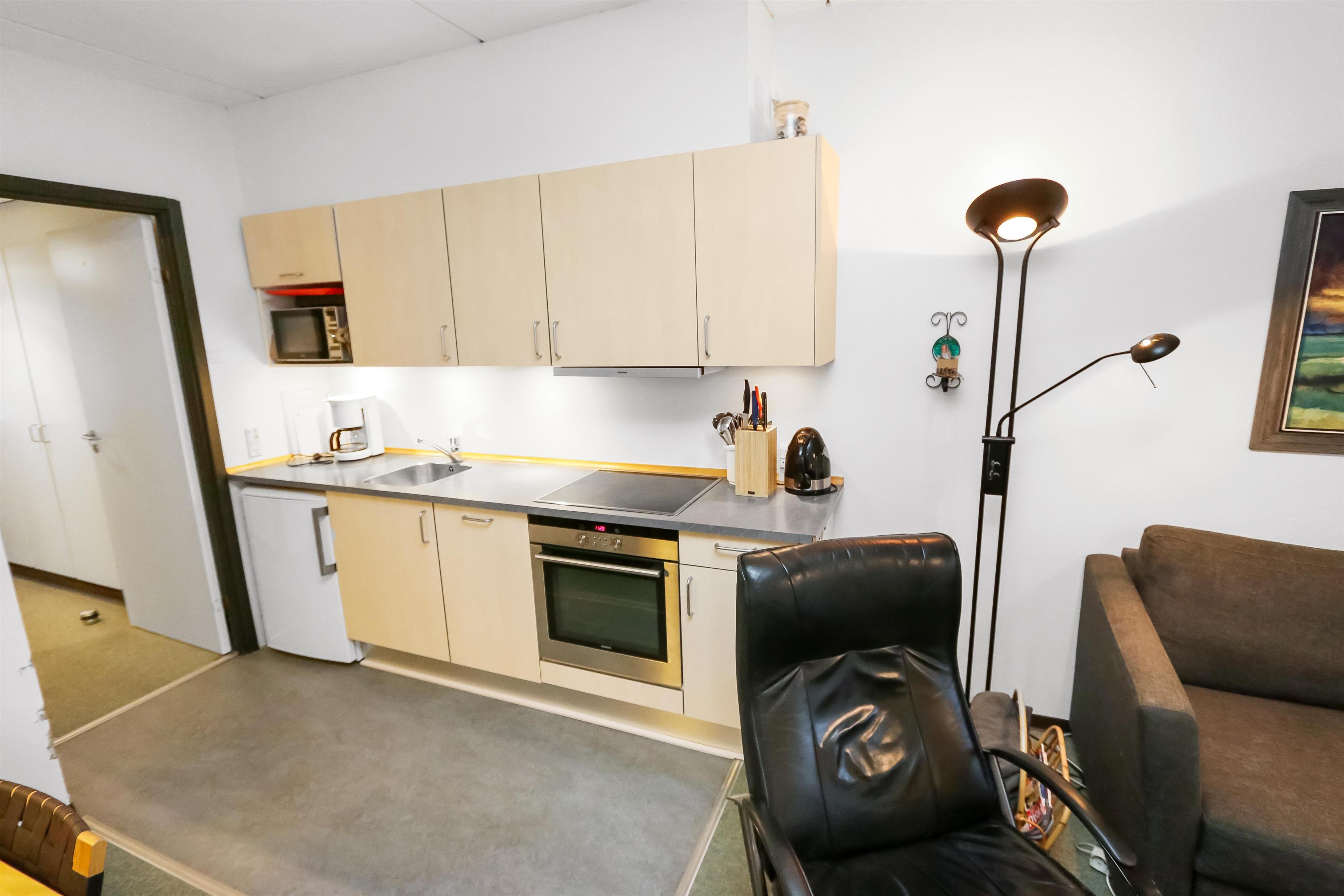 Pænt indrettet ferielejlighed med plads til 4 personer. 1 soverum: 1DB + 1K samt tæppe på gulvet. Kombineret køkken og stue med tæppe i stuen og linolium i køkkenafdelingen. Stuen er indrettet med polster og lædermøbler, og sofaen kan slåes ud så der er plads til 2 personer, kabel-TV, DVD. Køkkenet er indrettet med glaskeramisk komfur, emhætte, køleskab med lille frostbox, opvaskemaskine og mikroovn. Badeværelse med toilet, håndvask og bruser. Fra stuen er der udgang til lille indhegnet og delvis overdækket terrasse med havemøbler.