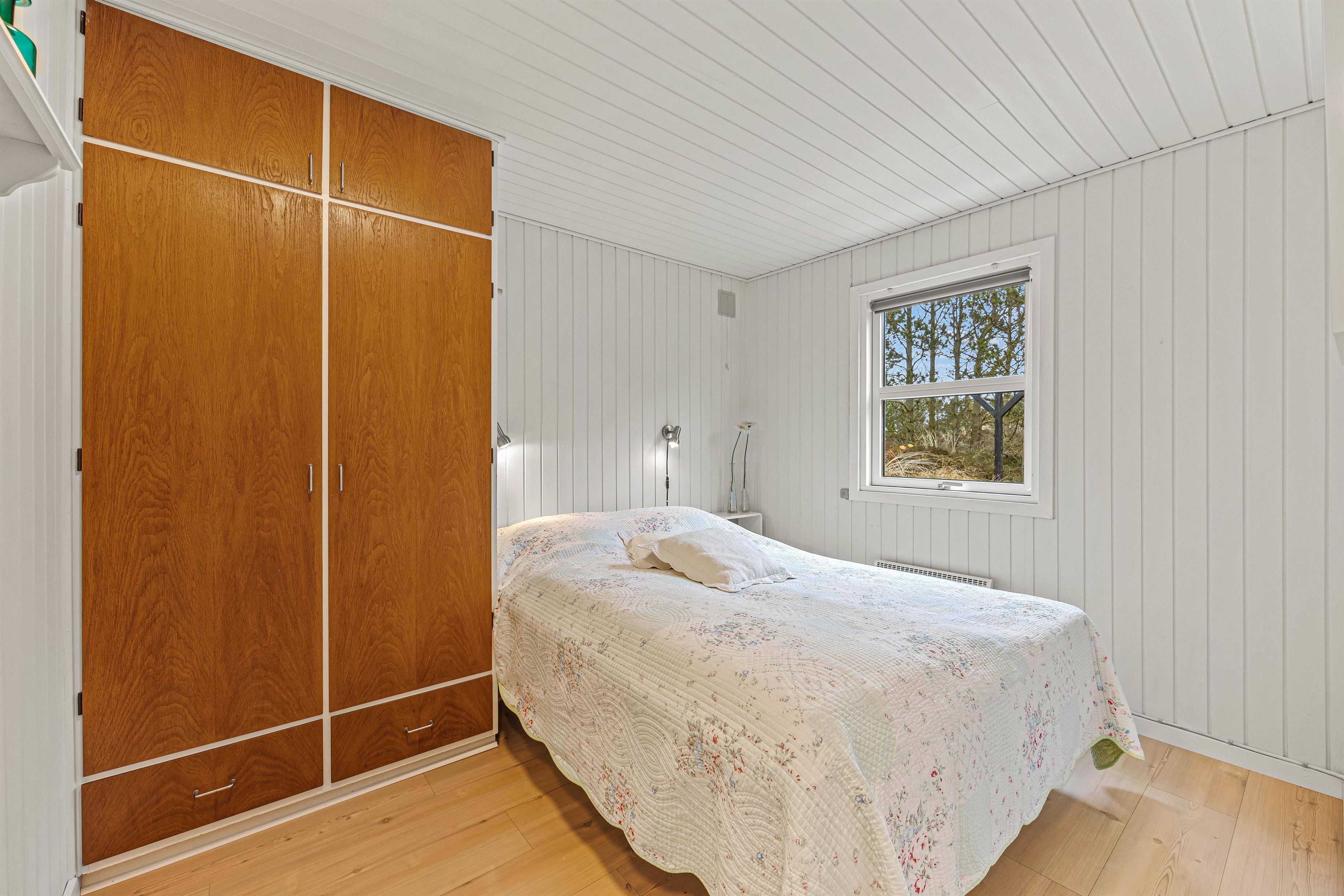 Sommerhusets sovepladser er fordelt over 3 soveværelser. De 2 af værelserne er indrettet med en dobbeltseng hver, og det sidste værelse har 2 enkeltsenge. Den kombinerede vaskemaskine/tørretumbler i sommerhuset kan være jer behjælpelig med at holde jeres vasketøj friskt.