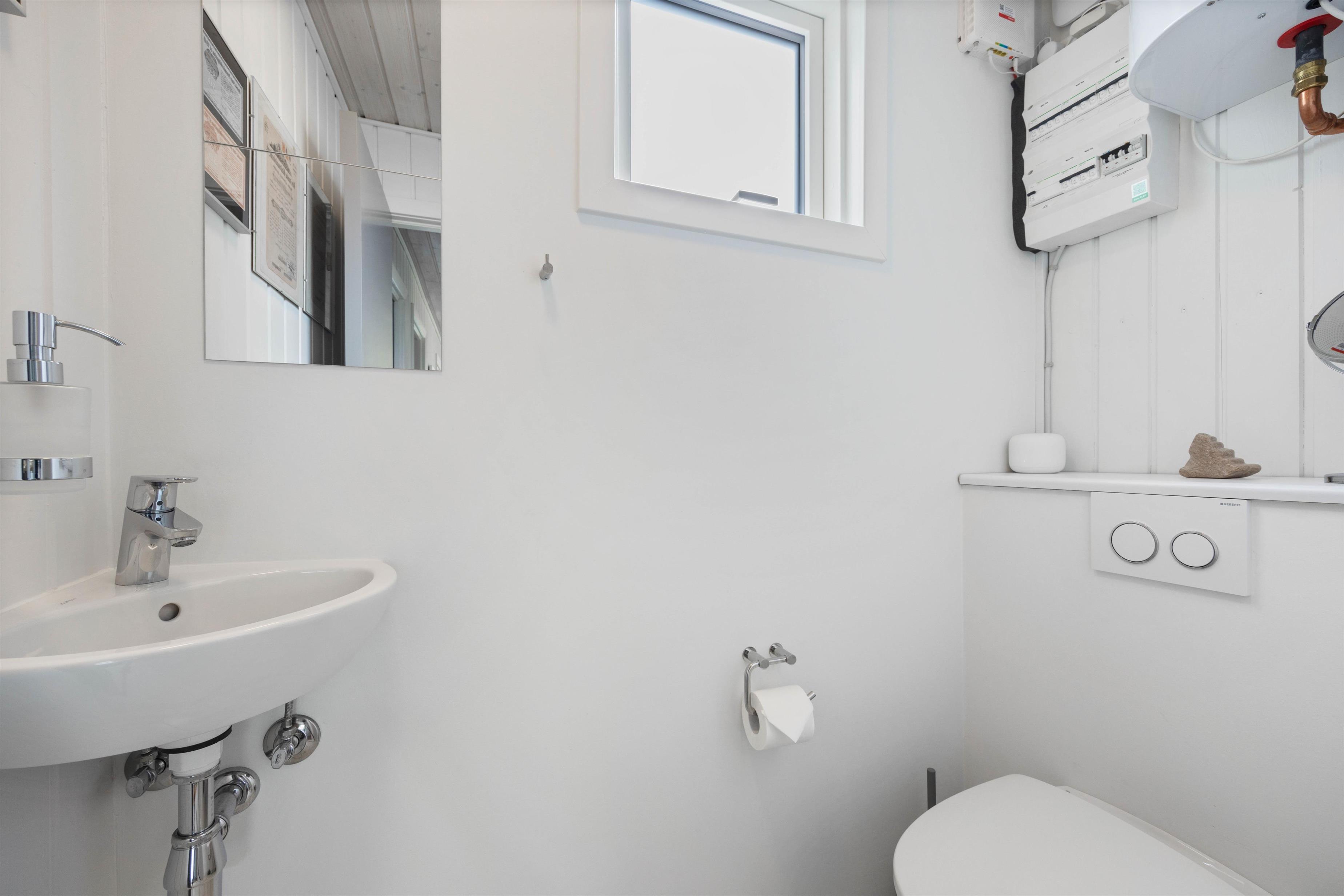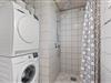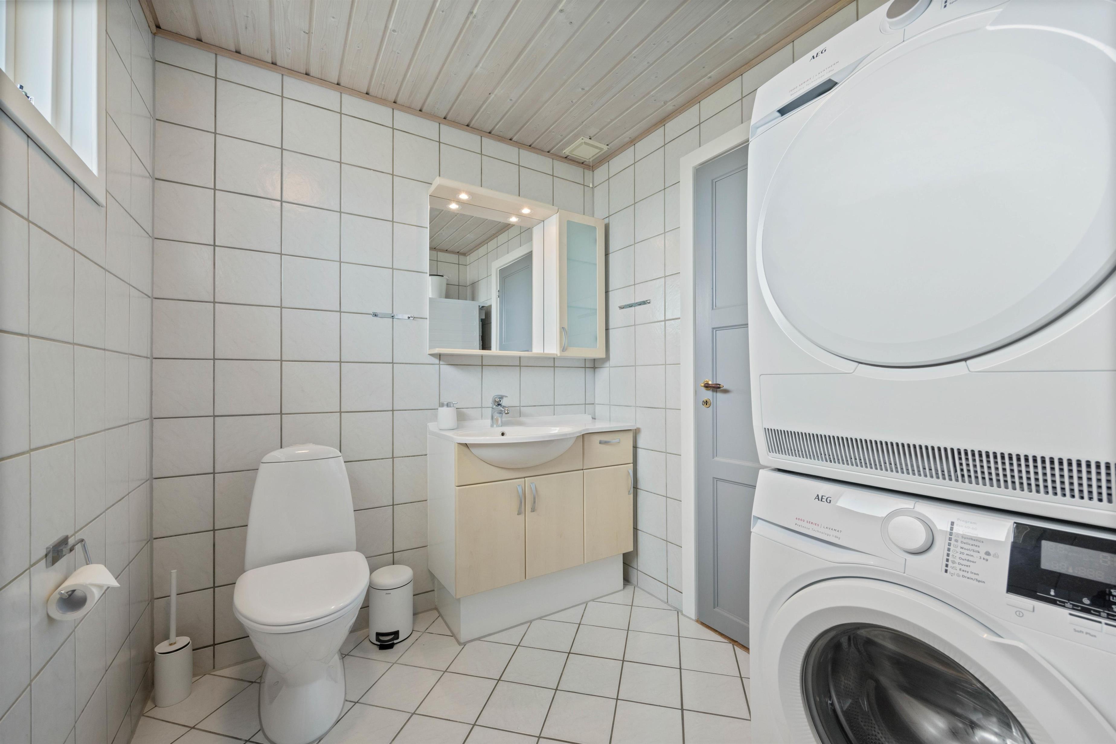 Badeværelset er, ligesom gæstetoilettet, indrettet lyst og har indlagt gulvvarme. I badeværelset står der endda vaskemaskine og tørretumbler til rådighed, som kan være jer behjælpelige med at få vasket jeres badehåndklæder med jævnligt mellemrum.