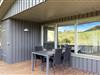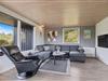 Senere på dagen vil I kunne nyde solens stråler – imens I læner jer tilbage i de komfortable solvogne, der er stillet til rådighed. Eller også kan I mødes her og hygge jer at tilberede jeres aftensmad ved hjælp af sommerhusets grill. Og når solen er ved at gå ned, kan I trække jer tilbage under den afskærmede og overdækkede del af terrassen, og nyde den sidste varme.