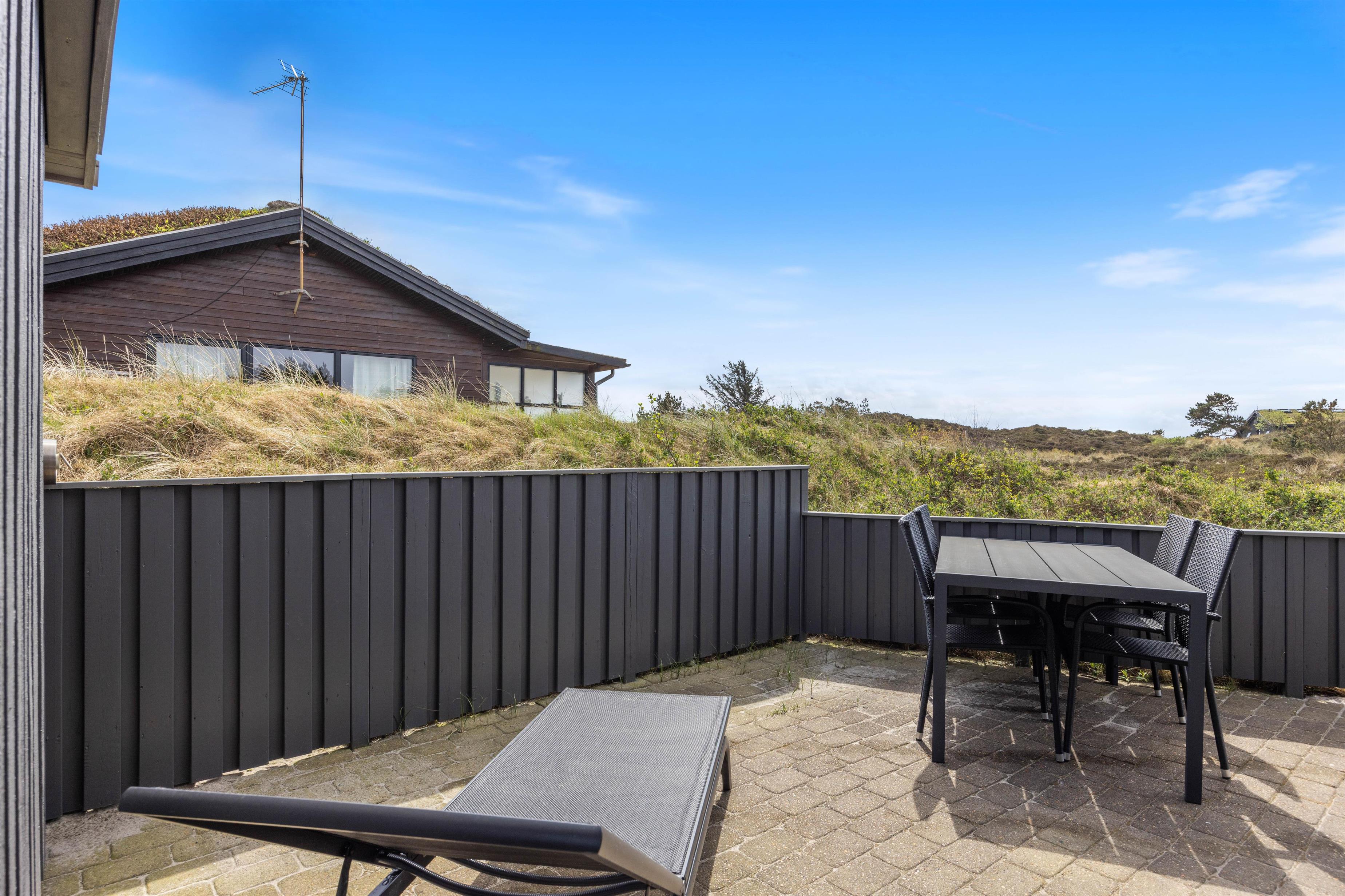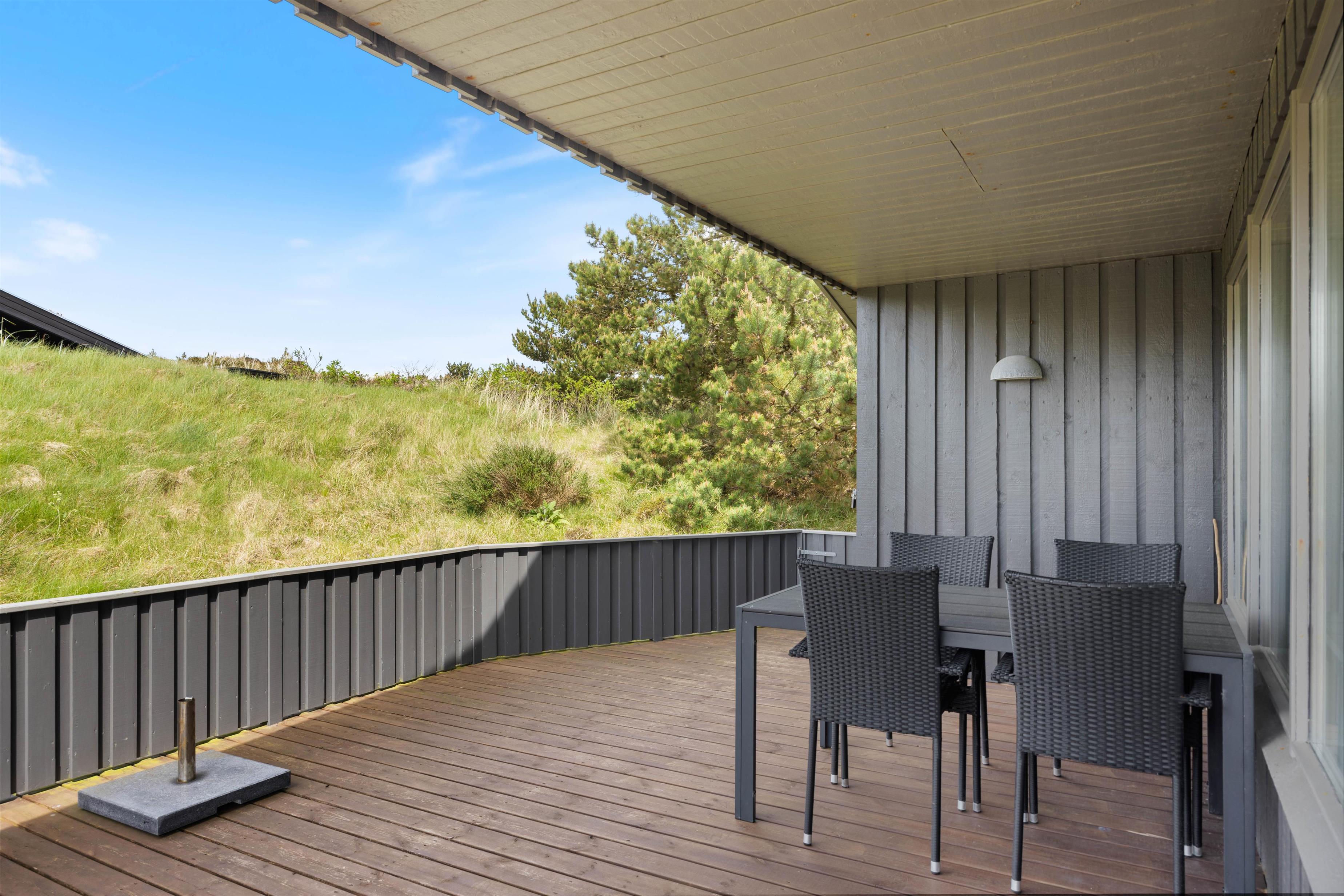 På den store træterrasse på sommerhusets ene langside kan I – igennem dagen - følge med solen: på terrassen mod øst kan I nyde jeres ny brygget morgenkaffe, imens I hører Vestkystens bølgerne bruse i baggrunden.