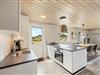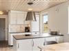 Sommerhusets køkken, som ligger i forlængelse af spisestuen, er velindrettet og udstyret med en opvaskemaskine, der kan være jer behjælpelige med opvasken.