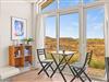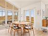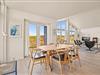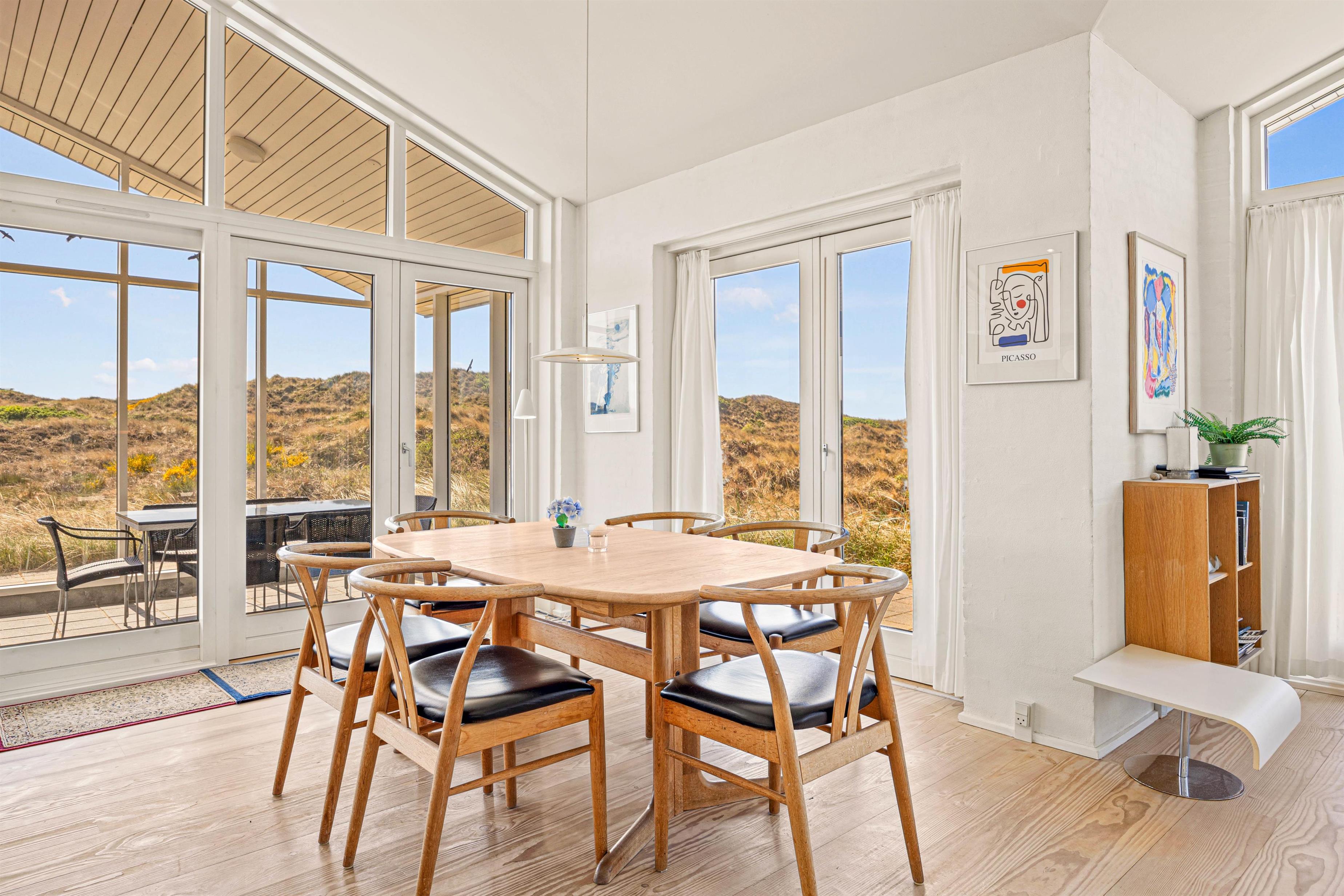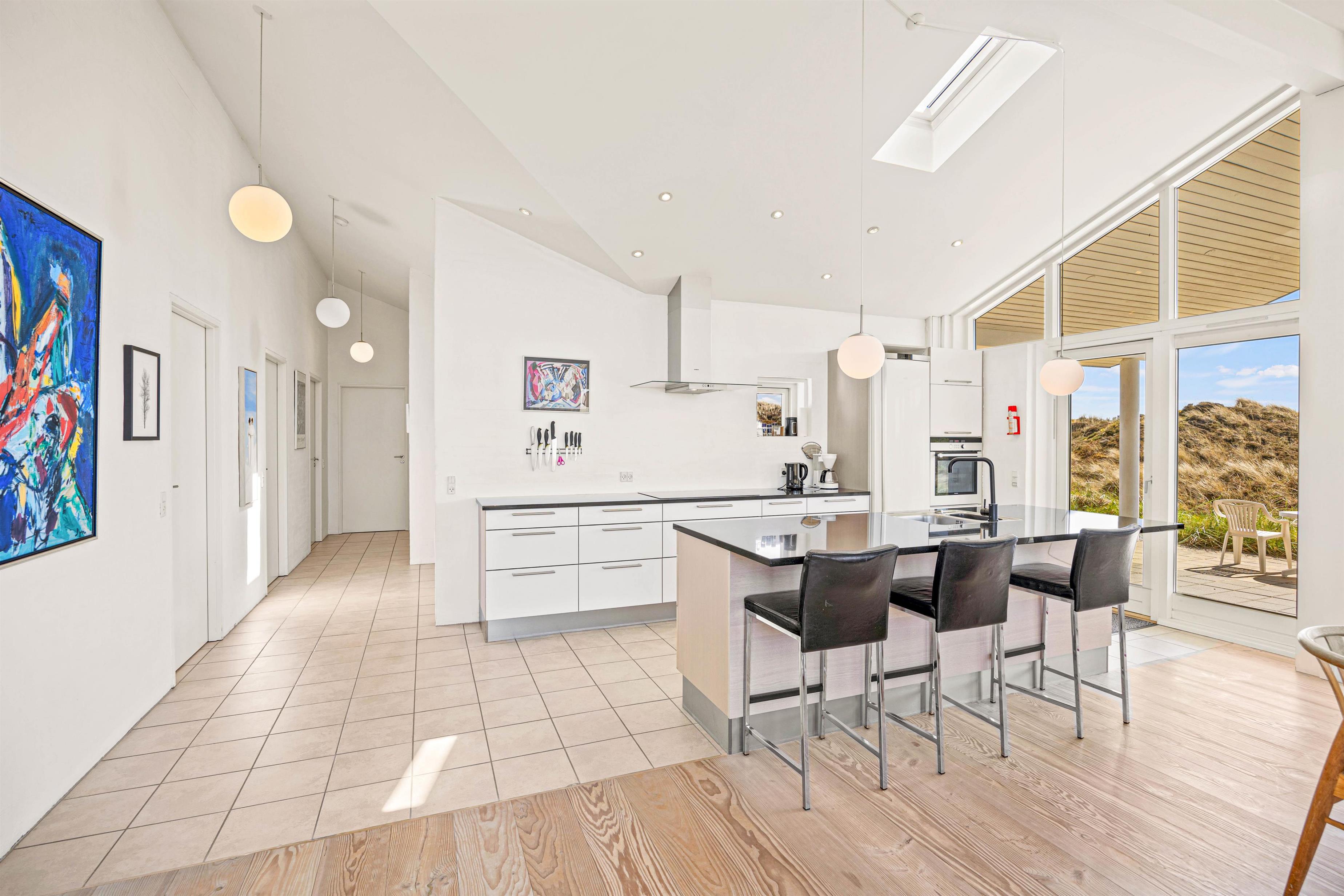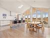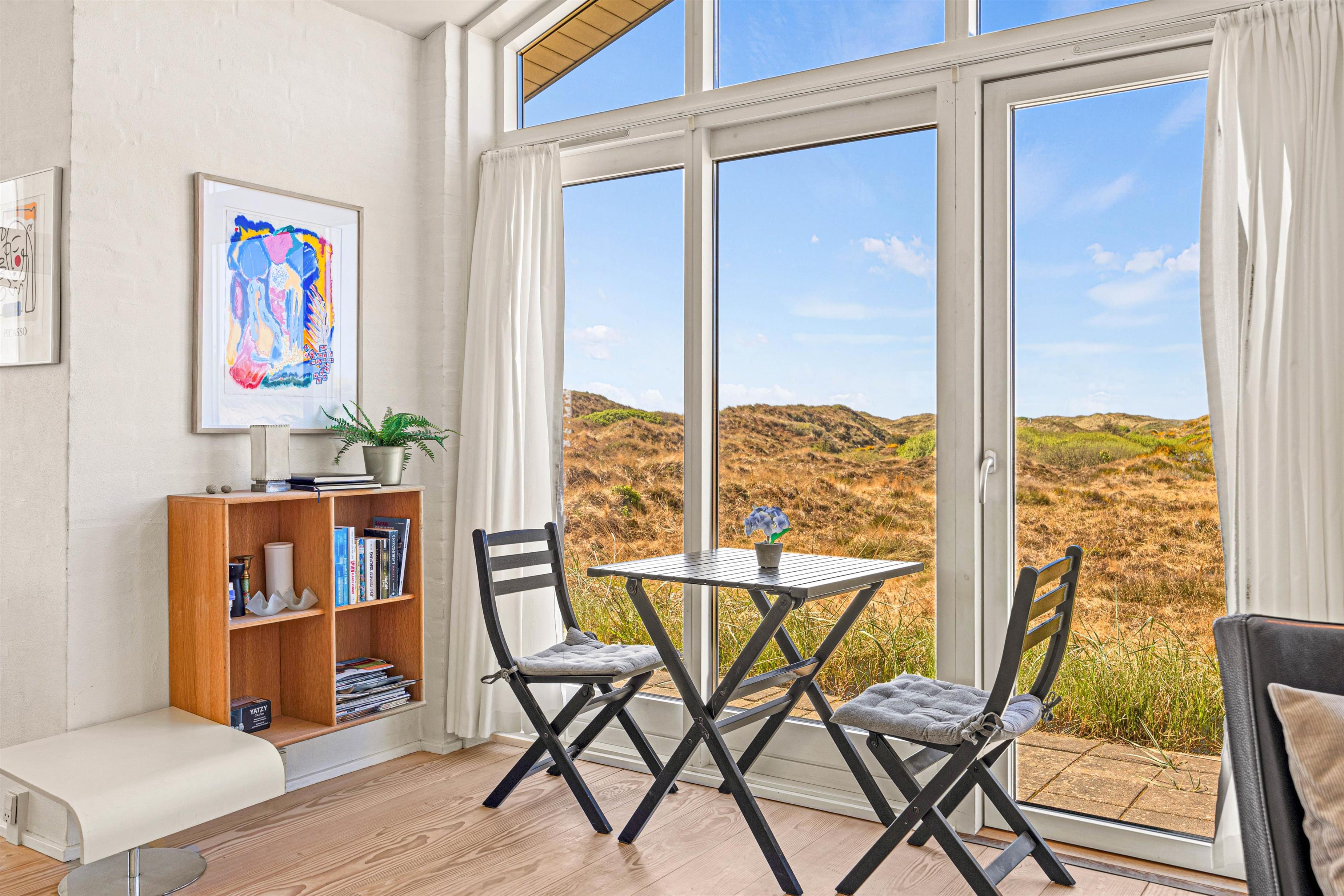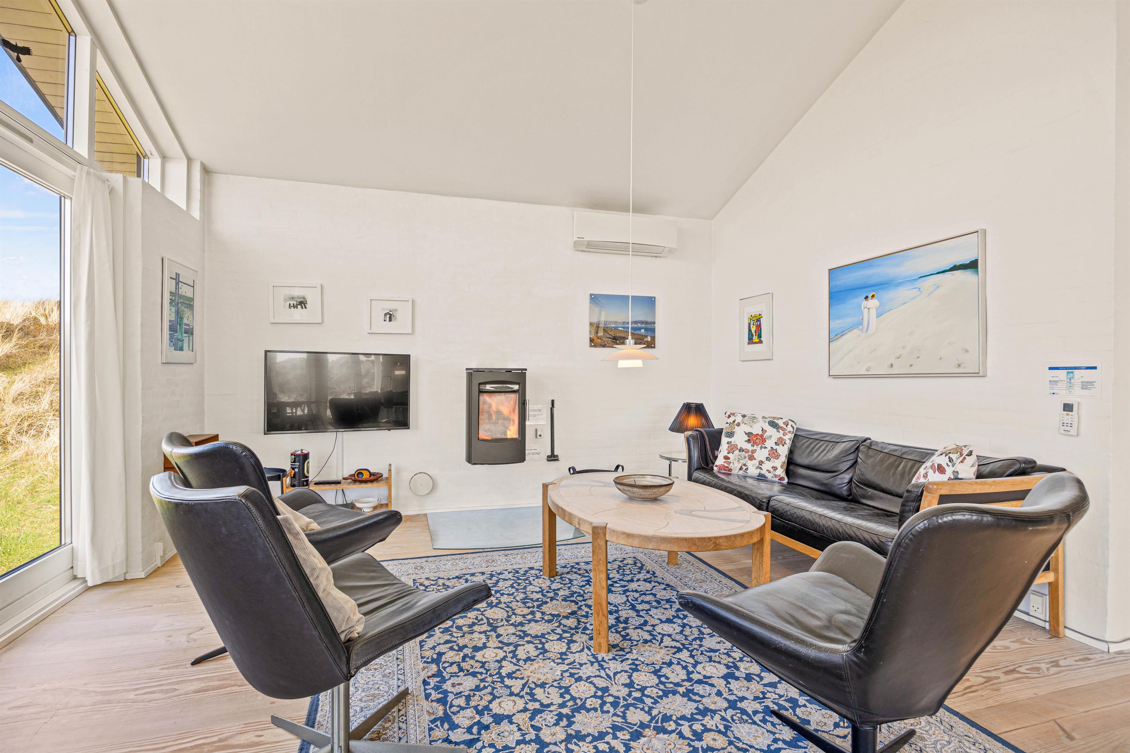 I det åbne opholdsrum kan I samles om måltiderne, nyde varmen fra brændeovnen eller slappe af med en film – her er både Chromecast og danske tv-kanaler til rådighed. De store vinduespartier sørger for et smukt lysindfald og en fantastisk udsigt til det omkringliggende klitlandskab. Det giver jer en fornemmelse af at være midt i naturen, selv når I bliver indenfor.