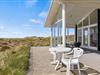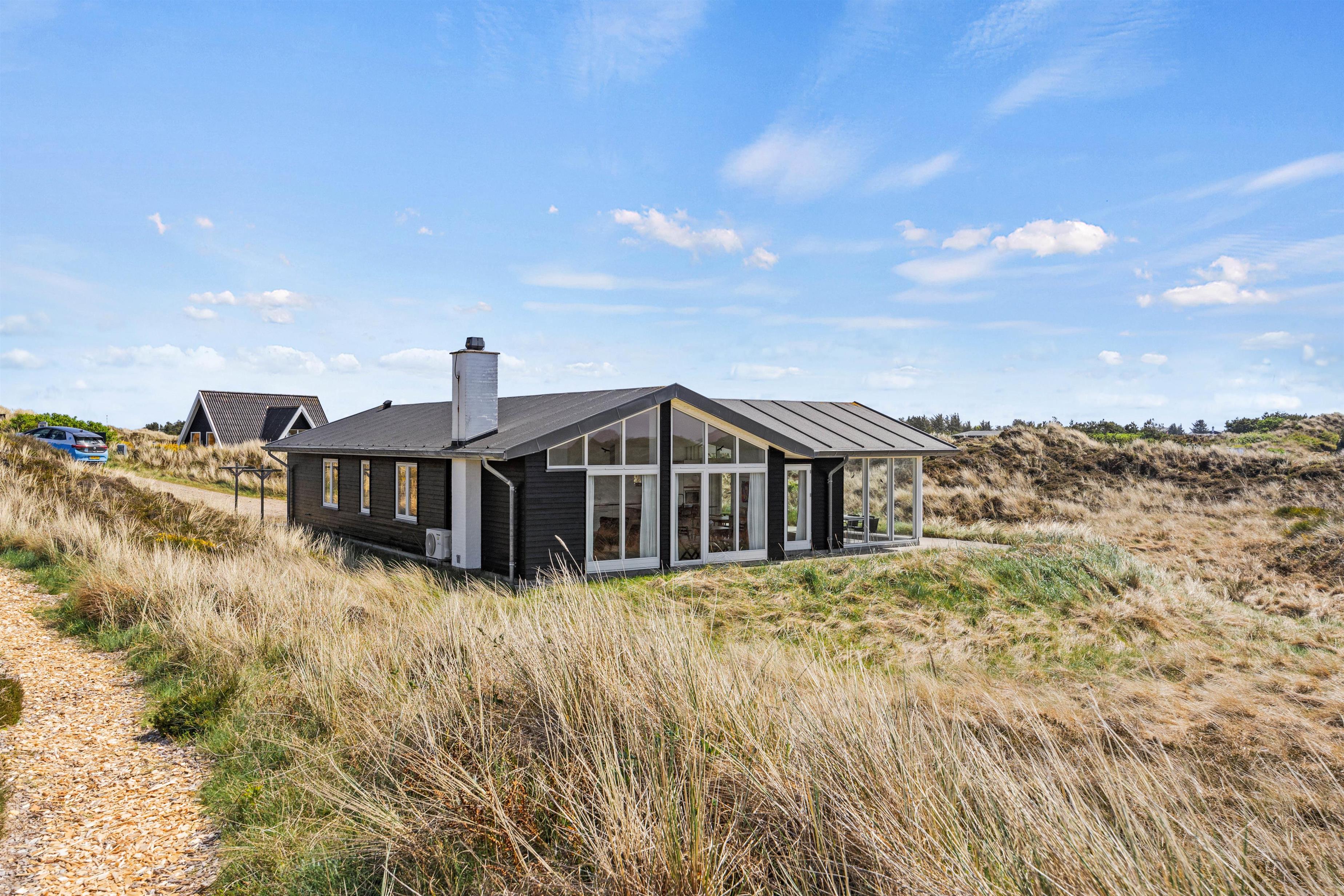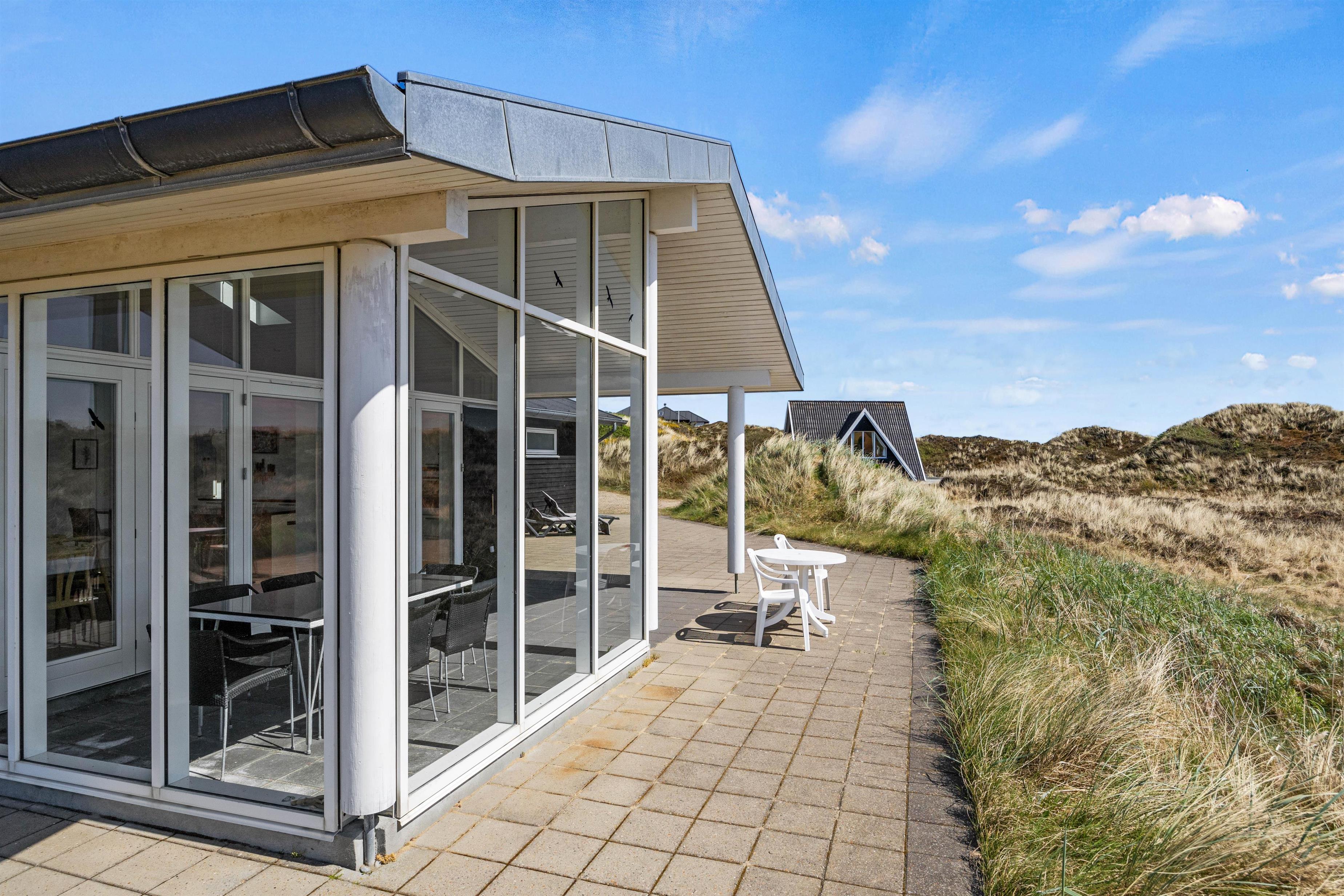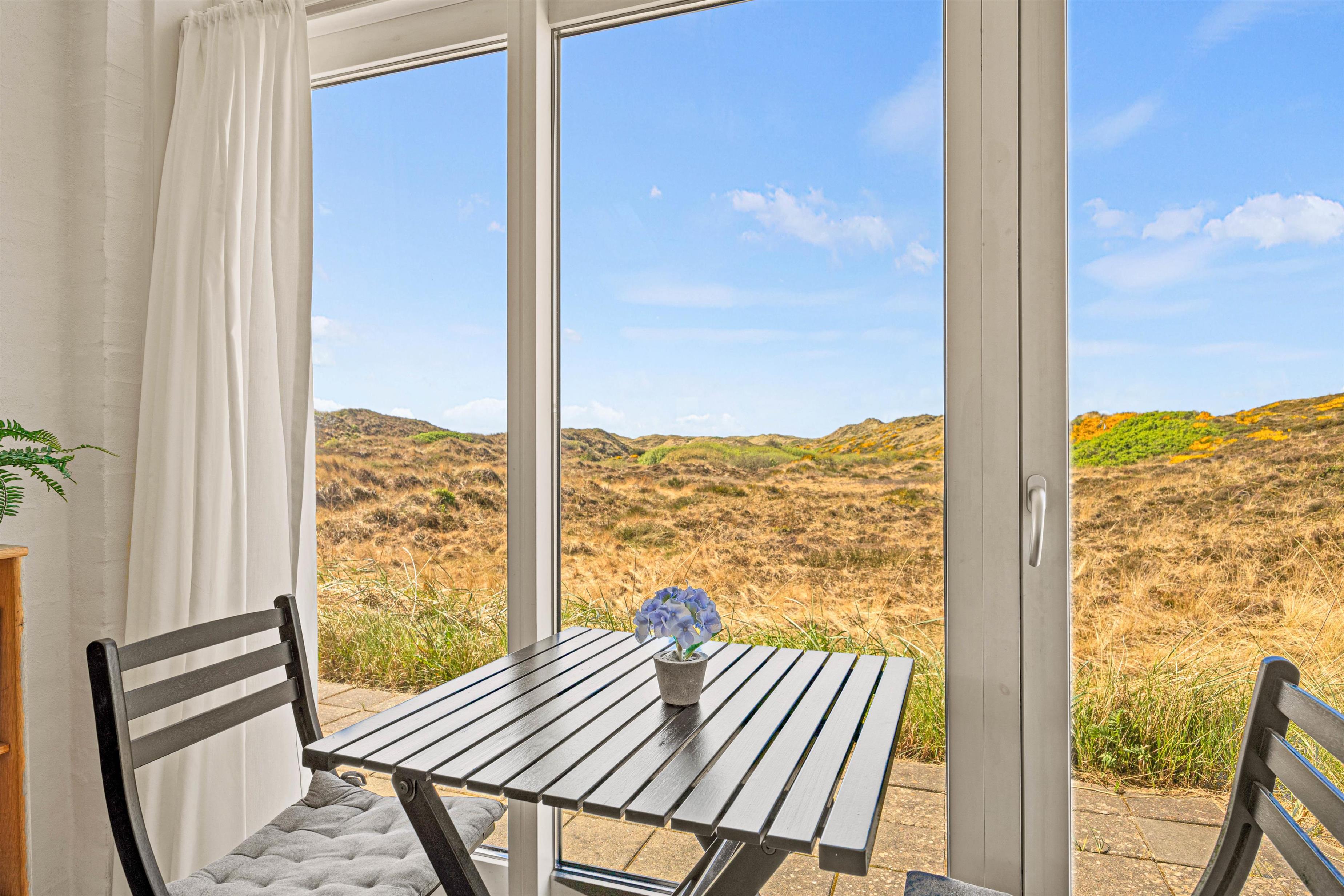 På terrassen bliver udsigten en naturlig del af ferien. Herfra har I fri udsigt til det storslåede klitlandskab, og I kan følge dagens skiften fra solopgang til solnedgang. Et område af terrassen er både overdækket og afskærmet, så I kan sidde i læ og skygge, uanset vind og vejr. Derudover er der havemøbler og grill til hyggelige stunder under åben himmel.