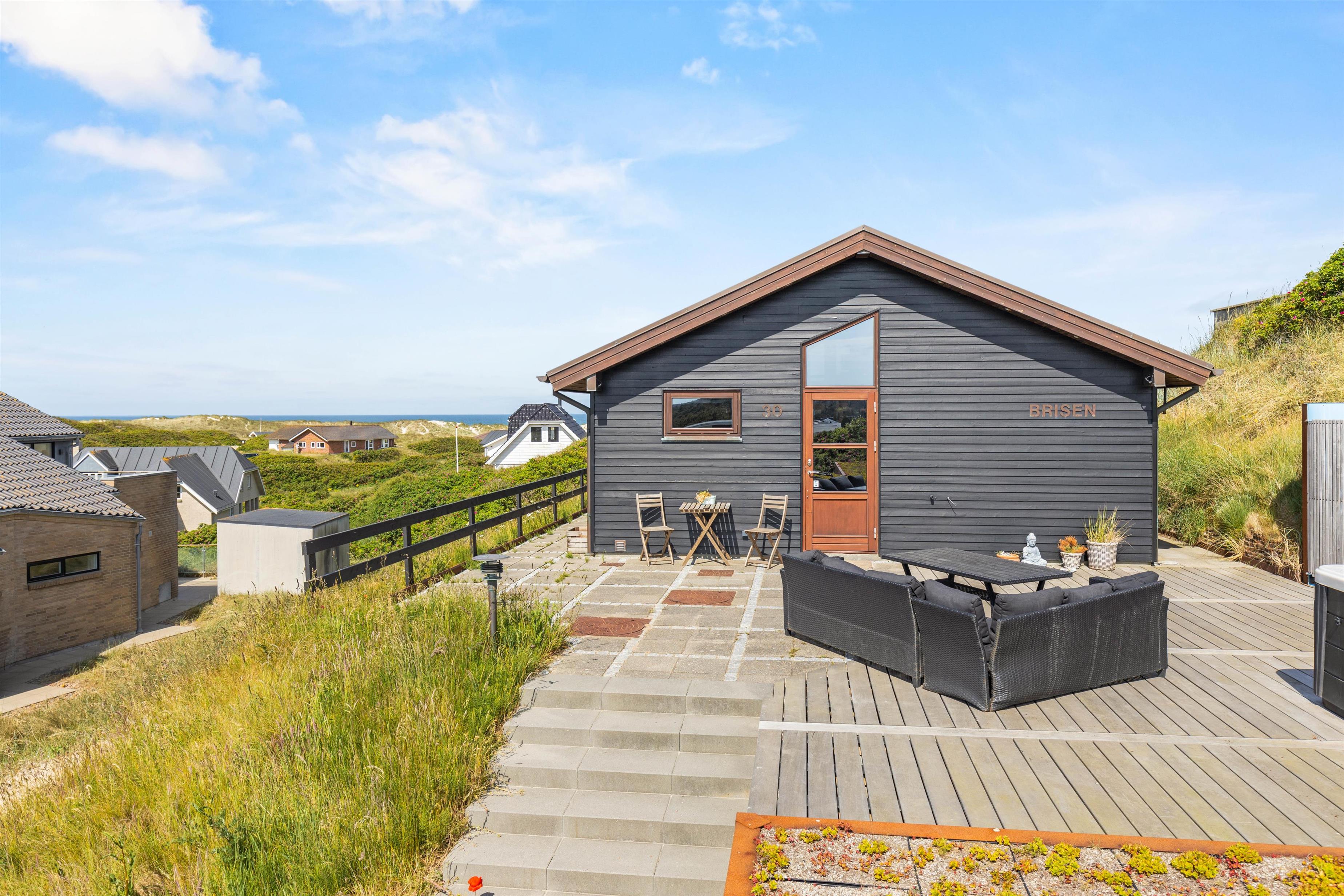 Drømmer I om at kunne se ud over Vesterhavets bølger – blot ved at sidde på terrassen eller måske endda fra sofaen? Så er dette 4-stjernede feriehus på Musvågevej 30 i Henne Strand det oplagte valg til jeres næste ferie. Feriehuset, som har plads til 6 personer, fremstår lyst og moderne efter en total renovation i 2021.